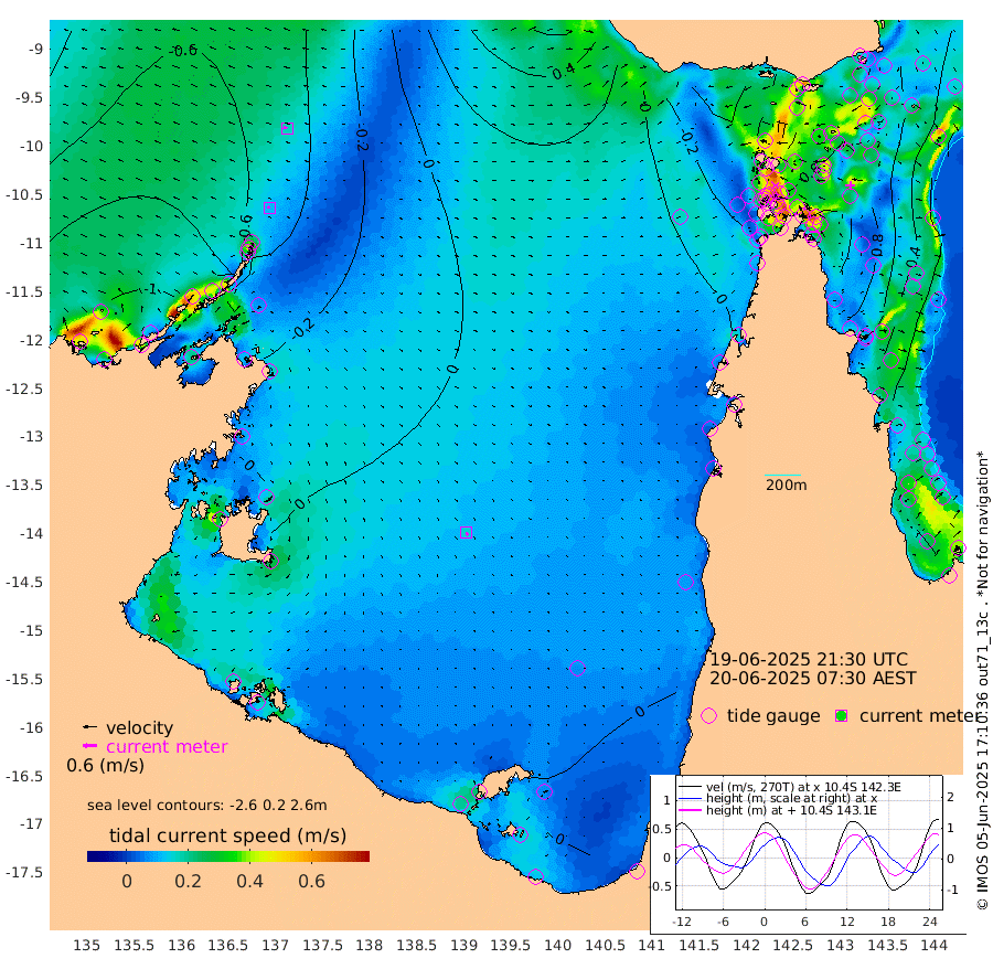 12cm/s -63T +3cm/s rms + 7cm/s -42T. ARA-GOC87 57m 15cm/s 160T +3cm/s rms + 2cm/s -2T. ARA-GOC87 60m 17cm/s -79T +2cm/s rms + 3cm/s 61T. ARA-GOC87 47m 81cm Daru 72cm Bobo Island 27cm Meer Island Barge 51cm Bramble Cay 73cm Unnamed Cay 59cm Pearce Cay 62cm Stephens Island 79cm Merrie England Shoals 91cm Mutacomal Reef 55cm Darnley Island Barge 35cm East Cay 65cm Yorke Island Barge 70cm Rennel Island 61cm Aureed Island 67cm Dungeness Reef 60cm Zagai Island 75cm Yam Island 28cm Dauan Island 38cm Saibai Island 34cm Phipi Reef 65cm Warrior Reef - West 27cm Mabuiag Island Barge 76cm Half Way Island 71cm Coconut Island 80cm Dugong Islet 69cm Poll Island 84cm Kirkcaldie Reef 48cm Suarji Island 72cm Sue Islet 1cm Hawkesbury Island 52cm Alert Patches 61cm Twin Island -5cm Badu Island 58cm St Pauls (Moa Island) 15cm Kubin (Moa Island) 42cm Ince Point 31cm Thursday Island 33cm Nardana Patches 11cm Turtle Head -1cm Round Island -14cm Goods Island -25cm Booby Island -21cm White Rocks Area -11cm Carpentaria 53cm Papou Point -41cm Bampfield Head -14cm Crab Island -10cm Red Wallis Island 14cm Packe Island 84cm Harrington Reef -2cm Herald Camp 27cm Sharp Point 23cm Red Island Point 25cm Possession Island 68cm Alpha Rock 71cm Frederick Point 80cm Wyborn Reef Light 80cm Tetley Island 28cm Triangle Reef 71cm Turtle Head Island 31cm Maclennan Cay 10cm Raine Island 62cm Mcsweeny Reef 56cm Collette Reef 30cm Shadwell Reef 62cm Hannibal Island 50cm Round Point -5cm Vrilya Point 49cm Cape Grenville 37cm Hicks Island 38cm Sir Charles Hardy Island 15cm Harvey Island 39cm Kay Reef 20cm Rocky Island 10cm Chapman Island 14cm Ham Reef 19cm Jubilee Reef 21cm Night Island 17cm Unnamed Reef No. 3 21cm Morris Island 8cm 1st 3 Mile Opening 18cm Creech Reef 21cm Fife Island 15cm Eden Reef 25cm Stanley Island 30cm Normanby River -109cm Yabooma Island -124cm Hutchison River -111cm Elcho Island -99cm North West Crocodile Island -61cm Cape Wessel -86cm Stevens Island -41cm Guluwuru Island -88cm Hopeful Bay -80cm Auster Point -68cm Two Island Bay -84cm Cadell Strait 49cm Mallison Island -50cm Melville Bay (Gove Harbour) -54cm Truant Island -35cm Cape Arnhem -26cm Cape Grey -22cm Hawk Island -15cm Milner Bay (Groote Eylandt) -3cm Cape Beatrice 19cm West Island 13cm Centre Island 19cm Mornington Island 16cm West Wellesley Islands 4cm Bountiful Island -12cm Albert River Mouth -31cm Sweers Island -2cm Karumba 32cm Nassau River Offshore 31cm Christmas Creek 5cm Archer River 0cm Boyd Point -10cm Weipa (Humbug Point) 0cm Pennefather River -5cm Cullen Point