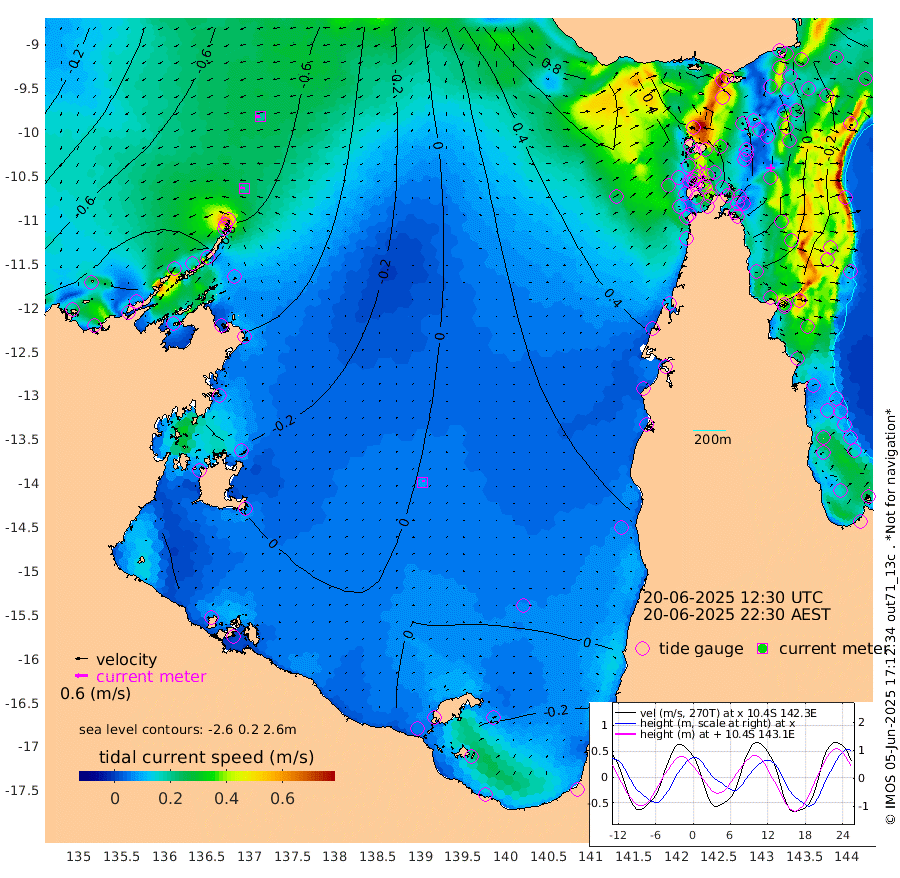 21cm/s -84T +3cm/s rms + 7cm/s -42T. ARA-GOC87 57m 9cm/s 28T +3cm/s rms + 2cm/s -2T. ARA-GOC87 60m 20cm/s -99T +2cm/s rms + 3cm/s 61T. ARA-GOC87 47m 20cm Daru 13cm Bobo Island -24cm Meer Island Barge -16cm Bramble Cay 10cm Unnamed Cay 3cm Pearce Cay -6cm Stephens Island 5cm Merrie England Shoals 28cm Mutacomal Reef -9cm Darnley Island Barge -24cm East Cay 9cm Yorke Island Barge 17cm Rennel Island 17cm Aureed Island 34cm Dungeness Reef 60cm Zagai Island 61cm Yam Island 64cm Dauan Island 71cm Saibai Island 68cm Phipi Reef 54cm Warrior Reef - West 86cm Mabuiag Island Barge 12cm Half Way Island 42cm Coconut Island 26cm Dugong Islet 53cm Poll Island 47cm Kirkcaldie Reef 94cm Suarji Island 55cm Sue Islet 82cm Hawkesbury Island 89cm Alert Patches 80cm Twin Island 83cm Badu Island 86cm St Pauls (Moa Island) 76cm Kubin (Moa Island) 84cm Ince Point 87cm Thursday Island 87cm Nardana Patches 82cm Turtle Head 94cm Round Island 79cm Goods Island 87cm Booby Island 90cm White Rocks Area 94cm Carpentaria 74cm Papou Point 121cm Bampfield Head 65cm Crab Island 82cm Red Wallis Island 75cm Packe Island 39cm Harrington Reef 92cm Herald Camp 28cm Sharp Point 70cm Red Island Point 91cm Possession Island 74cm Alpha Rock 61cm Frederick Point 38cm Wyborn Reef Light 45cm Tetley Island -5cm Triangle Reef 29cm Turtle Head Island -14cm Maclennan Cay -26cm Raine Island 6cm Mcsweeny Reef 2cm Collette Reef -14cm Shadwell Reef -3cm Hannibal Island -14cm Round Point 59cm Vrilya Point -9cm Cape Grenville -18cm Hicks Island -14cm Sir Charles Hardy Island -5cm Harvey Island -18cm Kay Reef -24cm Rocky Island -23cm Chapman Island -24cm Ham Reef -26cm Jubilee Reef -23cm Night Island -24cm Unnamed Reef No. 3 -27cm Morris Island -21cm 1st 3 Mile Opening -25cm Creech Reef -39cm Fife Island -40cm Eden Reef -28cm Stanley Island -36cm Normanby River -91cm Yabooma Island -104cm Hutchison River -91cm Elcho Island -89cm North West Crocodile Island -65cm Cape Wessel -90cm Stevens Island -80cm Guluwuru Island -80cm Hopeful Bay -67cm Auster Point -86cm Two Island Bay -135cm Cadell Strait -146cm Mallison Island -70cm Melville Bay (Gove Harbour) -70cm Truant Island -46cm Cape Arnhem -26cm Cape Grey -17cm Hawk Island -1cm Milner Bay (Groote Eylandt) -4cm Cape Beatrice 19cm West Island 29cm Centre Island -14cm Mornington Island -10cm West Wellesley Islands -20cm Bountiful Island -47cm Albert River Mouth -41cm Sweers Island -43cm Karumba -25cm Nassau River Offshore -10cm Christmas Creek 12cm Archer River 29cm Boyd Point 26cm Weipa (Humbug Point) 30cm Pennefather River 55cm Cullen Point