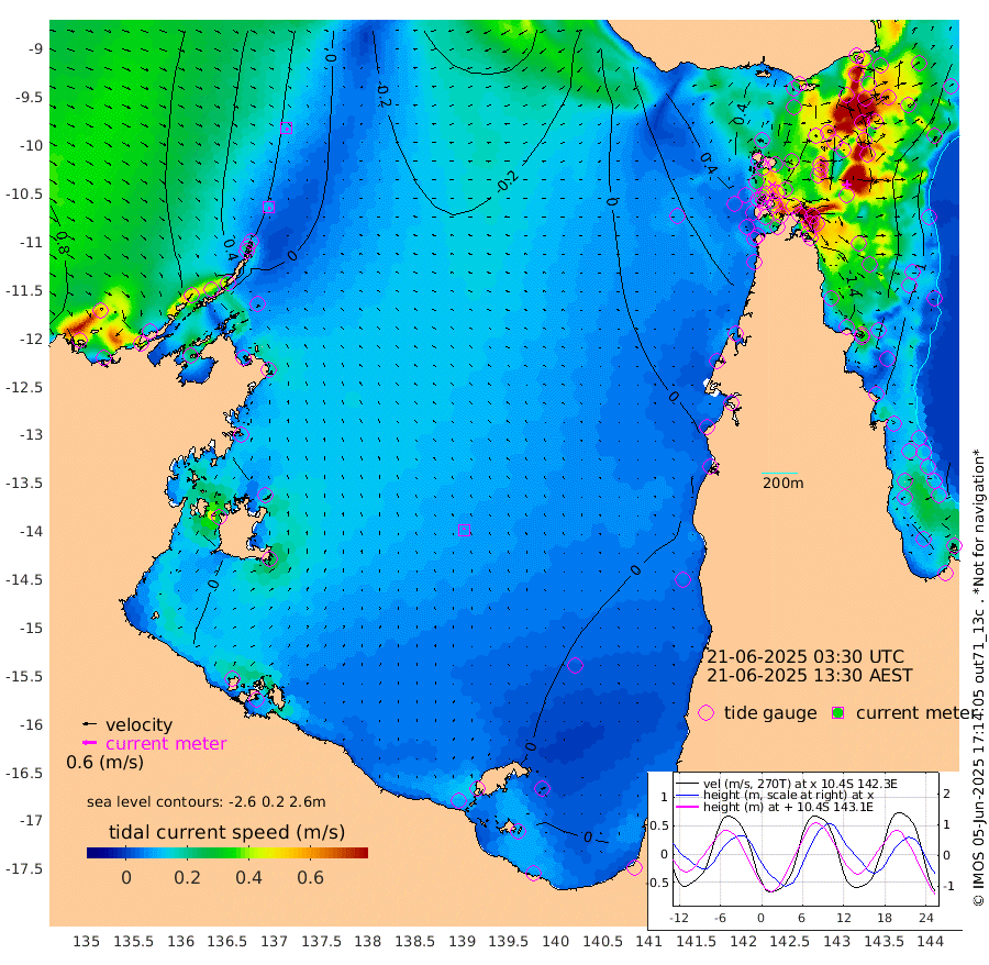 9cm/s 161T +3cm/s rms + 7cm/s -42T. ARA-GOC87 57m 9cm/s -27T +3cm/s rms + 2cm/s -2T. ARA-GOC87 60m 11cm/s 149T +2cm/s rms + 3cm/s 61T. ARA-GOC87 47m -131cm Daru -131cm Bobo Island -94cm Meer Island Barge -117cm Bramble Cay -138cm Unnamed Cay -120cm Pearce Cay -130cm Stephens Island -139cm Merrie England Shoals -137cm Mutacomal Reef -124cm Darnley Island Barge -105cm East Cay -127cm Yorke Island Barge -128cm Rennel Island -121cm Aureed Island -114cm Dungeness Reef -87cm Zagai Island -91cm Yam Island -25cm Dauan Island -37cm Saibai Island -46cm Phipi Reef -83cm Warrior Reef - West -22cm Mabuiag Island Barge -125cm Half Way Island -119cm Coconut Island -127cm Dugong Islet -99cm Poll Island -112cm Kirkcaldie Reef -85cm Suarji Island -103cm Sue Islet 10cm Hawkesbury Island -73cm Alert Patches -77cm Twin Island 17cm Badu Island -68cm St Pauls (Moa Island) -12cm Kubin (Moa Island) -46cm Ince Point -30cm Thursday Island -33cm Nardana Patches -13cm Turtle Head -18cm Round Island 16cm Goods Island 35cm Booby Island 27cm White Rocks Area 18cm Carpentaria -65cm Papou Point -7cm Bampfield Head 37cm Crab Island 33cm Red Wallis Island 0cm Packe Island -136cm Harrington Reef -10cm Herald Camp -20cm Sharp Point -15cm Red Island Point -56cm Possession Island -85cm Alpha Rock -101cm Frederick Point -131cm Wyborn Reef Light -124cm Tetley Island -81cm Triangle Reef -132cm Turtle Head Island -94cm Maclennan Cay -70cm Raine Island -124cm Mcsweeny Reef -119cm Collette Reef -91cm Shadwell Reef -132cm Hannibal Island -117cm Round Point 40cm Vrilya Point -114cm Cape Grenville -106cm Hicks Island -112cm Sir Charles Hardy Island -36cm Harvey Island -106cm Kay Reef -87cm Rocky Island -74cm Chapman Island -77cm Ham Reef -82cm Jubilee Reef -76cm Night Island -76cm Unnamed Reef No. 3 -89cm Morris Island -79cm 1st 3 Mile Opening -84cm Creech Reef -81cm Fife Island -93cm Eden Reef -93cm Stanley Island -102cm Normanby River 61cm Yabooma Island 54cm Hutchison River 62cm Elcho Island 64cm North West Crocodile Island 9cm Cape Wessel 43cm Stevens Island -30cm Guluwuru Island 39cm Hopeful Bay 22cm Auster Point 23cm Two Island Bay 38cm Cadell Strait -94cm Mallison Island -12cm Melville Bay (Gove Harbour) -14cm Truant Island -13cm Cape Arnhem -16cm Cape Grey -8cm Hawk Island 5cm Milner Bay (Groote Eylandt) 5cm Cape Beatrice 3cm West Island 3cm Centre Island -5cm Mornington Island -4cm West Wellesley Islands -6cm Bountiful Island 38cm Albert River Mouth 37cm Sweers Island 29cm Karumba 1cm Nassau River Offshore -8cm Christmas Creek 9cm Archer River 5cm Boyd Point 14cm Weipa (Humbug Point) 28cm Pennefather River 27cm Cullen Point
