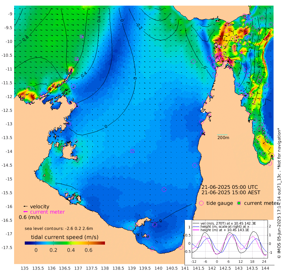 20cm/s 121T +3cm/s rms + 7cm/s -42T. ARA-GOC87 57m 7cm/s -40T +3cm/s rms + 2cm/s -2T. ARA-GOC87 60m 22cm/s 111T +2cm/s rms + 3cm/s 61T. ARA-GOC87 47m -117cm Daru -109cm Bobo Island -44cm Meer Island Barge -72cm Bramble Cay -109cm Unnamed Cay -91cm Pearce Cay -91cm Stephens Island -107cm Merrie England Shoals -129cm Mutacomal Reef -83cm Darnley Island Barge -53cm East Cay -100cm Yorke Island Barge -107cm Rennel Island -101cm Aureed Island -110cm Dungeness Reef -110cm Zagai Island -121cm Yam Island -70cm Dauan Island -83cm Saibai Island -84cm Phipi Reef -109cm Warrior Reef - West -72cm Mabuiag Island Barge -106cm Half Way Island -116cm Coconut Island -119cm Dugong Islet -115cm Poll Island -124cm Kirkcaldie Reef -120cm Suarji Island -119cm Sue Islet -33cm Hawkesbury Island -107cm Alert Patches -111cm Twin Island -26cm Badu Island -111cm St Pauls (Moa Island) -50cm Kubin (Moa Island) -86cm Ince Point -73cm Thursday Island -76cm Nardana Patches -49cm Turtle Head -52cm Round Island -17cm Goods Island 0cm Booby Island -11cm White Rocks Area -14cm Carpentaria -100cm Papou Point -30cm Bampfield Head 6cm Crab Island -8cm Red Wallis Island -38cm Packe Island -130cm Harrington Reef -45cm Herald Camp -40cm Sharp Point -52cm Red Island Point -86cm Possession Island -116cm Alpha Rock -118cm Frederick Point -124cm Wyborn Reef Light -126cm Tetley Island -49cm Triangle Reef -115cm Turtle Head Island -52cm Maclennan Cay -20cm Raine Island -94cm Mcsweeny Reef -85cm Collette Reef -49cm Shadwell Reef -92cm Hannibal Island -72cm Round Point 10cm Vrilya Point -72cm Cape Grenville -59cm Hicks Island -65cm Sir Charles Hardy Island -22cm Harvey Island -57cm Kay Reef -36cm Rocky Island -24cm Chapman Island -28cm Ham Reef -32cm Jubilee Reef -31cm Night Island -27cm Unnamed Reef No. 3 -35cm Morris Island -26cm 1st 3 Mile Opening -32cm Creech Reef -24cm Fife Island -27cm Eden Reef -38cm Stanley Island -43cm Normanby River 114cm Yabooma Island 125cm Hutchison River 120cm Elcho Island 111cm North West Crocodile Island 60cm Cape Wessel 99cm Stevens Island 41cm Guluwuru Island 93cm Hopeful Bay 76cm Auster Point 77cm Two Island Bay 114cm Cadell Strait 10cm Mallison Island 48cm Melville Bay (Gove Harbour) 49cm Truant Island 30cm Cape Arnhem 13cm Cape Grey 9cm Hawk Island 4cm Milner Bay (Groote Eylandt) -1cm Cape Beatrice -25cm West Island -26cm Centre Island -16cm Mornington Island -18cm West Wellesley Islands -17cm Bountiful Island 25cm Albert River Mouth 30cm Sweers Island 14cm Karumba -11cm Nassau River Offshore -16cm Christmas Creek 3cm Archer River -3cm Boyd Point 7cm Weipa (Humbug Point) 13cm Pennefather River 1cm Cullen Point