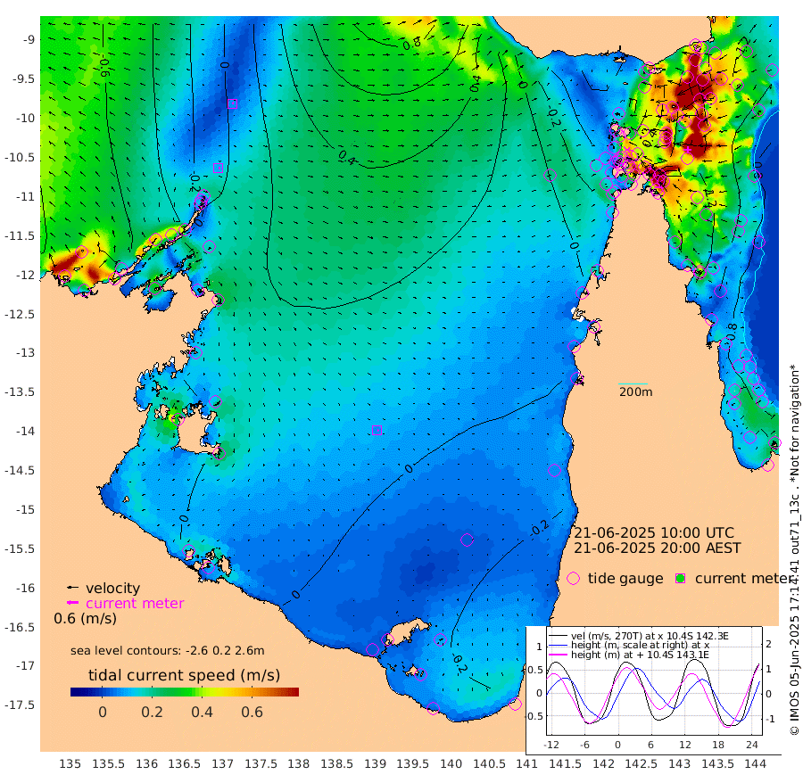 10cm/s 88T +3cm/s rms + 7cm/s -42T. ARA-GOC87 57m 7cm/s 122T +3cm/s rms + 2cm/s -2T. ARA-GOC87 60m 7cm/s 72T +2cm/s rms + 3cm/s 61T. ARA-GOC87 47m 118cm Daru 121cm Bobo Island 88cm Meer Island Barge 108cm Bramble Cay 126cm Unnamed Cay 116cm Pearce Cay 121cm Stephens Island 133cm Merrie England Shoals 123cm Mutacomal Reef 116cm Darnley Island Barge 92cm East Cay 115cm Yorke Island Barge 117cm Rennel Island 113cm Aureed Island 102cm Dungeness Reef 68cm Zagai Island 60cm Yam Island -7cm Dauan Island -2cm Saibai Island 21cm Phipi Reef 55cm Warrior Reef - West -1cm Mabuiag Island Barge 117cm Half Way Island 113cm Coconut Island 113cm Dugong Islet 86cm Poll Island 96cm Kirkcaldie Reef 70cm Suarji Island 84cm Sue Islet -29cm Hawkesbury Island 67cm Alert Patches 66cm Twin Island -23cm Badu Island 55cm St Pauls (Moa Island) -3cm Kubin (Moa Island) 36cm Ince Point 22cm Thursday Island 25cm Nardana Patches 7cm Turtle Head 1cm Round Island -18cm Goods Island -30cm Booby Island -26cm White Rocks Area -5cm Carpentaria 48cm Papou Point 2cm Bampfield Head -27cm Crab Island -32cm Red Wallis Island -7cm Packe Island 128cm Harrington Reef -23cm Herald Camp 15cm Sharp Point -1cm Red Island Point 46cm Possession Island 70cm Alpha Rock 91cm Frederick Point 122cm Wyborn Reef Light 113cm Tetley Island 74cm Triangle Reef 132cm Turtle Head Island 82cm Maclennan Cay 66cm Raine Island 117cm Mcsweeny Reef 113cm Collette Reef 86cm Shadwell Reef 127cm Hannibal Island 111cm Round Point -19cm Vrilya Point 106cm Cape Grenville 94cm Hicks Island 89cm Sir Charles Hardy Island 32cm Harvey Island 97cm Kay Reef 76cm Rocky Island 65cm Chapman Island 66cm Ham Reef 74cm Jubilee Reef 73cm Night Island 69cm Unnamed Reef No. 3 83cm Morris Island 77cm 1st 3 Mile Opening 78cm Creech Reef 76cm Fife Island 88cm Eden Reef 87cm Stanley Island 90cm Normanby River -79cm Yabooma Island -61cm Hutchison River -64cm Elcho Island -75cm North West Crocodile Island -17cm Cape Wessel -44cm Stevens Island 28cm Guluwuru Island -44cm Hopeful Bay -24cm Auster Point -33cm Two Island Bay -43cm Cadell Strait 98cm Mallison Island 12cm Melville Bay (Gove Harbour) 16cm Truant Island 18cm Cape Arnhem 15cm Cape Grey 11cm Hawk Island -1cm Milner Bay (Groote Eylandt) -2cm Cape Beatrice -5cm West Island 1cm Centre Island -6cm Mornington Island -9cm West Wellesley Islands -36cm Bountiful Island -55cm Albert River Mouth -46cm Sweers Island -54cm Karumba -21cm Nassau River Offshore -11cm Christmas Creek -10cm Archer River -6cm Boyd Point -20cm Weipa (Humbug Point) 1cm Pennefather River -25cm Cullen Point