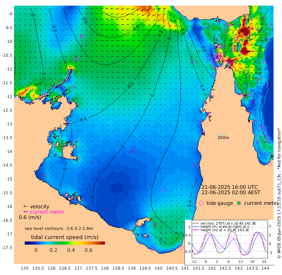23cm/s -88T +3cm/s rms + 7cm/s -42T. ARA-GOC87 57m 5cm/s -99T +3cm/s rms + 2cm/s -2T. ARA-GOC87 60m 20cm/s -97T +2cm/s rms + 3cm/s 61T. ARA-GOC87 47m -65cm Daru -71cm Bobo Island -49cm Meer Island Barge -68cm Bramble Cay -73cm Unnamed Cay -71cm Pearce Cay -74cm Stephens Island -86cm Merrie England Shoals -72cm Mutacomal Reef -68cm Darnley Island Barge -51cm East Cay -64cm Yorke Island Barge -62cm Rennel Island -60cm Aureed Island -44cm Dungeness Reef -9cm Zagai Island -5cm Yam Island 67cm Dauan Island 59cm Saibai Island 47cm Phipi Reef 3cm Warrior Reef - West 58cm Mabuiag Island Barge -73cm Half Way Island -53cm Coconut Island -61cm Dugong Islet -31cm Poll Island -41cm Kirkcaldie Reef 12cm Suarji Island -27cm Sue Islet 90cm Hawkesbury Island 7cm Alert Patches -2cm Twin Island 86cm Badu Island 10cm St Pauls (Moa Island) 64cm Kubin (Moa Island) 29cm Ince Point 42cm Thursday Island 41cm Nardana Patches 64cm Turtle Head 82cm Round Island 87cm Goods Island 100cm Booby Island 95cm White Rocks Area 72cm Carpentaria 7cm Papou Point 117cm Bampfield Head 76cm Crab Island 90cm Red Wallis Island 68cm Packe Island -69cm Harrington Reef 110cm Herald Camp -1cm Sharp Point 51cm Red Island Point 33cm Possession Island -12cm Alpha Rock -29cm Frederick Point -63cm Wyborn Reef Light -55cm Tetley Island -34cm Triangle Reef -75cm Turtle Head Island -39cm Maclennan Cay -29cm Raine Island -67cm Mcsweeny Reef -63cm Collette Reef -43cm Shadwell Reef -76cm Hannibal Island -68cm Round Point 55cm Vrilya Point -61cm Cape Grenville -50cm Hicks Island -36cm Sir Charles Hardy Island -18cm Harvey Island -54cm Kay Reef -35cm Rocky Island -25cm Chapman Island -27cm Ham Reef -37cm Jubilee Reef -39cm Night Island -32cm Unnamed Reef No. 3 -42cm Morris Island -30cm 1st 3 Mile Opening -38cm Creech Reef -43cm Fife Island -49cm Eden Reef -46cm Stanley Island -55cm Normanby River 21cm Yabooma Island 4cm Hutchison River 5cm Elcho Island 7cm North West Crocodile Island -17cm Cape Wessel -16cm Stevens Island -47cm Guluwuru Island -3cm Hopeful Bay -10cm Auster Point -19cm Two Island Bay -35cm Cadell Strait -132cm Mallison Island -31cm Melville Bay (Gove Harbour) -32cm Truant Island -24cm Cape Arnhem -18cm Cape Grey -15cm Hawk Island -11cm Milner Bay (Groote Eylandt) -12cm Cape Beatrice -9cm West Island -8cm Centre Island -2cm Mornington Island 4cm West Wellesley Islands 32cm Bountiful Island 14cm Albert River Mouth 9cm Sweers Island 18cm Karumba 12cm Nassau River Offshore 27cm Christmas Creek 39cm Archer River 49cm Boyd Point 64cm Weipa (Humbug Point) 23cm Pennefather River 70cm Cullen Point