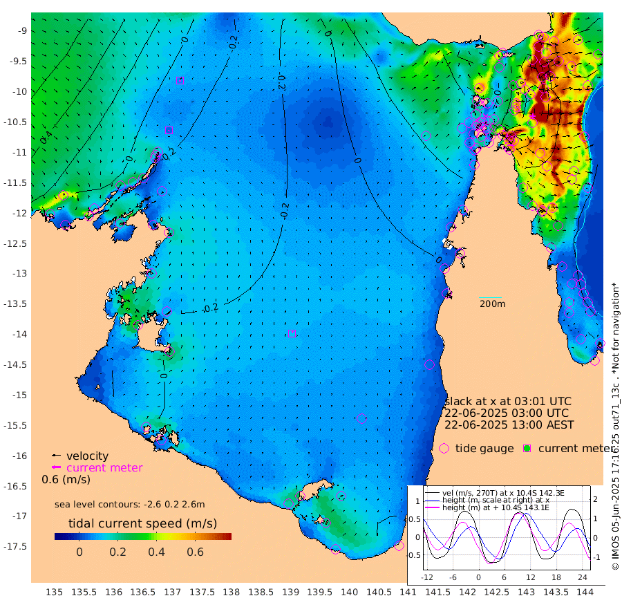 4cm/s -144T +3cm/s rms + 7cm/s -42T. ARA-GOC87 57m 13cm/s 8T +3cm/s rms + 2cm/s -2T. ARA-GOC87 60m 6cm/s -172T +2cm/s rms + 3cm/s 61T. ARA-GOC87 47m -113cm Daru -119cm Bobo Island -117cm Meer Island Barge -129cm Bramble Cay -130cm Unnamed Cay -120cm Pearce Cay -133cm Stephens Island -131cm Merrie England Shoals -112cm Mutacomal Reef -130cm Darnley Island Barge -127cm East Cay -119cm Yorke Island Barge -118cm Rennel Island -113cm Aureed Island -97cm Dungeness Reef -53cm Zagai Island -53cm Yam Island -2cm Dauan Island -3cm Saibai Island -27cm Phipi Reef -53cm Warrior Reef - West 13cm Mabuiag Island Barge -112cm Half Way Island -96cm Coconut Island -107cm Dugong Islet -68cm Poll Island -80cm Kirkcaldie Reef -50cm Suarji Island -67cm Sue Islet 18cm Hawkesbury Island -37cm Alert Patches -40cm Twin Island 23cm Badu Island -26cm St Pauls (Moa Island) 0cm Kubin (Moa Island) -15cm Ince Point -3cm Thursday Island -6cm Nardana Patches -4cm Turtle Head -8cm Round Island 11cm Goods Island 29cm Booby Island 25cm White Rocks Area 30cm Carpentaria -28cm Papou Point -12cm Bampfield Head 32cm Crab Island 33cm Red Wallis Island 4cm Packe Island -109cm Harrington Reef -9cm Herald Camp 0cm Sharp Point 1cm Red Island Point -32cm Possession Island -43cm Alpha Rock -68cm Frederick Point -105cm Wyborn Reef Light -93cm Tetley Island -94cm Triangle Reef -112cm Turtle Head Island -112cm Maclennan Cay -101cm Raine Island -120cm Mcsweeny Reef -120cm Collette Reef -109cm Shadwell Reef -135cm Hannibal Island -130cm Round Point 43cm Vrilya Point -126cm Cape Grenville -125cm Hicks Island -133cm Sir Charles Hardy Island -40cm Harvey Island -126cm Kay Reef -115cm Rocky Island -106cm Chapman Island -105cm Ham Reef -109cm Jubilee Reef -101cm Night Island -105cm Unnamed Reef No. 3 -119cm Morris Island -111cm 1st 3 Mile Opening -113cm Creech Reef -113cm Fife Island -134cm Eden Reef -122cm Stanley Island -132cm Normanby River -4cm Yabooma Island -26cm Hutchison River -5cm Elcho Island 4cm North West Crocodile Island -25cm Cape Wessel -8cm Stevens Island -67cm Guluwuru Island -14cm Hopeful Bay -20cm Auster Point -18cm Two Island Bay -29cm Cadell Strait -114cm Mallison Island -49cm Melville Bay (Gove Harbour) -51cm Truant Island -38cm Cape Arnhem -28cm Cape Grey -18cm Hawk Island 11cm Milner Bay (Groote Eylandt) 10cm Cape Beatrice 28cm West Island 27cm Centre Island -11cm Mornington Island -8cm West Wellesley Islands -23cm Bountiful Island 10cm Albert River Mouth 13cm Sweers Island 3cm Karumba -16cm Nassau River Offshore -28cm Christmas Creek -12cm Archer River -8cm Boyd Point -10cm Weipa (Humbug Point) 23cm Pennefather River 24cm Cullen Point