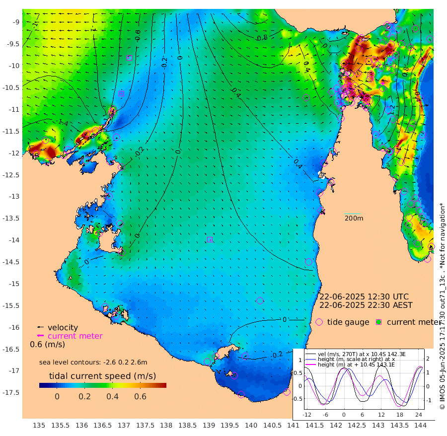 9cm/s -91T +3cm/s rms + 7cm/s -42T. ARA-GOC87 57m 14cm/s 149T +3cm/s rms + 2cm/s -2T. ARA-GOC87 60m 15cm/s -95T +2cm/s rms + 3cm/s 61T. ARA-GOC87 47m 135cm Daru 124cm Bobo Island 53cm Meer Island Barge 79cm Bramble Cay 121cm Unnamed Cay 113cm Pearce Cay 104cm Stephens Island 119cm Merrie England Shoals 142cm Mutacomal Reef 95cm Darnley Island Barge 56cm East Cay 116cm Yorke Island Barge 126cm Rennel Island 123cm Aureed Island 138cm Dungeness Reef 138cm Zagai Island 138cm Yam Island 108cm Dauan Island 106cm Saibai Island 124cm Phipi Reef 137cm Warrior Reef - West 106cm Mabuiag Island Barge 124cm Half Way Island 145cm Coconut Island 138cm Dugong Islet 144cm Poll Island 146cm Kirkcaldie Reef 163cm Suarji Island 142cm Sue Islet 74cm Hawkesbury Island 156cm Alert Patches 151cm Twin Island 81cm Badu Island 152cm St Pauls (Moa Island) 93cm Kubin (Moa Island) 131cm Ince Point 121cm Thursday Island 124cm Nardana Patches 105cm Turtle Head 95cm Round Island 75cm Goods Island 64cm Booby Island 70cm White Rocks Area 70cm Carpentaria 128cm Papou Point 96cm Bampfield Head 48cm Crab Island 65cm Red Wallis Island 89cm Packe Island 155cm Harrington Reef 80cm Herald Camp 47cm Sharp Point 82cm Red Island Point 129cm Possession Island 143cm Alpha Rock 150cm Frederick Point 146cm Wyborn Reef Light 148cm Tetley Island 62cm Triangle Reef 146cm Turtle Head Island 59cm Maclennan Cay 30cm Raine Island 111cm Mcsweeny Reef 100cm Collette Reef 61cm Shadwell Reef 106cm Hannibal Island 81cm Round Point 46cm Vrilya Point 78cm Cape Grenville 64cm Hicks Island 66cm Sir Charles Hardy Island 23cm Harvey Island 59cm Kay Reef 40cm Rocky Island 31cm Chapman Island 30cm Ham Reef 38cm Jubilee Reef 41cm Night Island 33cm Unnamed Reef No. 3 41cm Morris Island 42cm 1st 3 Mile Opening 41cm Creech Reef 32cm Fife Island 34cm Eden Reef 44cm Stanley Island 40cm Normanby River -155cm Yabooma Island -158cm Hutchison River -152cm Elcho Island -153cm North West Crocodile Island -85cm Cape Wessel -129cm Stevens Island -52cm Guluwuru Island -124cm Hopeful Bay -95cm Auster Point -110cm Two Island Bay -146cm Cadell Strait -24cm Mallison Island -57cm Melville Bay (Gove Harbour) -55cm Truant Island -31cm Cape Arnhem -21cm Cape Grey -17cm Hawk Island -19cm Milner Bay (Groote Eylandt) -15cm Cape Beatrice 2cm West Island 9cm Centre Island -5cm Mornington Island 0cm West Wellesley Islands -31cm Bountiful Island -69cm Albert River Mouth -73cm Sweers Island -62cm Karumba -3cm Nassau River Offshore 20cm Christmas Creek 24cm Archer River 38cm Boyd Point 27cm Weipa (Humbug Point) 37cm Pennefather River 41cm Cullen Point