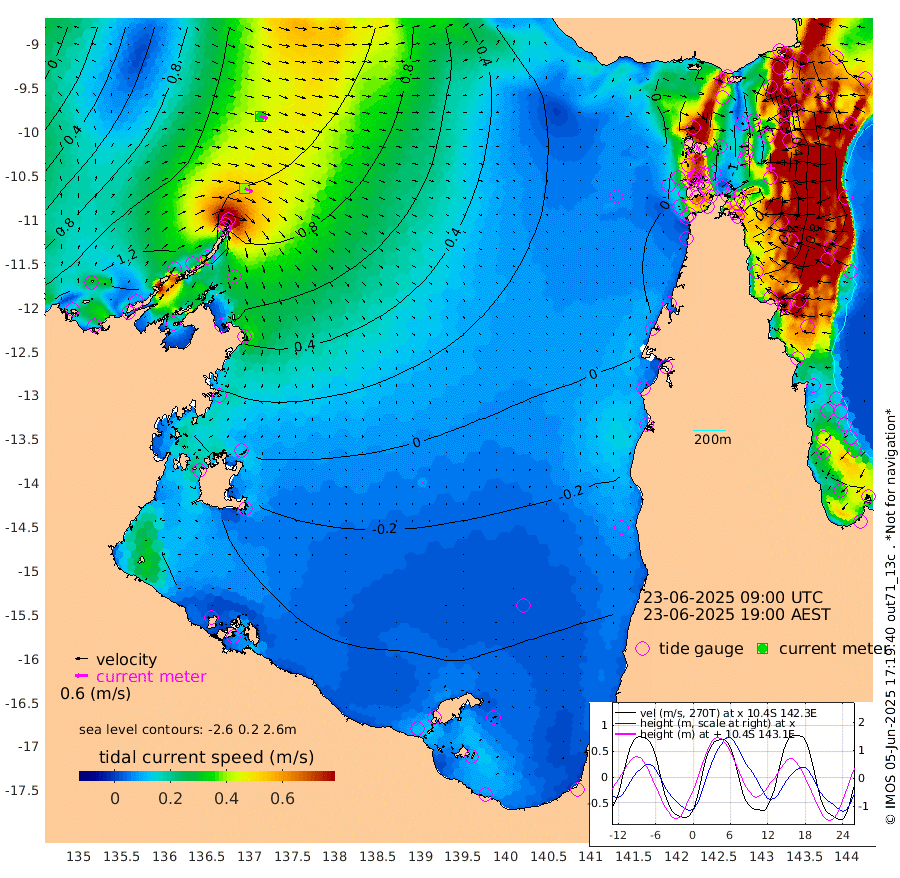 39cm/s 115T +3cm/s rms + 7cm/s -42T. ARA-GOC87 57m 8cm/s 159T +3cm/s rms + 2cm/s -2T. ARA-GOC87 60m 36cm/s 110T +2cm/s rms + 3cm/s 61T. ARA-GOC87 47m 28cm Daru 47cm Bobo Island 91cm Meer Island Barge 87cm Bramble Cay 58cm Unnamed Cay 66cm Pearce Cay 75cm Stephens Island 68cm Merrie England Shoals 26cm Mutacomal Reef 75cm Darnley Island Barge 96cm East Cay 49cm Yorke Island Barge 45cm Rennel Island 43cm Aureed Island 14cm Dungeness Reef -39cm Zagai Island -47cm Yam Island -85cm Dauan Island -86cm Saibai Island -74cm Phipi Reef -49cm Warrior Reef - West -71cm Mabuiag Island Barge 45cm Half Way Island 21cm Coconut Island 26cm Dugong Islet -14cm Poll Island -7cm Kirkcaldie Reef -51cm Suarji Island -22cm Sue Islet -9cm Hawkesbury Island -36cm Alert Patches -35cm Twin Island -17cm Badu Island -56cm St Pauls (Moa Island) -18cm Kubin (Moa Island) -40cm Ince Point -36cm Thursday Island -39cm Nardana Patches -18cm Turtle Head -19cm Round Island 8cm Goods Island 13cm Booby Island 8cm White Rocks Area 14cm Carpentaria -37cm Papou Point 19cm Bampfield Head 13cm Crab Island 5cm Red Wallis Island -8cm Packe Island 26cm Harrington Reef -18cm Herald Camp -33cm Sharp Point -17cm Red Island Point -27cm Possession Island -37cm Alpha Rock -10cm Frederick Point 24cm Wyborn Reef Light 11cm Tetley Island 65cm Triangle Reef 49cm Turtle Head Island 80cm Maclennan Cay 95cm Raine Island 59cm Mcsweeny Reef 65cm Collette Reef 78cm Shadwell Reef 77cm Hannibal Island 91cm Round Point 17cm Vrilya Point 83cm Cape Grenville 88cm Hicks Island 85cm Sir Charles Hardy Island 25cm Harvey Island 96cm Kay Reef 92cm Rocky Island 94cm Chapman Island 92cm Ham Reef 94cm Jubilee Reef 84cm Night Island 95cm Unnamed Reef No. 3 102cm Morris Island 98cm 1st 3 Mile Opening 98cm Creech Reef 99cm Fife Island 125cm Eden Reef 103cm Stanley Island 112cm Normanby River 120cm Yabooma Island 162cm Hutchison River 133cm Elcho Island 114cm North West Crocodile Island 104cm Cape Wessel 122cm Stevens Island 123cm Guluwuru Island 111cm Hopeful Bay 109cm Auster Point 110cm Two Island Bay 155cm Cadell Strait 148cm Mallison Island 101cm Melville Bay (Gove Harbour) 110cm Truant Island 69cm Cape Arnhem 30cm Cape Grey 7cm Hawk Island -36cm Milner Bay (Groote Eylandt) -42cm Cape Beatrice -94cm West Island -93cm Centre Island -84cm Mornington Island -89cm West Wellesley Islands -108cm Bountiful Island -110cm Albert River Mouth -118cm Sweers Island -114cm Karumba -61cm Nassau River Offshore -30cm Christmas Creek 8cm Archer River 12cm Boyd Point 13cm Weipa (Humbug Point) 22cm Pennefather River 3cm Cullen Point