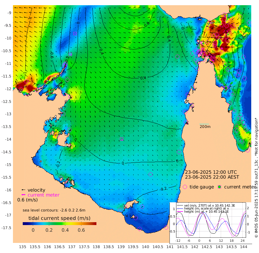 15cm/s 118T +3cm/s rms + 7cm/s -42T. ARA-GOC87 57m 22cm/s 159T +3cm/s rms + 2cm/s -2T. ARA-GOC87 60m 6cm/s 133T +2cm/s rms + 3cm/s 61T. ARA-GOC87 47m 177cm Daru 176cm Bobo Island 114cm Meer Island Barge 143cm Bramble Cay 175cm Unnamed Cay 174cm Pearce Cay 166cm Stephens Island 177cm Merrie England Shoals 182cm Mutacomal Reef 156cm Darnley Island Barge 120cm East Cay 166cm Yorke Island Barge 173cm Rennel Island 170cm Aureed Island 170cm Dungeness Reef 139cm Zagai Island 137cm Yam Island 80cm Dauan Island 75cm Saibai Island 102cm Phipi Reef 136cm Warrior Reef - West 72cm Mabuiag Island Barge 173cm Half Way Island 176cm Coconut Island 179cm Dugong Islet 159cm Poll Island 166cm Kirkcaldie Reef 150cm Suarji Island 151cm Sue Islet 55cm Hawkesbury Island 146cm Alert Patches 147cm Twin Island 59cm Badu Island 138cm St Pauls (Moa Island) 79cm Kubin (Moa Island) 115cm Ince Point 102cm Thursday Island 104cm Nardana Patches 88cm Turtle Head 70cm Round Island 61cm Goods Island 43cm Booby Island 50cm White Rocks Area 45cm Carpentaria 121cm Papou Point 69cm Bampfield Head 31cm Crab Island 45cm Red Wallis Island 75cm Packe Island 194cm Harrington Reef 53cm Herald Camp 36cm Sharp Point 70cm Red Island Point 114cm Possession Island 138cm Alpha Rock 164cm Frederick Point 181cm Wyborn Reef Light 177cm Tetley Island 107cm Triangle Reef 194cm Turtle Head Island 113cm Maclennan Cay 84cm Raine Island 163cm Mcsweeny Reef 152cm Collette Reef 112cm Shadwell Reef 166cm Hannibal Island 146cm Round Point 30cm Vrilya Point 136cm Cape Grenville 124cm Hicks Island 125cm Sir Charles Hardy Island 42cm Harvey Island 120cm Kay Reef 97cm Rocky Island 87cm Chapman Island 84cm Ham Reef 95cm Jubilee Reef 93cm Night Island 89cm Unnamed Reef No. 3 103cm Morris Island 98cm 1st 3 Mile Opening 100cm Creech Reef 95cm Fife Island 108cm Eden Reef 106cm Stanley Island 111cm Normanby River -90cm Yabooma Island -73cm Hutchison River -85cm Elcho Island -93cm North West Crocodile Island -24cm Cape Wessel -61cm Stevens Island 26cm Guluwuru Island -66cm Hopeful Bay -36cm Auster Point -44cm Two Island Bay -47cm Cadell Strait 88cm Mallison Island 6cm Melville Bay (Gove Harbour) 12cm Truant Island 12cm Cape Arnhem -1cm Cape Grey -9cm Hawk Island -37cm Milner Bay (Groote Eylandt) -34cm Cape Beatrice -45cm West Island -41cm Centre Island -37cm Mornington Island -34cm West Wellesley Islands -71cm Bountiful Island -111cm Albert River Mouth -124cm Sweers Island -106cm Karumba -19cm Nassau River Offshore 15cm Christmas Creek 22cm Archer River 33cm Boyd Point 22cm Weipa (Humbug Point) 33cm Pennefather River 22cm Cullen Point