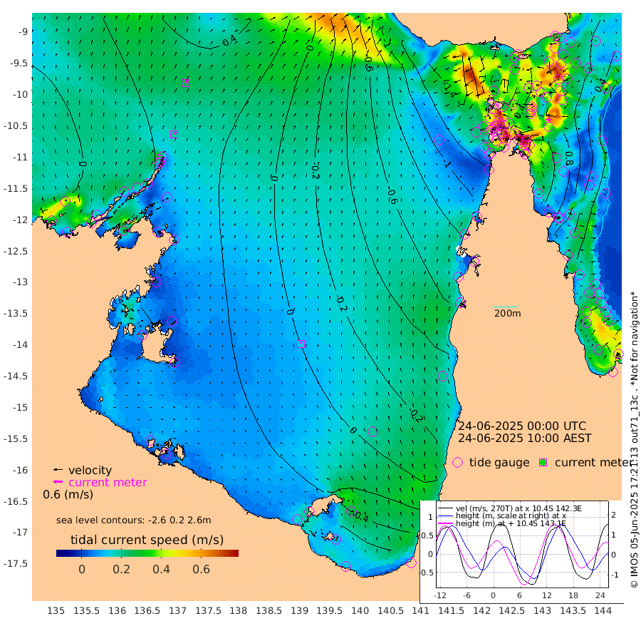 20cm/s 38T +3cm/s rms + 7cm/s -42T. ARA-GOC87 57m 14cm/s -13T +3cm/s rms + 2cm/s -2T. ARA-GOC87 60m 25cm/s 37T +2cm/s rms + 3cm/s 61T. ARA-GOC87 47m 69cm Daru 76cm Bobo Island 29cm Meer Island Barge 54cm Bramble Cay 70cm Unnamed Cay 69cm Pearce Cay 65cm Stephens Island 75cm Merrie England Shoals 77cm Mutacomal Reef 59cm Darnley Island Barge 34cm East Cay 65cm Yorke Island Barge 61cm Rennel Island 65cm Aureed Island 52cm Dungeness Reef 31cm Zagai Island 30cm Yam Island -43cm Dauan Island -31cm Saibai Island -20cm Phipi Reef 24cm Warrior Reef - West -54cm Mabuiag Island Barge 69cm Half Way Island 53cm Coconut Island 66cm Dugong Islet 43cm Poll Island 45cm Kirkcaldie Reef 11cm Suarji Island 39cm Sue Islet -141cm Hawkesbury Island -13cm Alert Patches 3cm Twin Island -136cm Badu Island -2cm St Pauls (Moa Island) -97cm Kubin (Moa Island) -40cm Ince Point -65cm Thursday Island -59cm Nardana Patches -101cm Turtle Head -113cm Round Island -151cm Goods Island -184cm Booby Island -164cm White Rocks Area -163cm Carpentaria -2cm Papou Point -189cm Bampfield Head -159cm Crab Island -167cm Red Wallis Island -118cm Packe Island 71cm Harrington Reef -150cm Herald Camp 9cm Sharp Point -82cm Red Island Point -42cm Possession Island 20cm Alpha Rock 32cm Frederick Point 67cm Wyborn Reef Light 61cm Tetley Island 20cm Triangle Reef 63cm Turtle Head Island 23cm Maclennan Cay -1cm Raine Island 58cm Mcsweeny Reef 52cm Collette Reef 22cm Shadwell Reef 64cm Hannibal Island 51cm Round Point -151cm Vrilya Point 44cm Cape Grenville 35cm Hicks Island 25cm Sir Charles Hardy Island 14cm Harvey Island 31cm Kay Reef 15cm Rocky Island 2cm Chapman Island 3cm Ham Reef 10cm Jubilee Reef 15cm Night Island 3cm Unnamed Reef No. 3 16cm Morris Island -1cm 1st 3 Mile Opening 9cm Creech Reef 15cm Fife Island 18cm Eden Reef 18cm Stanley Island 34cm Normanby River 13cm Yabooma Island 22cm Hutchison River 17cm Elcho Island 23cm North West Crocodile Island 35cm Cape Wessel 37cm Stevens Island 52cm Guluwuru Island 28cm Hopeful Bay 28cm Auster Point 41cm Two Island Bay 51cm Cadell Strait 98cm Mallison Island 43cm Melville Bay (Gove Harbour) 40cm Truant Island 32cm Cape Arnhem 40cm Cape Grey 48cm Hawk Island 58cm Milner Bay (Groote Eylandt) 56cm Cape Beatrice 67cm West Island 64cm Centre Island 70cm Mornington Island 69cm West Wellesley Islands 82cm Bountiful Island 103cm Albert River Mouth 123cm Sweers Island 96cm Karumba 28cm Nassau River Offshore -23cm Christmas Creek -79cm Archer River -99cm Boyd Point -112cm Weipa (Humbug Point) -102cm Pennefather River -137cm Cullen Point
