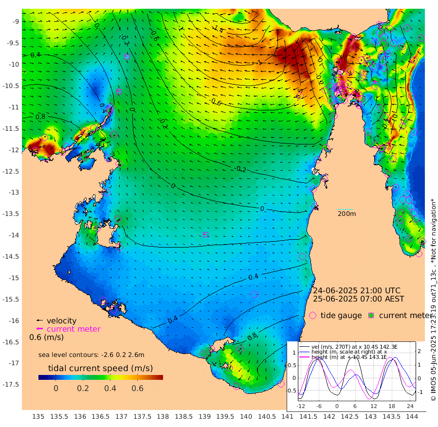21cm/s -68T +3cm/s rms + 7cm/s -42T. ARA-GOC87 57m 18cm/s -84T +3cm/s rms + 2cm/s -2T. ARA-GOC87 60m 15cm/s -58T +2cm/s rms + 3cm/s 61T. ARA-GOC87 47m -53cm Daru -47cm Bobo Island 7cm Meer Island Barge -3cm Bramble Cay -33cm Unnamed Cay -38cm Pearce Cay -25cm Stephens Island -31cm Merrie England Shoals -54cm Mutacomal Reef -22cm Darnley Island Barge 13cm East Cay -42cm Yorke Island Barge -44cm Rennel Island -45cm Aureed Island -56cm Dungeness Reef -77cm Zagai Island -74cm Yam Island -64cm Dauan Island -68cm Saibai Island -44cm Phipi Reef -68cm Warrior Reef - West -81cm Mabuiag Island Barge -50cm Half Way Island -66cm Coconut Island -61cm Dugong Islet -77cm Poll Island -73cm Kirkcaldie Reef -84cm Suarji Island -81cm Sue Islet -64cm Hawkesbury Island -94cm Alert Patches -94cm Twin Island -65cm Badu Island -102cm St Pauls (Moa Island) -66cm Kubin (Moa Island) -88cm Ince Point -86cm Thursday Island -85cm Nardana Patches -66cm Turtle Head -54cm Round Island -52cm Goods Island -59cm Booby Island -57cm White Rocks Area -85cm Carpentaria -87cm Papou Point -63cm Bampfield Head -52cm Crab Island -60cm Red Wallis Island -56cm Packe Island -74cm Harrington Reef -39cm Herald Camp -32cm Sharp Point -56cm Red Island Point -75cm Possession Island -89cm Alpha Rock -85cm Frederick Point -68cm Wyborn Reef Light -76cm Tetley Island -6cm Triangle Reef -81cm Turtle Head Island 4cm Maclennan Cay 23cm Raine Island -35cm Mcsweeny Reef -23cm Collette Reef 3cm Shadwell Reef -20cm Hannibal Island -4cm Round Point -67cm Vrilya Point -1cm Cape Grenville 7cm Hicks Island 13cm Sir Charles Hardy Island 0cm Harvey Island 14cm Kay Reef 24cm Rocky Island 28cm Chapman Island 23cm Ham Reef 18cm Jubilee Reef 15cm Night Island 22cm Unnamed Reef No. 3 23cm Morris Island 17cm 1st 3 Mile Opening 18cm Creech Reef 20cm Fife Island 35cm Eden Reef 22cm Stanley Island 27cm Normanby River 86cm Yabooma Island 97cm Hutchison River 89cm Elcho Island 90cm North West Crocodile Island 18cm Cape Wessel 56cm Stevens Island 9cm Guluwuru Island 70cm Hopeful Bay 31cm Auster Point 34cm Two Island Bay 56cm Cadell Strait -35cm Mallison Island 19cm Melville Bay (Gove Harbour) 7cm Truant Island 5cm Cape Arnhem 14cm Cape Grey 28cm Hawk Island 30cm Milner Bay (Groote Eylandt) 39cm Cape Beatrice 36cm West Island 35cm Centre Island 102cm Mornington Island 93cm West Wellesley Islands 157cm Bountiful Island 188cm Albert River Mouth 186cm Sweers Island 187cm Karumba 97cm Nassau River Offshore 63cm Christmas Creek 21cm Archer River -11cm Boyd Point 12cm Weipa (Humbug Point) -42cm Pennefather River -38cm Cullen Point