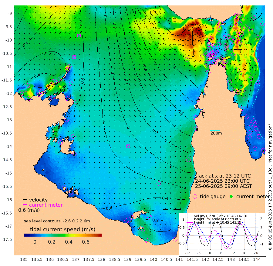 15cm/s 28T +3cm/s rms + 7cm/s -42T. ARA-GOC87 57m 17cm/s -52T +3cm/s rms + 2cm/s -2T. ARA-GOC87 60m 23cm/s 36T +2cm/s rms + 3cm/s 61T. ARA-GOC87 47m 30cm Daru 45cm Bobo Island 48cm Meer Island Barge 60cm Bramble Cay 49cm Unnamed Cay 49cm Pearce Cay 53cm Stephens Island 54cm Merrie England Shoals 35cm Mutacomal Reef 50cm Darnley Island Barge 55cm East Cay 38cm Yorke Island Barge 33cm Rennel Island 38cm Aureed Island 14cm Dungeness Reef -25cm Zagai Island -27cm Yam Island -80cm Dauan Island -77cm Saibai Island -48cm Phipi Reef -26cm Warrior Reef - West -101cm Mabuiag Island Barge 34cm Half Way Island 10cm Coconut Island 22cm Dugong Islet -11cm Poll Island -9cm Kirkcaldie Reef -44cm Suarji Island -20cm Sue Islet -150cm Hawkesbury Island -69cm Alert Patches -57cm Twin Island -146cm Badu Island -69cm St Pauls (Moa Island) -117cm Kubin (Moa Island) -89cm Ince Point -107cm Thursday Island -102cm Nardana Patches -118cm Turtle Head -123cm Round Island -145cm Goods Island -176cm Booby Island -158cm White Rocks Area -180cm Carpentaria -59cm Papou Point -179cm Bampfield Head -155cm Crab Island -165cm Red Wallis Island -125cm Packe Island 19cm Harrington Reef -144cm Herald Camp -19cm Sharp Point -102cm Red Island Point -79cm Possession Island -43cm Alpha Rock -25cm Frederick Point 19cm Wyborn Reef Light 7cm Tetley Island 28cm Triangle Reef 13cm Turtle Head Island 38cm Maclennan Cay 34cm Raine Island 39cm Mcsweeny Reef 42cm Collette Reef 37cm Shadwell Reef 56cm Hannibal Island 58cm Round Point -160cm Vrilya Point 52cm Cape Grenville 51cm Hicks Island 46cm Sir Charles Hardy Island 16cm Harvey Island 53cm Kay Reef 46cm Rocky Island 41cm Chapman Island 36cm Ham Reef 39cm Jubilee Reef 39cm Night Island 36cm Unnamed Reef No. 3 48cm Morris Island 31cm 1st 3 Mile Opening 39cm Creech Reef 46cm Fife Island 63cm Eden Reef 48cm Stanley Island 66cm Normanby River 96cm Yabooma Island 121cm Hutchison River 104cm Elcho Island 104cm North West Crocodile Island 67cm Cape Wessel 97cm Stevens Island 79cm Guluwuru Island 95cm Hopeful Bay 72cm Auster Point 80cm Two Island Bay 115cm Cadell Strait 90cm Mallison Island 74cm Melville Bay (Gove Harbour) 68cm Truant Island 49cm Cape Arnhem 51cm Cape Grey 60cm Hawk Island 59cm Milner Bay (Groote Eylandt) 60cm Cape Beatrice 53cm West Island 52cm Centre Island 102cm Mornington Island 96cm West Wellesley Islands 143cm Bountiful Island 180cm Albert River Mouth 193cm Sweers Island 171cm Karumba 70cm Nassau River Offshore 15cm Christmas Creek -47cm Archer River -81cm Boyd Point -76cm Weipa (Humbug Point) -104cm Pennefather River -132cm Cullen Point