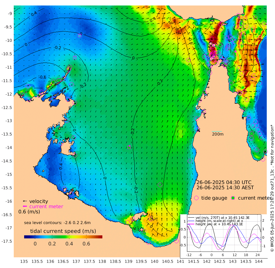 15cm/s 13T +3cm/s rms + 7cm/s -42T. ARA-GOC87 57m 33cm/s 14T +3cm/s rms + 2cm/s -2T. ARA-GOC87 60m 15cm/s 28T +2cm/s rms + 3cm/s 61T. ARA-GOC87 47m -66cm Daru -72cm Bobo Island -98cm Meer Island Barge -102cm Bramble Cay -86cm Unnamed Cay -90cm Pearce Cay -92cm Stephens Island -89cm Merrie England Shoals -70cm Mutacomal Reef -88cm Darnley Island Barge -110cm East Cay -72cm Yorke Island Barge -79cm Rennel Island -72cm Aureed Island -68cm Dungeness Reef -29cm Zagai Island -38cm Yam Island -40cm Dauan Island -24cm Saibai Island -61cm Phipi Reef -44cm Warrior Reef - West -25cm Mabuiag Island Barge -71cm Half Way Island -62cm Coconut Island -65cm Dugong Islet -45cm Poll Island -54cm Kirkcaldie Reef -36cm Suarji Island -33cm Sue Islet -110cm Hawkesbury Island -44cm Alert Patches -40cm Twin Island -98cm Badu Island -26cm St Pauls (Moa Island) -86cm Kubin (Moa Island) -48cm Ince Point -56cm Thursday Island -53cm Nardana Patches -90cm Turtle Head -89cm Round Island -119cm Goods Island -115cm Booby Island -113cm White Rocks Area -59cm Carpentaria -31cm Papou Point -117cm Bampfield Head -94cm Crab Island -109cm Red Wallis Island -108cm Packe Island -60cm Harrington Reef -117cm Herald Camp 8cm Sharp Point -81cm Red Island Point -53cm Possession Island -25cm Alpha Rock -47cm Frederick Point -58cm Wyborn Reef Light -50cm Tetley Island -87cm Triangle Reef -62cm Turtle Head Island -99cm Maclennan Cay -106cm Raine Island -79cm Mcsweeny Reef -85cm Collette Reef -93cm Shadwell Reef -94cm Hannibal Island -107cm Round Point -71cm Vrilya Point -100cm Cape Grenville -104cm Hicks Island -118cm Sir Charles Hardy Island -30cm Harvey Island -110cm Kay Reef -109cm Rocky Island -115cm Chapman Island -106cm Ham Reef -105cm Jubilee Reef -95cm Night Island -109cm Unnamed Reef No. 3 -113cm Morris Island -107cm 1st 3 Mile Opening -109cm Creech Reef -102cm Fife Island -133cm Eden Reef -112cm Stanley Island -119cm Normanby River -71cm Yabooma Island -97cm Hutchison River -69cm Elcho Island -63cm North West Crocodile Island -20cm Cape Wessel -42cm Stevens Island -35cm Guluwuru Island -48cm Hopeful Bay -28cm Auster Point -23cm Two Island Bay -63cm Cadell Strait -15cm Mallison Island -27cm Melville Bay (Gove Harbour) -25cm Truant Island -10cm Cape Arnhem 12cm Cape Grey 18cm Hawk Island 63cm Milner Bay (Groote Eylandt) 50cm Cape Beatrice 88cm West Island 86cm Centre Island 12cm Mornington Island 17cm West Wellesley Islands -8cm Bountiful Island 12cm Albert River Mouth 51cm Sweers Island 1cm Karumba -51cm Nassau River Offshore -89cm Christmas Creek -98cm Archer River -86cm Boyd Point -111cm Weipa (Humbug Point) -60cm Pennefather River -79cm Cullen Point