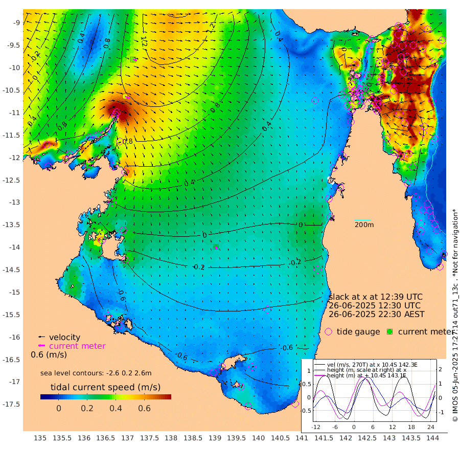 46cm/s 116T +3cm/s rms + 7cm/s -42T. ARA-GOC87 57m 25cm/s 163T +3cm/s rms + 2cm/s -2T. ARA-GOC87 60m 37cm/s 110T +2cm/s rms + 3cm/s 61T. ARA-GOC87 47m 135cm Daru 151cm Bobo Island 133cm Meer Island Barge 152cm Bramble Cay 152cm Unnamed Cay 166cm Pearce Cay 157cm Stephens Island 155cm Merrie England Shoals 141cm Mutacomal Reef 150cm Darnley Island Barge 144cm East Cay 142cm Yorke Island Barge 146cm Rennel Island 144cm Aureed Island 127cm Dungeness Reef 82cm Zagai Island 81cm Yam Island 36cm Dauan Island 31cm Saibai Island 41cm Phipi Reef 80cm Warrior Reef - West 36cm Mabuiag Island Barge 144cm Half Way Island 133cm Coconut Island 139cm Dugong Islet 108cm Poll Island 110cm Kirkcaldie Reef 79cm Suarji Island 96cm Sue Islet 89cm Hawkesbury Island 85cm Alert Patches 92cm Twin Island 73cm Badu Island 74cm St Pauls (Moa Island) 81cm Kubin (Moa Island) 73cm Ince Point 70cm Thursday Island 69cm Nardana Patches 77cm Turtle Head 70cm Round Island 85cm Goods Island 74cm Booby Island 79cm White Rocks Area 52cm Carpentaria 77cm Papou Point 92cm Bampfield Head 53cm Crab Island 72cm Red Wallis Island 83cm Packe Island 145cm Harrington Reef 69cm Herald Camp 3cm Sharp Point 69cm Red Island Point 76cm Possession Island 82cm Alpha Rock 113cm Frederick Point 142cm Wyborn Reef Light 133cm Tetley Island 120cm Triangle Reef 163cm Turtle Head Island 129cm Maclennan Cay 116cm Raine Island 145cm Mcsweeny Reef 140cm Collette Reef 122cm Shadwell Reef 155cm Hannibal Island 159cm Round Point 44cm Vrilya Point 141cm Cape Grenville 140cm Hicks Island 146cm Sir Charles Hardy Island 43cm Harvey Island 140cm Kay Reef 125cm Rocky Island 127cm Chapman Island 120cm Ham Reef 125cm Jubilee Reef 113cm Night Island 124cm Unnamed Reef No. 3 132cm Morris Island 123cm 1st 3 Mile Opening 128cm Creech Reef 126cm Fife Island 154cm Eden Reef 133cm Stanley Island 148cm Normanby River 117cm Yabooma Island 156cm Hutchison River 113cm Elcho Island 98cm North West Crocodile Island 118cm Cape Wessel 119cm Stevens Island 144cm Guluwuru Island 102cm Hopeful Bay 114cm Auster Point 114cm Two Island Bay 163cm Cadell Strait 190cm Mallison Island 113cm Melville Bay (Gove Harbour) 128cm Truant Island 77cm Cape Arnhem 23cm Cape Grey -4cm Hawk Island -73cm Milner Bay (Groote Eylandt) -79cm Cape Beatrice -143cm West Island -143cm Centre Island -131cm Mornington Island -128cm West Wellesley Islands -156cm Bountiful Island -199cm Albert River Mouth -223cm Sweers Island -196cm Karumba -78cm Nassau River Offshore -21cm Christmas Creek 22cm Archer River 38cm Boyd Point 37cm Weipa (Humbug Point) 32cm Pennefather River 36cm Cullen Point