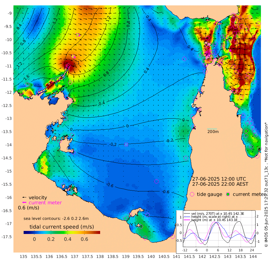 45cm/s 119T +3cm/s rms + 7cm/s -42T. ARA-GOC87 57m 12cm/s 155T +3cm/s rms + 2cm/s -2T. ARA-GOC87 60m 42cm/s 113T +2cm/s rms + 3cm/s 61T. ARA-GOC87 47m 53cm Daru 72cm Bobo Island 91cm Meer Island Barge 98cm Bramble Cay 81cm Unnamed Cay 90cm Pearce Cay 87cm Stephens Island 86cm Merrie England Shoals 64cm Mutacomal Reef 83cm Darnley Island Barge 99cm East Cay 68cm Yorke Island Barge 71cm Rennel Island 65cm Aureed Island 48cm Dungeness Reef 11cm Zagai Island 12cm Yam Island -15cm Dauan Island -16cm Saibai Island -18cm Phipi Reef 3cm Warrior Reef - West 6cm Mabuiag Island Barge 67cm Half Way Island 55cm Coconut Island 57cm Dugong Islet 33cm Poll Island 32cm Kirkcaldie Reef 9cm Suarji Island 24cm Sue Islet 98cm Hawkesbury Island 25cm Alert Patches 28cm Twin Island 73cm Badu Island 9cm St Pauls (Moa Island) 67cm Kubin (Moa Island) 28cm Ince Point 36cm Thursday Island 33cm Nardana Patches 56cm Turtle Head 70cm Round Island 92cm Goods Island 95cm Booby Island 97cm White Rocks Area 70cm Carpentaria 25cm Papou Point 117cm Bampfield Head 70cm Crab Island 88cm Red Wallis Island 75cm Packe Island 58cm Harrington Reef 79cm Herald Camp -19cm Sharp Point 53cm Red Island Point 40cm Possession Island 23cm Alpha Rock 40cm Frederick Point 67cm Wyborn Reef Light 59cm Tetley Island 80cm Triangle Reef 83cm Turtle Head Island 86cm Maclennan Cay 91cm Raine Island 75cm Mcsweeny Reef 78cm Collette Reef 81cm Shadwell Reef 89cm Hannibal Island 105cm Round Point 59cm Vrilya Point 91cm Cape Grenville 93cm Hicks Island 100cm Sir Charles Hardy Island 26cm Harvey Island 101cm Kay Reef 94cm Rocky Island 102cm Chapman Island 95cm Ham Reef 94cm Jubilee Reef 80cm Night Island 96cm Unnamed Reef No. 3 99cm Morris Island 93cm 1st 3 Mile Opening 94cm Creech Reef 88cm Fife Island 121cm Eden Reef 99cm Stanley Island 112cm Normanby River 206cm Yabooma Island 247cm Hutchison River 202cm Elcho Island 185cm North West Crocodile Island 159cm Cape Wessel 189cm Stevens Island 152cm Guluwuru Island 173cm Hopeful Bay 166cm Auster Point 166cm Two Island Bay 214cm Cadell Strait 148cm Mallison Island 129cm Melville Bay (Gove Harbour) 144cm Truant Island 81cm Cape Arnhem 25cm Cape Grey -2cm Hawk Island -66cm Milner Bay (Groote Eylandt) -79cm Cape Beatrice -152cm West Island -150cm Centre Island -156cm Mornington Island -155cm West Wellesley Islands -170cm Bountiful Island -199cm Albert River Mouth -219cm Sweers Island -200cm Karumba -107cm Nassau River Offshore -51cm Christmas Creek 14cm Archer River 33cm Boyd Point 39cm Weipa (Humbug Point) 32cm Pennefather River 49cm Cullen Point