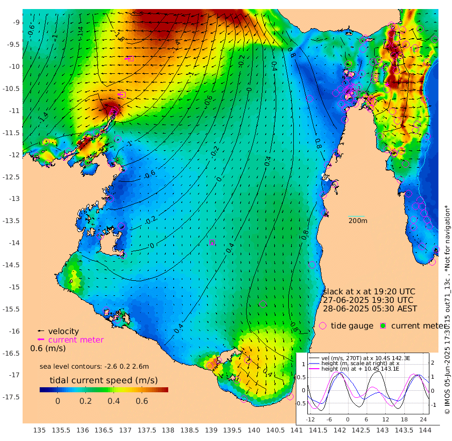 52cm/s -88T +3cm/s rms + 7cm/s -42T. ARA-GOC87 57m 23cm/s -173T +3cm/s rms + 2cm/s -2T. ARA-GOC87 60m 58cm/s -96T +2cm/s rms + 3cm/s 61T. ARA-GOC87 47m -18cm Daru -43cm Bobo Island -41cm Meer Island Barge -50cm Bramble Cay -39cm Unnamed Cay -50cm Pearce Cay -44cm Stephens Island -43cm Merrie England Shoals -25cm Mutacomal Reef -44cm Darnley Island Barge -42cm East Cay -34cm Yorke Island Barge -27cm Rennel Island -35cm Aureed Island -3cm Dungeness Reef 23cm Zagai Island 40cm Yam Island 91cm Dauan Island 80cm Saibai Island 93cm Phipi Reef 44cm Warrior Reef - West 80cm Mabuiag Island Barge -27cm Half Way Island -15cm Coconut Island -15cm Dugong Islet 9cm Poll Island 23cm Kirkcaldie Reef 40cm Suarji Island 16cm Sue Islet 108cm Hawkesbury Island 53cm Alert Patches 42cm Twin Island 106cm Badu Island 54cm St Pauls (Moa Island) 88cm Kubin (Moa Island) 69cm Ince Point 81cm Thursday Island 78cm Nardana Patches 95cm Turtle Head 93cm Round Island 106cm Goods Island 121cm Booby Island 104cm White Rocks Area 100cm Carpentaria 42cm Papou Point 100cm Bampfield Head 115cm Crab Island 116cm Red Wallis Island 103cm Packe Island -20cm Harrington Reef 130cm Herald Camp 25cm Sharp Point 91cm Red Island Point 59cm Possession Island 26cm Alpha Rock 15cm Frederick Point -31cm Wyborn Reef Light -21cm Tetley Island -29cm Triangle Reef -37cm Turtle Head Island -29cm Maclennan Cay -28cm Raine Island -37cm Mcsweeny Reef -36cm Collette Reef -30cm Shadwell Reef -47cm Hannibal Island -52cm Round Point 112cm Vrilya Point -38cm Cape Grenville -38cm Hicks Island -30cm Sir Charles Hardy Island -10cm Harvey Island -41cm Kay Reef -33cm Rocky Island -36cm Chapman Island -31cm Ham Reef -33cm Jubilee Reef -29cm Night Island -31cm Unnamed Reef No. 3 -37cm Morris Island -29cm 1st 3 Mile Opening -31cm Creech Reef -38cm Fife Island -53cm Eden Reef -37cm Stanley Island -52cm Normanby River -198cm Yabooma Island -239cm Hutchison River -206cm Elcho Island -188cm North West Crocodile Island -188cm Cape Wessel -215cm Stevens Island -185cm Guluwuru Island -191cm Hopeful Bay -190cm Auster Point -190cm Two Island Bay -233cm Cadell Strait -221cm Mallison Island -166cm Melville Bay (Gove Harbour) -180cm Truant Island -117cm Cape Arnhem -78cm Cape Grey -60cm Hawk Island -32cm Milner Bay (Groote Eylandt) -8cm Cape Beatrice 41cm West Island 42cm Centre Island 72cm Mornington Island 67cm West Wellesley Islands 79cm Bountiful Island 61cm Albert River Mouth 36cm Sweers Island 86cm Karumba 104cm Nassau River Offshore 114cm Christmas Creek 97cm Archer River 91cm Boyd Point 103cm Weipa (Humbug Point) 86cm Pennefather River 110cm Cullen Point