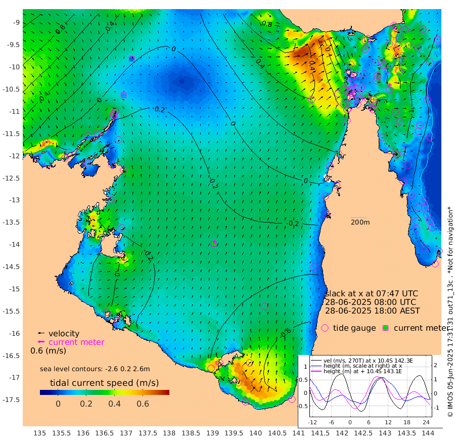 8cm/s -66T +3cm/s rms + 7cm/s -42T. ARA-GOC87 57m 33cm/s 15T +3cm/s rms + 2cm/s -2T. ARA-GOC87 60m 5cm/s -161T +2cm/s rms + 3cm/s 61T. ARA-GOC87 47m -119cm Daru -121cm Bobo Island -85cm Meer Island Barge -106cm Bramble Cay -112cm Unnamed Cay -128cm Pearce Cay -112cm Stephens Island -111cm Merrie England Shoals -117cm Mutacomal Reef -107cm Darnley Island Barge -96cm East Cay -110cm Yorke Island Barge -113cm Rennel Island -118cm Aureed Island -116cm Dungeness Reef -94cm Zagai Island -93cm Yam Island -96cm Dauan Island -79cm Saibai Island -114cm Phipi Reef -117cm Warrior Reef - West -42cm Mabuiag Island Barge -108cm Half Way Island -107cm Coconut Island -111cm Dugong Islet -99cm Poll Island -99cm Kirkcaldie Reef -87cm Suarji Island -88cm Sue Islet -20cm Hawkesbury Island -71cm Alert Patches -77cm Twin Island -32cm Badu Island -73cm St Pauls (Moa Island) -37cm Kubin (Moa Island) -55cm Ince Point -42cm Thursday Island -46cm Nardana Patches -45cm Turtle Head -15cm Round Island -20cm Goods Island 14cm Booby Island 3cm White Rocks Area 64cm Carpentaria -59cm Papou Point 32cm Bampfield Head 14cm Crab Island 3cm Red Wallis Island -39cm Packe Island -110cm Harrington Reef -10cm Herald Camp -18cm Sharp Point -39cm Red Island Point -41cm Possession Island -66cm Alpha Rock -91cm Frederick Point -105cm Wyborn Reef Light -101cm Tetley Island -83cm Triangle Reef -99cm Turtle Head Island -83cm Maclennan Cay -70cm Raine Island -106cm Mcsweeny Reef -102cm Collette Reef -82cm Shadwell Reef -111cm Hannibal Island -109cm Round Point 33cm Vrilya Point -93cm Cape Grenville -93cm Hicks Island -100cm Sir Charles Hardy Island -29cm Harvey Island -86cm Kay Reef -81cm Rocky Island -83cm Chapman Island -72cm Ham Reef -76cm Jubilee Reef -74cm Night Island -76cm Unnamed Reef No. 3 -81cm Morris Island -69cm 1st 3 Mile Opening -77cm Creech Reef -87cm Fife Island -93cm Eden Reef -79cm Stanley Island -91cm Normanby River -12cm Yabooma Island -29cm Hutchison River -6cm Elcho Island -7cm North West Crocodile Island -9cm Cape Wessel -14cm Stevens Island -47cm Guluwuru Island -12cm Hopeful Bay -6cm Auster Point -5cm Two Island Bay -58cm Cadell Strait -118cm Mallison Island -38cm Melville Bay (Gove Harbour) -34cm Truant Island -27cm Cape Arnhem -10cm Cape Grey -12cm Hawk Island 24cm Milner Bay (Groote Eylandt) 10cm Cape Beatrice 32cm West Island 36cm Centre Island -57cm Mornington Island -57cm West Wellesley Islands -81cm Bountiful Island -74cm Albert River Mouth -53cm Sweers Island -82cm Karumba -95cm Nassau River Offshore -94cm Christmas Creek -51cm Archer River -26cm Boyd Point -38cm Weipa (Humbug Point) 5cm Pennefather River 14cm Cullen Point