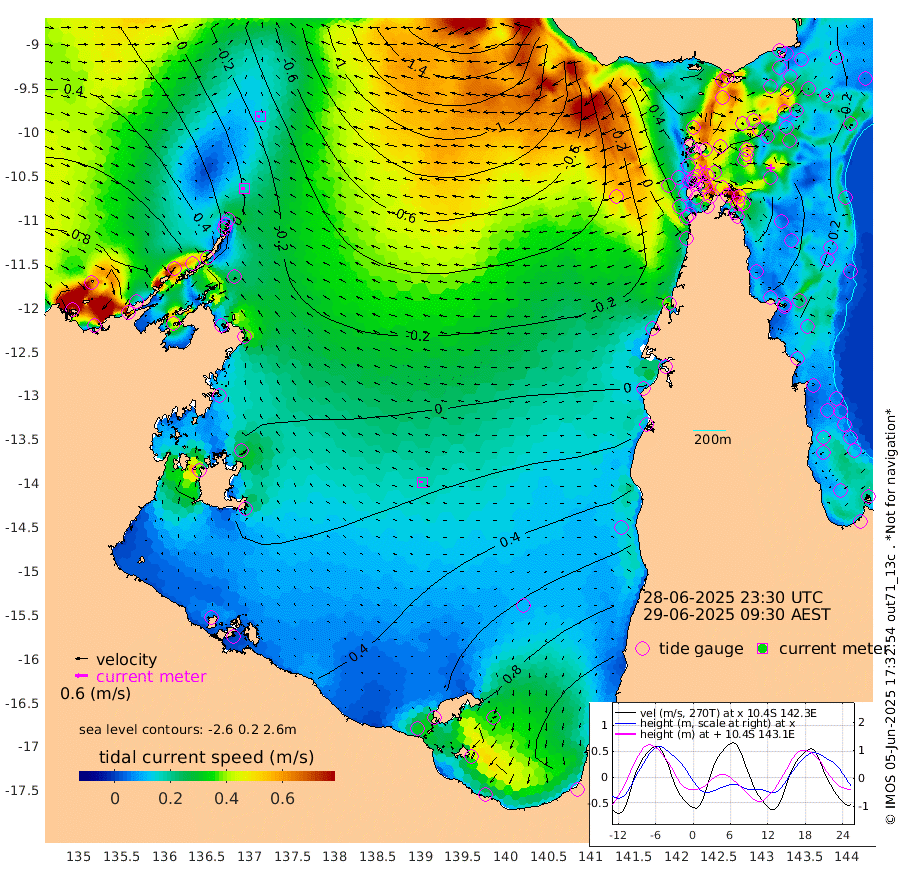 17cm/s -94T +3cm/s rms + 7cm/s -42T. ARA-GOC87 57m 18cm/s -88T +3cm/s rms + 2cm/s -2T. ARA-GOC87 60m 12cm/s -95T +2cm/s rms + 3cm/s 61T. ARA-GOC87 47m -53cm Daru -55cm Bobo Island -25cm Meer Island Barge -26cm Bramble Cay -44cm Unnamed Cay -44cm Pearce Cay -45cm Stephens Island -38cm Merrie England Shoals -47cm Mutacomal Reef -46cm Darnley Island Barge -23cm East Cay -54cm Yorke Island Barge -50cm Rennel Island -53cm Aureed Island -46cm Dungeness Reef -56cm Zagai Island -51cm Yam Island -25cm Dauan Island -37cm Saibai Island 3cm Phipi Reef -44cm Warrior Reef - West -34cm Mabuiag Island Barge -51cm Half Way Island -56cm Coconut Island -58cm Dugong Islet -54cm Poll Island -52cm Kirkcaldie Reef -52cm Suarji Island -63cm Sue Islet -9cm Hawkesbury Island -49cm Alert Patches -56cm Twin Island 1cm Badu Island -58cm St Pauls (Moa Island) -23cm Kubin (Moa Island) -42cm Ince Point -35cm Thursday Island -36cm Nardana Patches -15cm Turtle Head -20cm Round Island 1cm Goods Island -3cm Booby Island -1cm White Rocks Area -53cm Carpentaria -53cm Papou Point -40cm Bampfield Head 2cm Crab Island -6cm Red Wallis Island -8cm Packe Island -67cm Harrington Reef -17cm Herald Camp -16cm Sharp Point -8cm Red Island Point -43cm Possession Island -62cm Alpha Rock -61cm Frederick Point -63cm Wyborn Reef Light -65cm Tetley Island -26cm Triangle Reef -72cm Turtle Head Island -26cm Maclennan Cay -8cm Raine Island -48cm Mcsweeny Reef -38cm Collette Reef -21cm Shadwell Reef -38cm Hannibal Island -27cm Round Point -10cm Vrilya Point -27cm Cape Grenville -26cm Hicks Island -29cm Sir Charles Hardy Island -10cm Harvey Island -18cm Kay Reef -12cm Rocky Island -6cm Chapman Island -14cm Ham Reef -16cm Jubilee Reef -14cm Night Island -12cm Unnamed Reef No. 3 -13cm Morris Island -15cm 1st 3 Mile Opening -16cm Creech Reef -21cm Fife Island -7cm Eden Reef -14cm Stanley Island -15cm Normanby River 63cm Yabooma Island 70cm Hutchison River 67cm Elcho Island 74cm North West Crocodile Island -25cm Cape Wessel 34cm Stevens Island -39cm Guluwuru Island 41cm Hopeful Bay -1cm Auster Point -6cm Two Island Bay 24cm Cadell Strait -115cm Mallison Island -21cm Melville Bay (Gove Harbour) -37cm Truant Island -26cm Cape Arnhem -6cm Cape Grey 13cm Hawk Island 26cm Milner Bay (Groote Eylandt) 39cm Cape Beatrice 43cm West Island 46cm Centre Island 109cm Mornington Island 102cm West Wellesley Islands 156cm Bountiful Island 207cm Albert River Mouth 199cm Sweers Island 204cm Karumba 114cm Nassau River Offshore 79cm Christmas Creek 48cm Archer River 9cm Boyd Point 34cm Weipa (Humbug Point) 7cm Pennefather River -5cm Cullen Point