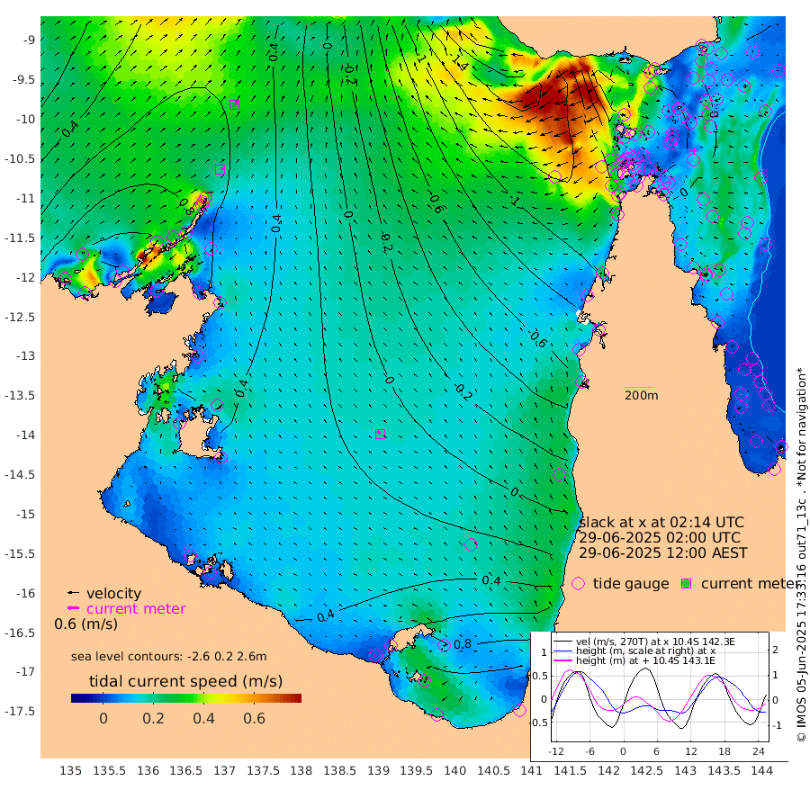 20cm/s 69T +3cm/s rms + 7cm/s -42T. ARA-GOC87 57m 19cm/s -49T +3cm/s rms + 2cm/s -2T. ARA-GOC87 60m 29cm/s 59T +2cm/s rms + 3cm/s 61T. ARA-GOC87 47m -4cm Daru 8cm Bobo Island 6cm Meer Island Barge 14cm Bramble Cay 1cm Unnamed Cay 14cm Pearce Cay 4cm Stephens Island 6cm Merrie England Shoals -4cm Mutacomal Reef 5cm Darnley Island Barge 6cm East Cay -1cm Yorke Island Barge -6cm Rennel Island 6cm Aureed Island -11cm Dungeness Reef -26cm Zagai Island -43cm Yam Island -46cm Dauan Island -51cm Saibai Island -26cm Phipi Reef -23cm Warrior Reef - West -78cm Mabuiag Island Barge -9cm Half Way Island -14cm Coconut Island -18cm Dugong Islet -26cm Poll Island -38cm Kirkcaldie Reef -42cm Suarji Island -35cm Sue Islet -150cm Hawkesbury Island -66cm Alert Patches -61cm Twin Island -117cm Badu Island -65cm St Pauls (Moa Island) -117cm Kubin (Moa Island) -83cm Ince Point -99cm Thursday Island -94cm Nardana Patches -106cm Turtle Head -131cm Round Island -133cm Goods Island -163cm Booby Island -145cm White Rocks Area -180cm Carpentaria -66cm Papou Point -187cm Bampfield Head -141cm Crab Island -153cm Red Wallis Island -123cm Packe Island -19cm Harrington Reef -169cm Herald Camp -17cm Sharp Point -101cm Red Island Point -88cm Possession Island -53cm Alpha Rock -42cm Frederick Point -13cm Wyborn Reef Light -20cm Tetley Island -1cm Triangle Reef -25cm Turtle Head Island -5cm Maclennan Cay 1cm Raine Island 1cm Mcsweeny Reef 4cm Collette Reef 2cm Shadwell Reef 10cm Hannibal Island 12cm Round Point -146cm Vrilya Point 1cm Cape Grenville 2cm Hicks Island -7cm Sir Charles Hardy Island -1cm Harvey Island 3cm Kay Reef 4cm Rocky Island 9cm Chapman Island -2cm Ham Reef 1cm Jubilee Reef 4cm Night Island 1cm Unnamed Reef No. 3 5cm Morris Island -4cm 1st 3 Mile Opening -1cm Creech Reef 12cm Fife Island 15cm Eden Reef 2cm Stanley Island 11cm Normanby River 98cm Yabooma Island 125cm Hutchison River 110cm Elcho Island 105cm North West Crocodile Island 68cm Cape Wessel 109cm Stevens Island 81cm Guluwuru Island 100cm Hopeful Bay 77cm Auster Point 71cm Two Island Bay 126cm Cadell Strait 115cm Mallison Island 83cm Melville Bay (Gove Harbour) 77cm Truant Island 59cm Cape Arnhem 58cm Cape Grey 66cm Hawk Island 68cm Milner Bay (Groote Eylandt) 67cm Cape Beatrice 55cm West Island 52cm Centre Island 108cm Mornington Island 108cm West Wellesley Islands 146cm Bountiful Island 206cm Albert River Mouth 225cm Sweers Island 184cm Karumba 74cm Nassau River Offshore 15cm Christmas Creek -39cm Archer River -77cm Boyd Point -70cm Weipa (Humbug Point) -87cm Pennefather River -130cm Cullen Point