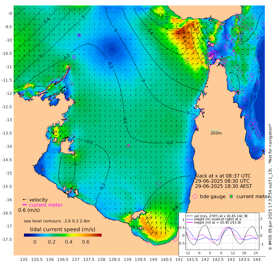 11cm/s -65T +3cm/s rms + 7cm/s -42T. ARA-GOC87 57m 31cm/s 15T +3cm/s rms + 2cm/s -2T. ARA-GOC87 60m 6cm/s -123T +2cm/s rms + 3cm/s 61T. ARA-GOC87 47m -91cm Daru -92cm Bobo Island -65cm Meer Island Barge -82cm Bramble Cay -83cm Unnamed Cay -99cm Pearce Cay -84cm Stephens Island -83cm Merrie England Shoals -88cm Mutacomal Reef -80cm Darnley Island Barge -75cm East Cay -82cm Yorke Island Barge -84cm Rennel Island -88cm Aureed Island -87cm Dungeness Reef -73cm Zagai Island -73cm Yam Island -88cm Dauan Island -73cm Saibai Island -100cm Phipi Reef -96cm Warrior Reef - West -38cm Mabuiag Island Barge -78cm Half Way Island -79cm Coconut Island -80cm Dugong Islet -75cm Poll Island -73cm Kirkcaldie Reef -62cm Suarji Island -66cm Sue Islet -27cm Hawkesbury Island -52cm Alert Patches -57cm Twin Island -36cm Badu Island -54cm St Pauls (Moa Island) -34cm Kubin (Moa Island) -43cm Ince Point -33cm Thursday Island -36cm Nardana Patches -39cm Turtle Head -15cm Round Island -22cm Goods Island 7cm Booby Island 0cm White Rocks Area 60cm Carpentaria -43cm Papou Point 28cm Bampfield Head 7cm Crab Island -3cm Red Wallis Island -36cm Packe Island -77cm Harrington Reef -13cm Herald Camp -13cm Sharp Point -37cm Red Island Point -29cm Possession Island -48cm Alpha Rock -67cm Frederick Point -79cm Wyborn Reef Light -76cm Tetley Island -66cm Triangle Reef -71cm Turtle Head Island -63cm Maclennan Cay -56cm Raine Island -80cm Mcsweeny Reef -78cm Collette Reef -64cm Shadwell Reef -83cm Hannibal Island -85cm Round Point 25cm Vrilya Point -69cm Cape Grenville -72cm Hicks Island -77cm Sir Charles Hardy Island -21cm Harvey Island -66cm Kay Reef -64cm Rocky Island -69cm Chapman Island -58cm Ham Reef -60cm Jubilee Reef -57cm Night Island -61cm Unnamed Reef No. 3 -63cm Morris Island -51cm 1st 3 Mile Opening -60cm Creech Reef -71cm Fife Island -73cm Eden Reef -61cm Stanley Island -71cm Normanby River -38cm Yabooma Island -53cm Hutchison River -30cm Elcho Island -32cm North West Crocodile Island -24cm Cape Wessel -37cm Stevens Island -52cm Guluwuru Island -34cm Hopeful Bay -23cm Auster Point -24cm Two Island Bay -80cm Cadell Strait -128cm Mallison Island -45cm Melville Bay (Gove Harbour) -43cm Truant Island -30cm Cape Arnhem -10cm Cape Grey -12cm Hawk Island 27cm Milner Bay (Groote Eylandt) 15cm Cape Beatrice 42cm West Island 47cm Centre Island -42cm Mornington Island -40cm West Wellesley Islands -66cm Bountiful Island -61cm Albert River Mouth -42cm Sweers Island -70cm Karumba -82cm Nassau River Offshore -83cm Christmas Creek -49cm Archer River -25cm Boyd Point -37cm Weipa (Humbug Point) 2cm Pennefather River 8cm Cullen Point