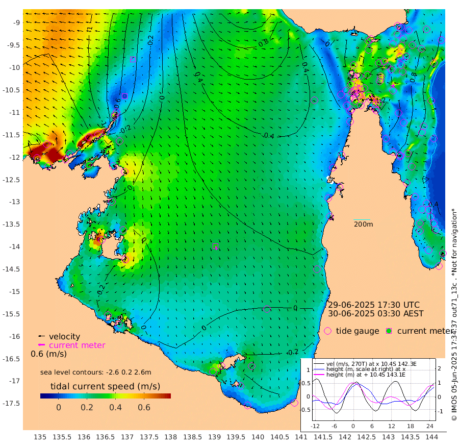 2cm/s -95T +3cm/s rms + 7cm/s -42T. ARA-GOC87 57m 35cm/s 164T +3cm/s rms + 2cm/s -2T. ARA-GOC87 60m 13cm/s -84T +2cm/s rms + 3cm/s 61T. ARA-GOC87 47m 111cm Daru 105cm Bobo Island 60cm Meer Island Barge 70cm Bramble Cay 90cm Unnamed Cay 97cm Pearce Cay 92cm Stephens Island 84cm Merrie England Shoals 101cm Mutacomal Reef 89cm Darnley Island Barge 68cm East Cay 100cm Yorke Island Barge 100cm Rennel Island 103cm Aureed Island 105cm Dungeness Reef 109cm Zagai Island 115cm Yam Island 112cm Dauan Island 110cm Saibai Island 99cm Phipi Reef 125cm Warrior Reef - West 82cm Mabuiag Island Barge 99cm Half Way Island 104cm Coconut Island 110cm Dugong Islet 106cm Poll Island 112cm Kirkcaldie Reef 102cm Suarji Island 111cm Sue Islet 66cm Hawkesbury Island 98cm Alert Patches 105cm Twin Island 57cm Badu Island 108cm St Pauls (Moa Island) 77cm Kubin (Moa Island) 91cm Ince Point 83cm Thursday Island 84cm Nardana Patches 73cm Turtle Head 62cm Round Island 50cm Goods Island 39cm Booby Island 35cm White Rocks Area 42cm Carpentaria 94cm Papou Point 49cm Bampfield Head 35cm Crab Island 49cm Red Wallis Island 72cm Packe Island 114cm Harrington Reef 78cm Herald Camp 33cm Sharp Point 69cm Red Island Point 80cm Possession Island 98cm Alpha Rock 110cm Frederick Point 104cm Wyborn Reef Light 107cm Tetley Island 64cm Triangle Reef 105cm Turtle Head Island 66cm Maclennan Cay 42cm Raine Island 91cm Mcsweeny Reef 82cm Collette Reef 59cm Shadwell Reef 83cm Hannibal Island 73cm Round Point 34cm Vrilya Point 68cm Cape Grenville 68cm Hicks Island 79cm Sir Charles Hardy Island 24cm Harvey Island 56cm Kay Reef 51cm Rocky Island 47cm Chapman Island 50cm Ham Reef 51cm Jubilee Reef 50cm Night Island 50cm Unnamed Reef No. 3 50cm Morris Island 44cm 1st 3 Mile Opening 52cm Creech Reef 63cm Fife Island 47cm Eden Reef 51cm Stanley Island 55cm Normanby River -124cm Yabooma Island -139cm Hutchison River -137cm Elcho Island -132cm North West Crocodile Island -45cm Cape Wessel -106cm Stevens Island -11cm Guluwuru Island -101cm Hopeful Bay -72cm Auster Point -61cm Two Island Bay -69cm Cadell Strait 102cm Mallison Island -25cm Melville Bay (Gove Harbour) -19cm Truant Island -9cm Cape Arnhem -26cm Cape Grey -32cm Hawk Island -60cm Milner Bay (Groote Eylandt) -52cm Cape Beatrice -52cm West Island -57cm Centre Island -35cm Mornington Island -34cm West Wellesley Islands -59cm Bountiful Island -121cm Albert River Mouth -138cm Sweers Island -96cm Karumba 6cm Nassau River Offshore 42cm Christmas Creek 34cm Archer River 48cm Boyd Point 38cm Weipa (Humbug Point) 26cm Pennefather River 44cm Cullen Point