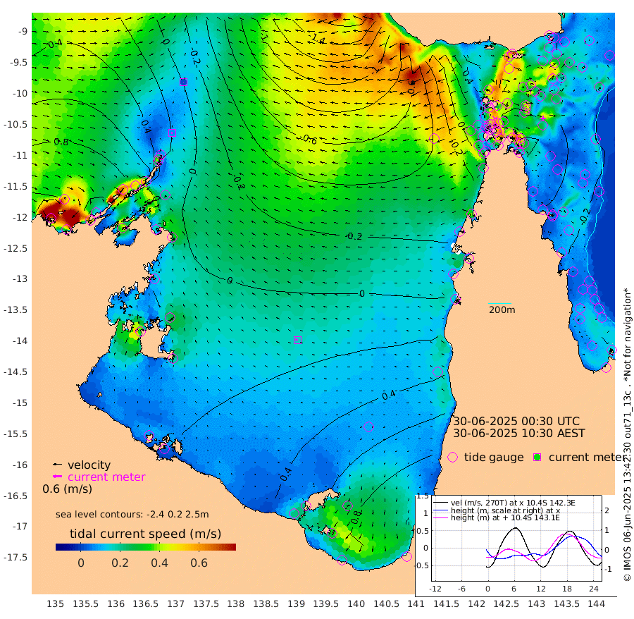 7cm/s -114T +3cm/s rms + 7cm/s -42T. ARA-GOC87 57m 16cm/s -79T +3cm/s rms + 2cm/s -2T. ARA-GOC87 60m 2cm/s -117T +2cm/s rms + 3cm/s 61T. ARA-GOC87 47m -47cm Daru -49cm Bobo Island -28cm Meer Island Barge -27cm Bramble Cay -41cm Unnamed Cay -37cm Pearce Cay -44cm Stephens Island -36cm Merrie England Shoals -43cm Mutacomal Reef -45cm Darnley Island Barge -28cm East Cay -50cm Yorke Island Barge -46cm Rennel Island -48cm Aureed Island -40cm Dungeness Reef -47cm Zagai Island -46cm Yam Island -18cm Dauan Island -31cm Saibai Island 7cm Phipi Reef -38cm Warrior Reef - West -29cm Mabuiag Island Barge -47cm Half Way Island -49cm Coconut Island -53cm Dugong Islet -47cm Poll Island -48cm Kirkcaldie Reef -47cm Suarji Island -55cm Sue Islet -13cm Hawkesbury Island -43cm Alert Patches -49cm Twin Island 0cm Badu Island -50cm St Pauls (Moa Island) -26cm Kubin (Moa Island) -38cm Ince Point -34cm Thursday Island -34cm Nardana Patches -18cm Turtle Head -26cm Round Island -7cm Goods Island -14cm Booby Island -10cm White Rocks Area -65cm Carpentaria -47cm Papou Point -52cm Bampfield Head -7cm Crab Island -16cm Red Wallis Island -16cm Packe Island -61cm Harrington Reef -33cm Herald Camp -14cm Sharp Point -11cm Red Island Point -42cm Possession Island -55cm Alpha Rock -54cm Frederick Point -55cm Wyborn Reef Light -57cm Tetley Island -27cm Triangle Reef -61cm Turtle Head Island -31cm Maclennan Cay -14cm Raine Island -45cm Mcsweeny Reef -37cm Collette Reef -24cm Shadwell Reef -37cm Hannibal Island -28cm Round Point -17cm Vrilya Point -31cm Cape Grenville -30cm Hicks Island -36cm Sir Charles Hardy Island -12cm Harvey Island -25cm Kay Reef -19cm Rocky Island -12cm Chapman Island -22cm Ham Reef -22cm Jubilee Reef -20cm Night Island -19cm Unnamed Reef No. 3 -20cm Morris Island -21cm 1st 3 Mile Opening -23cm Creech Reef -26cm Fife Island -15cm Eden Reef -22cm Stanley Island -22cm Normanby River 83cm Yabooma Island 94cm Hutchison River 87cm Elcho Island 92cm North West Crocodile Island -3cm Cape Wessel 60cm Stevens Island -17cm Guluwuru Island 61cm Hopeful Bay 23cm Auster Point 17cm Two Island Bay 56cm Cadell Strait -79cm Mallison Island 0cm Melville Bay (Gove Harbour) -13cm Truant Island -11cm Cape Arnhem 5cm Cape Grey 20cm Hawk Island 28cm Milner Bay (Groote Eylandt) 37cm Cape Beatrice 35cm West Island 37cm Centre Island 93cm Mornington Island 87cm West Wellesley Islands 135cm Bountiful Island 188cm Albert River Mouth 186cm Sweers Island 183cm Karumba 95cm Nassau River Offshore 60cm Christmas Creek 34cm Archer River -3cm Boyd Point 19cm Weipa (Humbug Point) 3cm Pennefather River -17cm Cullen Point
