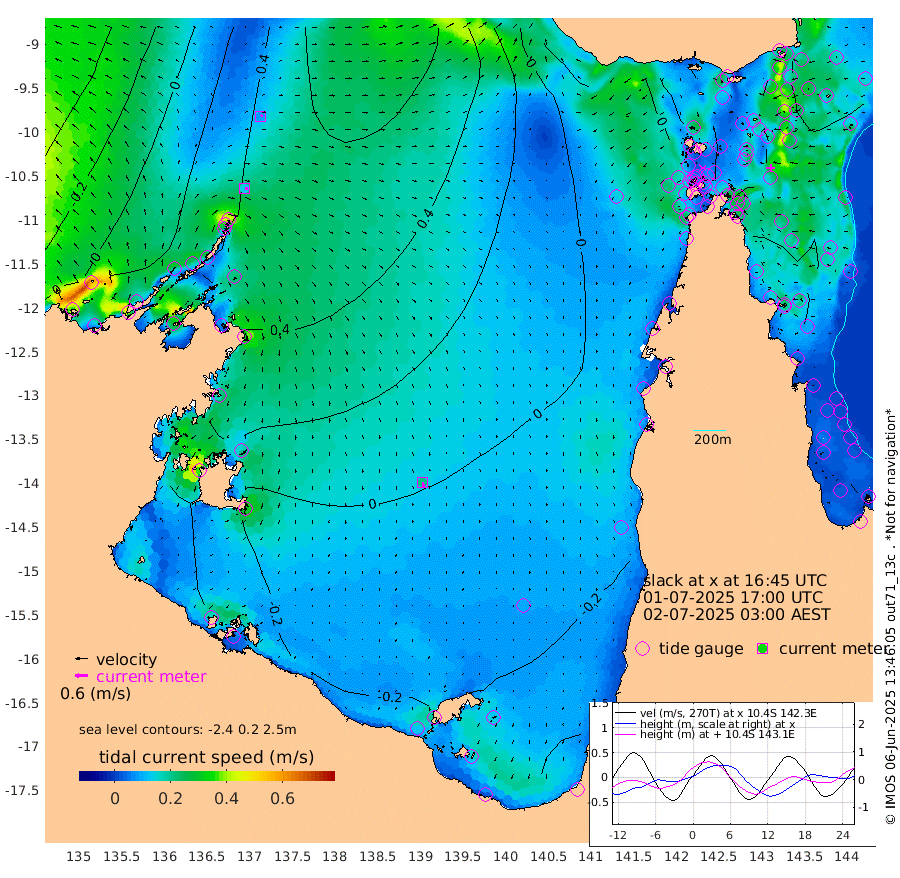 14cm/s 94T +3cm/s rms + 7cm/s -42T. ARA-GOC87 57m 22cm/s 170T +3cm/s rms + 2cm/s -2T. ARA-GOC87 60m 9cm/s 67T +2cm/s rms + 3cm/s 61T. ARA-GOC87 47m 66cm Daru 66cm Bobo Island 52cm Meer Island Barge 60cm Bramble Cay 62cm Unnamed Cay 62cm Pearce Cay 62cm Stephens Island 58cm Merrie England Shoals 64cm Mutacomal Reef 62cm Darnley Island Barge 60cm East Cay 63cm Yorke Island Barge 62cm Rennel Island 62cm Aureed Island 54cm Dungeness Reef 58cm Zagai Island 58cm Yam Island 67cm Dauan Island 68cm Saibai Island 45cm Phipi Reef 70cm Warrior Reef - West 38cm Mabuiag Island Barge 53cm Half Way Island 56cm Coconut Island 57cm Dugong Islet 52cm Poll Island 47cm Kirkcaldie Reef 41cm Suarji Island 54cm Sue Islet 31cm Hawkesbury Island 34cm Alert Patches 42cm Twin Island 24cm Badu Island 41cm St Pauls (Moa Island) 36cm Kubin (Moa Island) 34cm Ince Point 27cm Thursday Island 29cm Nardana Patches 28cm Turtle Head 31cm Round Island 19cm Goods Island 5cm Booby Island 7cm White Rocks Area -3cm Carpentaria 36cm Papou Point 28cm Bampfield Head -1cm Crab Island 14cm Red Wallis Island 33cm Packe Island 54cm Harrington Reef 42cm Herald Camp 7cm Sharp Point 19cm Red Island Point 28cm Possession Island 49cm Alpha Rock 51cm Frederick Point 67cm Wyborn Reef Light 66cm Tetley Island 55cm Triangle Reef 53cm Turtle Head Island 53cm Maclennan Cay 45cm Raine Island 61cm Mcsweeny Reef 59cm Collette Reef 52cm Shadwell Reef 61cm Hannibal Island 63cm Round Point -14cm Vrilya Point 55cm Cape Grenville 57cm Hicks Island 72cm Sir Charles Hardy Island 17cm Harvey Island 54cm Kay Reef 53cm Rocky Island 57cm Chapman Island 54cm Ham Reef 51cm Jubilee Reef 45cm Night Island 53cm Unnamed Reef No. 3 51cm Morris Island 43cm 1st 3 Mile Opening 49cm Creech Reef 62cm Fife Island 56cm Eden Reef 50cm Stanley Island 57cm Normanby River 41cm Yabooma Island 47cm Hutchison River 29cm Elcho Island 23cm North West Crocodile Island 67cm Cape Wessel 50cm Stevens Island 85cm Guluwuru Island 46cm Hopeful Bay 49cm Auster Point 57cm Two Island Bay 77cm Cadell Strait 214cm Mallison Island 69cm Melville Bay (Gove Harbour) 78cm Truant Island 51cm Cape Arnhem 12cm Cape Grey 2cm Hawk Island -41cm Milner Bay (Groote Eylandt) -44cm Cape Beatrice -78cm West Island -85cm Centre Island -55cm Mornington Island -53cm West Wellesley Islands -58cm Bountiful Island -93cm Albert River Mouth -109cm Sweers Island -87cm Karumba -24cm Nassau River Offshore 6cm Christmas Creek 6cm Archer River 17cm Boyd Point 16cm Weipa (Humbug Point) -16cm Pennefather River 8cm Cullen Point
