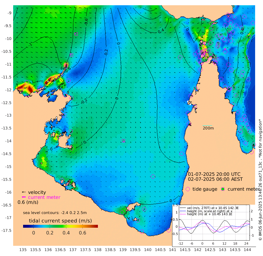 20cm/s -73T +3cm/s rms + 7cm/s -42T. ARA-GOC87 57m 21cm/s 167T +3cm/s rms + 2cm/s -2T. ARA-GOC87 60m 26cm/s -82T +2cm/s rms + 3cm/s 61T. ARA-GOC87 47m 48cm Daru 45cm Bobo Island 25cm Meer Island Barge 29cm Bramble Cay 38cm Unnamed Cay 37cm Pearce Cay 41cm Stephens Island 38cm Merrie England Shoals 45cm Mutacomal Reef 39cm Darnley Island Barge 32cm East Cay 43cm Yorke Island Barge 43cm Rennel Island 44cm Aureed Island 43cm Dungeness Reef 40cm Zagai Island 52cm Yam Island 31cm Dauan Island 36cm Saibai Island 31cm Phipi Reef 50cm Warrior Reef - West 20cm Mabuiag Island Barge 47cm Half Way Island 42cm Coconut Island 51cm Dugong Islet 43cm Poll Island 54cm Kirkcaldie Reef 35cm Suarji Island 46cm Sue Islet 16cm Hawkesbury Island 33cm Alert Patches 41cm Twin Island -2cm Badu Island 40cm St Pauls (Moa Island) 24cm Kubin (Moa Island) 32cm Ince Point 27cm Thursday Island 27cm Nardana Patches 17cm Turtle Head 18cm Round Island 3cm Goods Island 1cm Booby Island -5cm White Rocks Area 19cm Carpentaria 37cm Papou Point 2cm Bampfield Head 8cm Crab Island 12cm Red Wallis Island 28cm Packe Island 53cm Harrington Reef 40cm Herald Camp 18cm Sharp Point 26cm Red Island Point 29cm Possession Island 41cm Alpha Rock 47cm Frederick Point 40cm Wyborn Reef Light 42cm Tetley Island 25cm Triangle Reef 38cm Turtle Head Island 31cm Maclennan Cay 14cm Raine Island 38cm Mcsweeny Reef 34cm Collette Reef 23cm Shadwell Reef 35cm Hannibal Island 30cm Round Point 14cm Vrilya Point 34cm Cape Grenville 31cm Hicks Island 37cm Sir Charles Hardy Island 13cm Harvey Island 27cm Kay Reef 22cm Rocky Island 16cm Chapman Island 21cm Ham Reef 20cm Jubilee Reef 24cm Night Island 22cm Unnamed Reef No. 3 21cm Morris Island 12cm 1st 3 Mile Opening 22cm Creech Reef 27cm Fife Island 18cm Eden Reef 23cm Stanley Island 27cm Normanby River -140cm Yabooma Island -163cm Hutchison River -146cm Elcho Island -135cm North West Crocodile Island -80cm Cape Wessel -129cm Stevens Island -67cm Guluwuru Island -115cm Hopeful Bay -101cm Auster Point -86cm Two Island Bay -116cm Cadell Strait -5cm Mallison Island -70cm Melville Bay (Gove Harbour) -72cm Truant Island -45cm Cape Arnhem -41cm Cape Grey -30cm Hawk Island -31cm Milner Bay (Groote Eylandt) -19cm Cape Beatrice 5cm West Island 4cm Centre Island 16cm Mornington Island 9cm West Wellesley Islands -4cm Bountiful Island -38cm Albert River Mouth -49cm Sweers Island -14cm Karumba 35cm Nassau River Offshore 46cm Christmas Creek 24cm Archer River 25cm Boyd Point 18cm Weipa (Humbug Point) 12cm Pennefather River 25cm Cullen Point