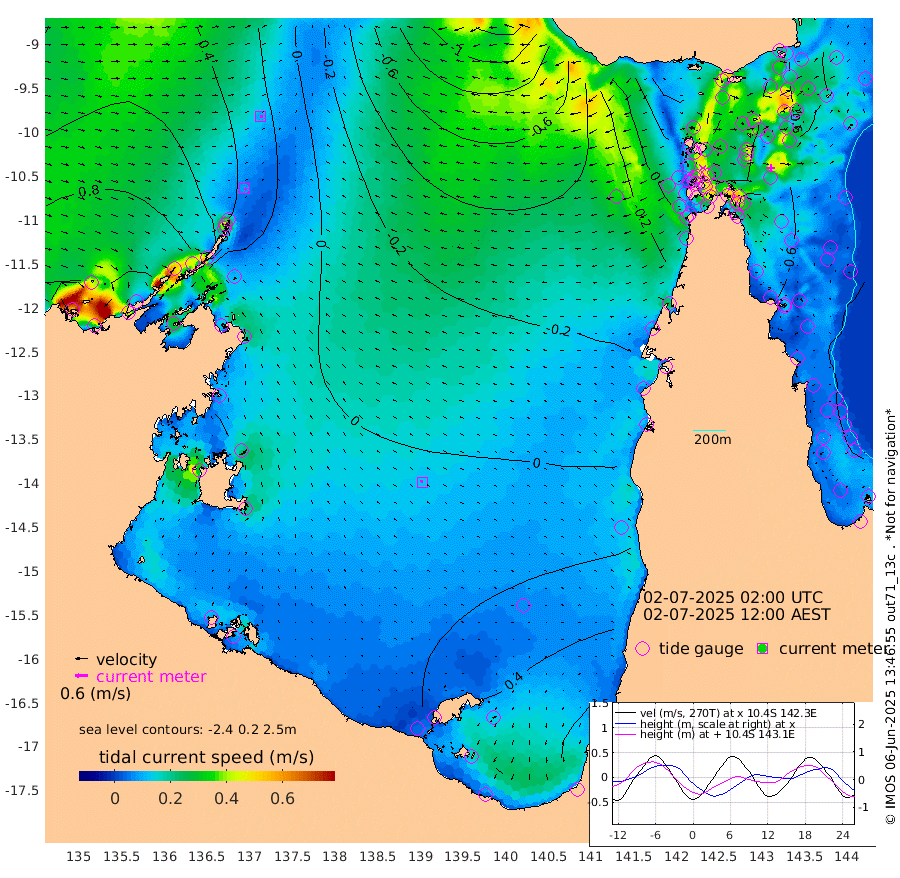 8cm/s 130T +3cm/s rms + 7cm/s -42T. ARA-GOC87 57m 12cm/s -59T +3cm/s rms + 2cm/s -2T. ARA-GOC87 60m 10cm/s 100T +2cm/s rms + 3cm/s 61T. ARA-GOC87 47m -53cm Daru -56cm Bobo Island -44cm Meer Island Barge -45cm Bramble Cay -54cm Unnamed Cay -47cm Pearce Cay -57cm Stephens Island -52cm Merrie England Shoals -53cm Mutacomal Reef -56cm Darnley Island Barge -48cm East Cay -57cm Yorke Island Barge -56cm Rennel Island -57cm Aureed Island -46cm Dungeness Reef -42cm Zagai Island -44cm Yam Island -6cm Dauan Island -19cm Saibai Island 7cm Phipi Reef -35cm Warrior Reef - West -14cm Mabuiag Island Barge -56cm Half Way Island -54cm Coconut Island -60cm Dugong Islet -46cm Poll Island -50cm Kirkcaldie Reef -45cm Suarji Island -49cm Sue Islet -2cm Hawkesbury Island -36cm Alert Patches -43cm Twin Island 9cm Badu Island -38cm St Pauls (Moa Island) -18cm Kubin (Moa Island) -30cm Ince Point -25cm Thursday Island -26cm Nardana Patches -15cm Turtle Head -19cm Round Island -5cm Goods Island -9cm Booby Island -10cm White Rocks Area -54cm Carpentaria -38cm Papou Point -43cm Bampfield Head -2cm Crab Island -14cm Red Wallis Island -17cm Packe Island -66cm Harrington Reef -31cm Herald Camp -10cm Sharp Point -9cm Red Island Point -33cm Possession Island -49cm Alpha Rock -52cm Frederick Point -56cm Wyborn Reef Light -56cm Tetley Island -40cm Triangle Reef -55cm Turtle Head Island -49cm Maclennan Cay -33cm Raine Island -54cm Mcsweeny Reef -49cm Collette Reef -39cm Shadwell Reef -52cm Hannibal Island -46cm Round Point -7cm Vrilya Point -51cm Cape Grenville -47cm Hicks Island -59cm Sir Charles Hardy Island -17cm Harvey Island -47cm Kay Reef -40cm Rocky Island -34cm Chapman Island -41cm Ham Reef -40cm Jubilee Reef -38cm Night Island -40cm Unnamed Reef No. 3 -42cm Morris Island -39cm 1st 3 Mile Opening -42cm Creech Reef -42cm Fife Island -42cm Eden Reef -43cm Stanley Island -47cm Normanby River 96cm Yabooma Island 102cm Hutchison River 94cm Elcho Island 98cm North West Crocodile Island 17cm Cape Wessel 79cm Stevens Island 3cm Guluwuru Island 73cm Hopeful Bay 45cm Auster Point 41cm Two Island Bay 81cm Cadell Strait -43cm Mallison Island 18cm Melville Bay (Gove Harbour) 10cm Truant Island 4cm Cape Arnhem 12cm Cape Grey 20cm Hawk Island 23cm Milner Bay (Groote Eylandt) 24cm Cape Beatrice 15cm West Island 16cm Centre Island 49cm Mornington Island 44cm West Wellesley Islands 76cm Bountiful Island 120cm Albert River Mouth 131cm Sweers Island 118cm Karumba 49cm Nassau River Offshore 22cm Christmas Creek 14cm Archer River -11cm Boyd Point 3cm Weipa (Humbug Point) 7cm Pennefather River -15cm Cullen Point