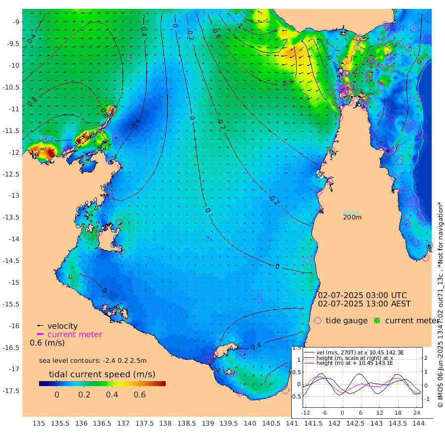 18cm/s 102T +3cm/s rms + 7cm/s -42T. ARA-GOC87 57m 12cm/s -51T +3cm/s rms + 2cm/s -2T. ARA-GOC87 60m 21cm/s 84T +2cm/s rms + 3cm/s 61T. ARA-GOC87 47m -48cm Daru -47cm Bobo Island -33cm Meer Island Barge -35cm Bramble Cay -49cm Unnamed Cay -40cm Pearce Cay -49cm Stephens Island -46cm Merrie England Shoals -52cm Mutacomal Reef -46cm Darnley Island Barge -38cm East Cay -49cm Yorke Island Barge -53cm Rennel Island -49cm Aureed Island -49cm Dungeness Reef -44cm Zagai Island -56cm Yam Island -18cm Dauan Island -26cm Saibai Island -10cm Phipi Reef -40cm Warrior Reef - West -33cm Mabuiag Island Barge -56cm Half Way Island -52cm Coconut Island -62cm Dugong Islet -52cm Poll Island -61cm Kirkcaldie Reef -57cm Suarji Island -53cm Sue Islet -47cm Hawkesbury Island -53cm Alert Patches -59cm Twin Island -26cm Badu Island -56cm St Pauls (Moa Island) -53cm Kubin (Moa Island) -53cm Ince Point -53cm Thursday Island -52cm Nardana Patches -46cm Turtle Head -56cm Round Island -45cm Goods Island -54cm Booby Island -52cm White Rocks Area -88cm Carpentaria -55cm Papou Point -83cm Bampfield Head -41cm Crab Island -57cm Red Wallis Island -55cm Packe Island -67cm Harrington Reef -78cm Herald Camp -16cm Sharp Point -40cm Red Island Point -57cm Possession Island -59cm Alpha Rock -60cm Frederick Point -53cm Wyborn Reef Light -54cm Tetley Island -32cm Triangle Reef -56cm Turtle Head Island -42cm Maclennan Cay -24cm Raine Island -46cm Mcsweeny Reef -40cm Collette Reef -29cm Shadwell Reef -42cm Hannibal Island -36cm Round Point -44cm Vrilya Point -44cm Cape Grenville -39cm Hicks Island -50cm Sir Charles Hardy Island -15cm Harvey Island -38cm Kay Reef -30cm Rocky Island -22cm Chapman Island -30cm Ham Reef -30cm Jubilee Reef -29cm Night Island -29cm Unnamed Reef No. 3 -31cm Morris Island -31cm 1st 3 Mile Opening -33cm Creech Reef -26cm Fife Island -29cm Eden Reef -34cm Stanley Island -36cm Normanby River 108cm Yabooma Island 124cm Hutchison River 111cm Elcho Island 110cm North West Crocodile Island 50cm Cape Wessel 105cm Stevens Island 47cm Guluwuru Island 96cm Hopeful Bay 71cm Auster Point 64cm Two Island Bay 117cm Cadell Strait 57cm Mallison Island 56cm Melville Bay (Gove Harbour) 51cm Truant Island 35cm Cape Arnhem 33cm Cape Grey 36cm Hawk Island 32cm Milner Bay (Groote Eylandt) 28cm Cape Beatrice 10cm West Island 8cm Centre Island 45cm Mornington Island 42cm West Wellesley Islands 72cm Bountiful Island 117cm Albert River Mouth 135cm Sweers Island 109cm Karumba 37cm Nassau River Offshore 7cm Christmas Creek -4cm Archer River -30cm Boyd Point -20cm Weipa (Humbug Point) -17cm Pennefather River -49cm Cullen Point