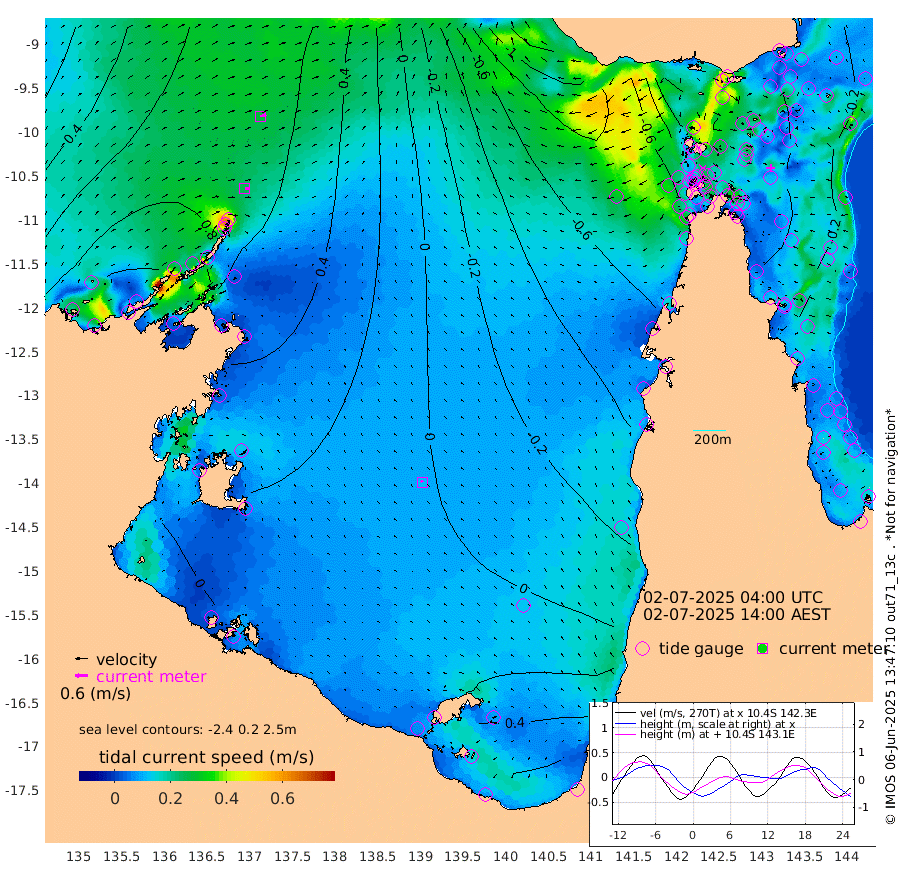 25cm/s 92T +3cm/s rms + 7cm/s -42T. ARA-GOC87 57m 11cm/s -39T +3cm/s rms + 2cm/s -2T. ARA-GOC87 60m 28cm/s 78T +2cm/s rms + 3cm/s 61T. ARA-GOC87 47m -39cm Daru -32cm Bobo Island -19cm Meer Island Barge -22cm Bramble Cay -38cm Unnamed Cay -28cm Pearce Cay -35cm Stephens Island -35cm Merrie England Shoals -45cm Mutacomal Reef -30cm Darnley Island Barge -23cm East Cay -35cm Yorke Island Barge -44cm Rennel Island -35cm Aureed Island -46cm Dungeness Reef -43cm Zagai Island -63cm Yam Island -34cm Dauan Island -35cm Saibai Island -29cm Phipi Reef -42cm Warrior Reef - West -52cm Mabuiag Island Barge -49cm Half Way Island -45cm Coconut Island -57cm Dugong Islet -53cm Poll Island -64cm Kirkcaldie Reef -63cm Suarji Island -51cm Sue Islet -92cm Hawkesbury Island -66cm Alert Patches -69cm Twin Island -63cm Badu Island -68cm St Pauls (Moa Island) -85cm Kubin (Moa Island) -72cm Ince Point -78cm Thursday Island -75cm Nardana Patches -76cm Turtle Head -92cm Round Island -84cm Goods Island -97cm Booby Island -94cm White Rocks Area -111cm Carpentaria -66cm Papou Point -118cm Bampfield Head -77cm Crab Island -97cm Red Wallis Island -91cm Packe Island -59cm Harrington Reef -121cm Herald Camp -19cm Sharp Point -68cm Red Island Point -76cm Possession Island -64cm Alpha Rock -61cm Frederick Point -44cm Wyborn Reef Light -48cm Tetley Island -21cm Triangle Reef -51cm Turtle Head Island -31cm Maclennan Cay -13cm Raine Island -33cm Mcsweeny Reef -27cm Collette Reef -17cm Shadwell Reef -28cm Hannibal Island -22cm Round Point -77cm Vrilya Point -32cm Cape Grenville -27cm Hicks Island -36cm Sir Charles Hardy Island -11cm Harvey Island -24cm Kay Reef -17cm Rocky Island -9cm Chapman Island -16cm Ham Reef -17cm Jubilee Reef -18cm Night Island -16cm Unnamed Reef No. 3 -18cm Morris Island -20cm 1st 3 Mile Opening -20cm Creech Reef -8cm Fife Island -14cm Eden Reef -21cm Stanley Island -21cm Normanby River 90cm Yabooma Island 111cm Hutchison River 99cm Elcho Island 92cm North West Crocodile Island 65cm Cape Wessel 103cm Stevens Island 75cm Guluwuru Island 93cm Hopeful Bay 76cm Auster Point 67cm Two Island Bay 122cm Cadell Strait 137cm Mallison Island 77cm Melville Bay (Gove Harbour) 75cm Truant Island 55cm Cape Arnhem 48cm Cape Grey 45cm Hawk Island 38cm Milner Bay (Groote Eylandt) 32cm Cape Beatrice 11cm West Island 7cm Centre Island 42cm Mornington Island 40cm West Wellesley Islands 62cm Bountiful Island 102cm Albert River Mouth 126cm Sweers Island 91cm Karumba 24cm Nassau River Offshore -8cm Christmas Creek -22cm Archer River -46cm Boyd Point -43cm Weipa (Humbug Point) -38cm Pennefather River -77cm Cullen Point