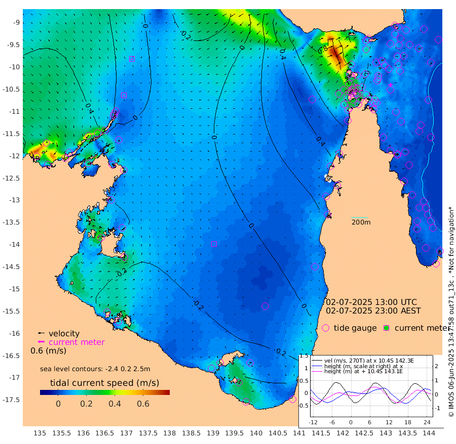 9cm/s -146T +3cm/s rms + 7cm/s -42T. ARA-GOC87 57m 6cm/s 6T +3cm/s rms + 2cm/s -2T. ARA-GOC87 60m 10cm/s -168T +2cm/s rms + 3cm/s 61T. ARA-GOC87 47m 1cm Daru -7cm Bobo Island -4cm Meer Island Barge -5cm Bramble Cay 6cm Unnamed Cay -3cm Pearce Cay -3cm Stephens Island -1cm Merrie England Shoals 7cm Mutacomal Reef -7cm Darnley Island Barge -8cm East Cay -2cm Yorke Island Barge 8cm Rennel Island -3cm Aureed Island 16cm Dungeness Reef 21cm Zagai Island 31cm Yam Island 42cm Dauan Island 31cm Saibai Island 33cm Phipi Reef 17cm Warrior Reef - West 59cm Mabuiag Island Barge 6cm Half Way Island 11cm Coconut Island 14cm Dugong Islet 24cm Poll Island 22cm Kirkcaldie Reef 46cm Suarji Island 19cm Sue Islet 107cm Hawkesbury Island 52cm Alert Patches 45cm Twin Island 98cm Badu Island 49cm St Pauls (Moa Island) 89cm Kubin (Moa Island) 62cm Ince Point 73cm Thursday Island 71cm Nardana Patches 86cm Turtle Head 98cm Round Island 108cm Goods Island 119cm Booby Island 121cm White Rocks Area 96cm Carpentaria 46cm Papou Point 137cm Bampfield Head 89cm Crab Island 107cm Red Wallis Island 88cm Packe Island 12cm Harrington Reef 109cm Herald Camp 6cm Sharp Point 64cm Red Island Point 64cm Possession Island 37cm Alpha Rock 28cm Frederick Point 13cm Wyborn Reef Light 16cm Tetley Island 0cm Triangle Reef 19cm Turtle Head Island 2cm Maclennan Cay 0cm Raine Island 0cm Mcsweeny Reef -3cm Collette Reef -2cm Shadwell Reef -5cm Hannibal Island -5cm Round Point 75cm Vrilya Point -2cm Cape Grenville -2cm Hicks Island 4cm Sir Charles Hardy Island -2cm Harvey Island -4cm Kay Reef -3cm Rocky Island -4cm Chapman Island -4cm Ham Reef -2cm Jubilee Reef -5cm Night Island -6cm Unnamed Reef No. 3 -3cm Morris Island 10cm 1st 3 Mile Opening -1cm Creech Reef -18cm Fife Island -5cm Eden Reef -2cm Stanley Island -7cm Normanby River 72cm Yabooma Island 73cm Hutchison River 61cm Elcho Island 58cm North West Crocodile Island 21cm Cape Wessel 40cm Stevens Island 0cm Guluwuru Island 34cm Hopeful Bay 35cm Auster Point 28cm Two Island Bay 16cm Cadell Strait -119cm Mallison Island 2cm Melville Bay (Gove Harbour) 6cm Truant Island -5cm Cape Arnhem -6cm Cape Grey -17cm Hawk Island -17cm Milner Bay (Groote Eylandt) -22cm Cape Beatrice -33cm West Island -31cm Centre Island -61cm Mornington Island -51cm West Wellesley Islands -53cm Bountiful Island -62cm Albert River Mouth -81cm Sweers Island -73cm Karumba -49cm Nassau River Offshore -22cm Christmas Creek 14cm Archer River 35cm Boyd Point 44cm Weipa (Humbug Point) 35cm Pennefather River 67cm Cullen Point
