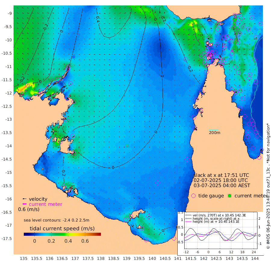 6cm/s 57T +3cm/s rms + 7cm/s -42T. ARA-GOC87 57m 18cm/s 175T +3cm/s rms + 2cm/s -2T. ARA-GOC87 60m 6cm/s 8T +2cm/s rms + 3cm/s 61T. ARA-GOC87 47m 45cm Daru 45cm Bobo Island 39cm Meer Island Barge 45cm Bramble Cay 43cm Unnamed Cay 38cm Pearce Cay 43cm Stephens Island 41cm Merrie England Shoals 44cm Mutacomal Reef 44cm Darnley Island Barge 46cm East Cay 42cm Yorke Island Barge 40cm Rennel Island 40cm Aureed Island 31cm Dungeness Reef 35cm Zagai Island 37cm Yam Island 42cm Dauan Island 46cm Saibai Island 23cm Phipi Reef 46cm Warrior Reef - West 14cm Mabuiag Island Barge 32cm Half Way Island 33cm Coconut Island 34cm Dugong Islet 28cm Poll Island 26cm Kirkcaldie Reef 15cm Suarji Island 32cm Sue Islet -1cm Hawkesbury Island 7cm Alert Patches 16cm Twin Island -6cm Badu Island 14cm St Pauls (Moa Island) 8cm Kubin (Moa Island) 8cm Ince Point 0cm Thursday Island 3cm Nardana Patches 0cm Turtle Head 4cm Round Island -10cm Goods Island -22cm Booby Island -21cm White Rocks Area -21cm Carpentaria 13cm Papou Point -5cm Bampfield Head -21cm Crab Island -12cm Red Wallis Island 7cm Packe Island 30cm Harrington Reef 15cm Herald Camp 3cm Sharp Point -4cm Red Island Point 2cm Possession Island 27cm Alpha Rock 26cm Frederick Point 43cm Wyborn Reef Light 42cm Tetley Island 40cm Triangle Reef 24cm Turtle Head Island 39cm Maclennan Cay 34cm Raine Island 42cm Mcsweeny Reef 42cm Collette Reef 39cm Shadwell Reef 44cm Hannibal Island 46cm Round Point -31cm Vrilya Point 41cm Cape Grenville 43cm Hicks Island 58cm Sir Charles Hardy Island 13cm Harvey Island 43cm Kay Reef 41cm Rocky Island 44cm Chapman Island 43cm Ham Reef 40cm Jubilee Reef 35cm Night Island 42cm Unnamed Reef No. 3 40cm Morris Island 30cm 1st 3 Mile Opening 37cm Creech Reef 51cm Fife Island 44cm Eden Reef 39cm Stanley Island 45cm Normanby River 12cm Yabooma Island 14cm Hutchison River 5cm Elcho Island 2cm North West Crocodile Island 43cm Cape Wessel 25cm Stevens Island 61cm Guluwuru Island 25cm Hopeful Bay 23cm Auster Point 32cm Two Island Bay 44cm Cadell Strait 197cm Mallison Island 47cm Melville Bay (Gove Harbour) 53cm Truant Island 37cm Cape Arnhem 8cm Cape Grey 3cm Hawk Island -28cm Milner Bay (Groote Eylandt) -27cm Cape Beatrice -48cm West Island -55cm Centre Island -23cm Mornington Island -23cm West Wellesley Islands -23cm Bountiful Island -46cm Albert River Mouth -62cm Sweers Island -42cm Karumba -1cm Nassau River Offshore 16cm Christmas Creek 3cm Archer River 7cm Boyd Point 6cm Weipa (Humbug Point) -26cm Pennefather River -6cm Cullen Point