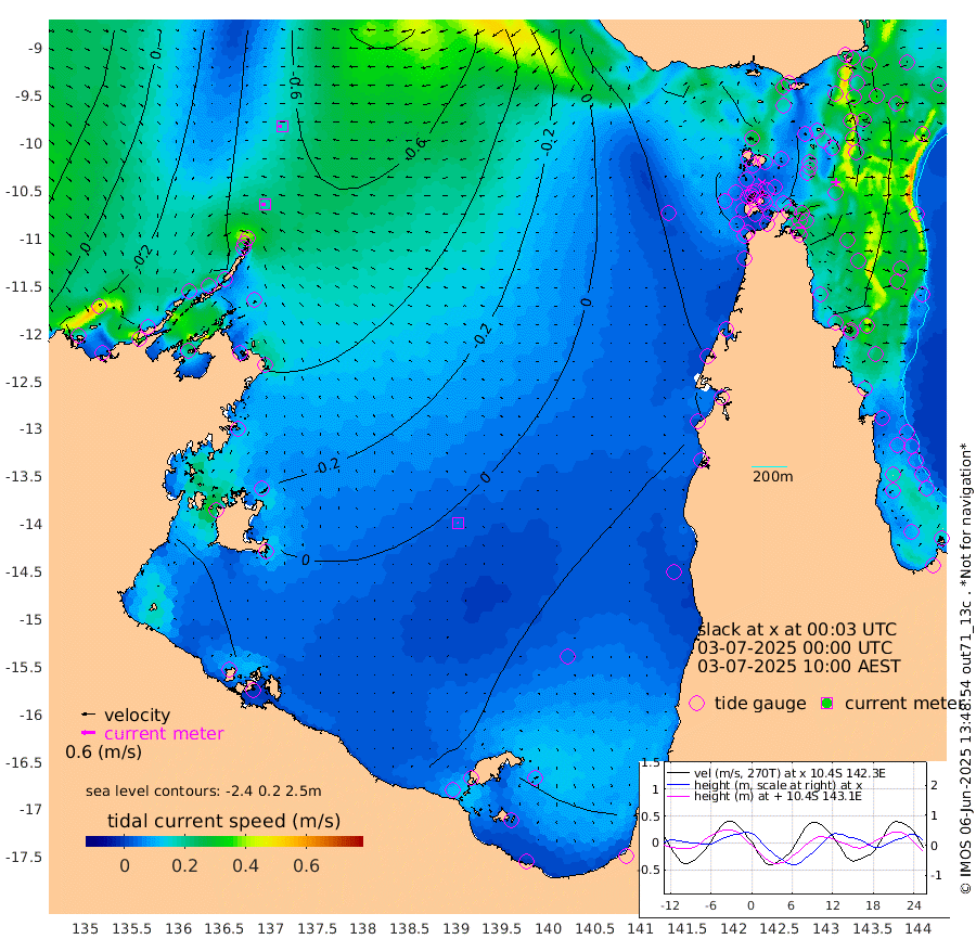 18cm/s -95T +3cm/s rms + 7cm/s -42T. ARA-GOC87 57m 5cm/s -64T +3cm/s rms + 2cm/s -2T. ARA-GOC87 60m 17cm/s -102T +2cm/s rms + 3cm/s 61T. ARA-GOC87 47m -27cm Daru -34cm Bobo Island -41cm Meer Island Barge -41cm Bramble Cay -34cm Unnamed Cay -30cm Pearce Cay -36cm Stephens Island -33cm Merrie England Shoals -24cm Mutacomal Reef -41cm Darnley Island Barge -44cm East Cay -34cm Yorke Island Barge -28cm Rennel Island -33cm Aureed Island -13cm Dungeness Reef -15cm Zagai Island 0cm Yam Island 1cm Dauan Island -10cm Saibai Island 17cm Phipi Reef -11cm Warrior Reef - West 10cm Mabuiag Island Barge -18cm Half Way Island -24cm Coconut Island -16cm Dugong Islet -7cm Poll Island -1cm Kirkcaldie Reef -3cm Suarji Island -13cm Sue Islet 40cm Hawkesbury Island 8cm Alert Patches 6cm Twin Island 25cm Badu Island 11cm St Pauls (Moa Island) 27cm Kubin (Moa Island) 15cm Ince Point 22cm Thursday Island 20cm Nardana Patches 22cm Turtle Head 27cm Round Island 28cm Goods Island 34cm Booby Island 31cm White Rocks Area 13cm Carpentaria 8cm Papou Point 8cm Bampfield Head 36cm Crab Island 35cm Red Wallis Island 32cm Packe Island -18cm Harrington Reef 37cm Herald Camp 8cm Sharp Point 30cm Red Island Point 17cm Possession Island -5cm Alpha Rock -7cm Frederick Point -30cm Wyborn Reef Light -25cm Tetley Island -36cm Triangle Reef -19cm Turtle Head Island -36cm Maclennan Cay -41cm Raine Island -36cm Mcsweeny Reef -38cm Collette Reef -40cm Shadwell Reef -41cm Hannibal Island -41cm Round Point 40cm Vrilya Point -37cm Cape Grenville -39cm Hicks Island -50cm Sir Charles Hardy Island -11cm Harvey Island -44cm Kay Reef -43cm Rocky Island -47cm Chapman Island -46cm Ham Reef -44cm Jubilee Reef -35cm Night Island -45cm Unnamed Reef No. 3 -44cm Morris Island -42cm 1st 3 Mile Opening -42cm Creech Reef -50cm Fife Island -51cm Eden Reef -43cm Stanley Island -45cm Normanby River -28cm Yabooma Island -48cm Hutchison River -35cm Elcho Island -20cm North West Crocodile Island -69cm Cape Wessel -49cm Stevens Island -96cm Guluwuru Island -43cm Hopeful Bay -53cm Auster Point -43cm Two Island Bay -60cm Cadell Strait -198cm Mallison Island -77cm Melville Bay (Gove Harbour) -86cm Truant Island -62cm Cape Arnhem -39cm Cape Grey -18cm Hawk Island 4cm Milner Bay (Groote Eylandt) 12cm Cape Beatrice 38cm West Island 43cm Centre Island 41cm Mornington Island 35cm West Wellesley Islands 43cm Bountiful Island 59cm Albert River Mouth 61cm Sweers Island 74cm Karumba 46cm Nassau River Offshore 31cm Christmas Creek 21cm Archer River 10cm Boyd Point 16cm Weipa (Humbug Point) 32cm Pennefather River 31cm Cullen Point