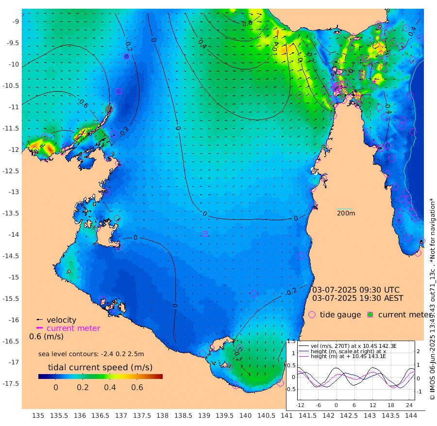 3cm/s -38T +3cm/s rms + 7cm/s -42T. ARA-GOC87 57m 9cm/s 48T +3cm/s rms + 2cm/s -2T. ARA-GOC87 60m 2cm/s -113T +2cm/s rms + 3cm/s 61T. ARA-GOC87 47m 25cm Daru 37cm Bobo Island 31cm Meer Island Barge 31cm Bramble Cay 33cm Unnamed Cay 37cm Pearce Cay 39cm Stephens Island 36cm Merrie England Shoals 27cm Mutacomal Reef 39cm Darnley Island Barge 33cm East Cay 35cm Yorke Island Barge 33cm Rennel Island 40cm Aureed Island 23cm Dungeness Reef 7cm Zagai Island -1cm Yam Island -49cm Dauan Island -33cm Saibai Island -37cm Phipi Reef -8cm Warrior Reef - West -24cm Mabuiag Island Barge 36cm Half Way Island 35cm Coconut Island 33cm Dugong Islet 17cm Poll Island 22cm Kirkcaldie Reef 18cm Suarji Island 18cm Sue Islet -41cm Hawkesbury Island 12cm Alert Patches 13cm Twin Island -36cm Badu Island 4cm St Pauls (Moa Island) -27cm Kubin (Moa Island) -2cm Ince Point -6cm Thursday Island -6cm Nardana Patches -17cm Turtle Head -27cm Round Island -24cm Goods Island -18cm Booby Island -16cm White Rocks Area 27cm Carpentaria 8cm Papou Point -6cm Bampfield Head -17cm Crab Island -19cm Red Wallis Island -26cm Packe Island 46cm Harrington Reef -38cm Herald Camp 1cm Sharp Point -12cm Red Island Point 4cm Possession Island 12cm Alpha Rock 23cm Frederick Point 28cm Wyborn Reef Light 24cm Tetley Island 23cm Triangle Reef 38cm Turtle Head Island 31cm Maclennan Cay 24cm Raine Island 36cm Mcsweeny Reef 34cm Collette Reef 25cm Shadwell Reef 39cm Hannibal Island 31cm Round Point -3cm Vrilya Point 36cm Cape Grenville 30cm Hicks Island 29cm Sir Charles Hardy Island 11cm Harvey Island 35cm Kay Reef 27cm Rocky Island 23cm Chapman Island 26cm Ham Reef 27cm Jubilee Reef 26cm Night Island 29cm Unnamed Reef No. 3 31cm Morris Island 30cm 1st 3 Mile Opening 32cm Creech Reef 26cm Fife Island 34cm Eden Reef 32cm Stanley Island 34cm Normanby River -102cm Yabooma Island -97cm Hutchison River -86cm Elcho Island -91cm North West Crocodile Island -36cm Cape Wessel -82cm Stevens Island -23cm Guluwuru Island -76cm Hopeful Bay -51cm Auster Point -61cm Two Island Bay -89cm Cadell Strait -39cm Mallison Island -31cm Melville Bay (Gove Harbour) -29cm Truant Island -14cm Cape Arnhem -1cm Cape Grey -7cm Hawk Island 7cm Milner Bay (Groote Eylandt) 7cm Cape Beatrice 26cm West Island 31cm Centre Island -7cm Mornington Island -4cm West Wellesley Islands -30cm Bountiful Island -48cm Albert River Mouth -38cm Sweers Island -52cm Karumba -28cm Nassau River Offshore -25cm Christmas Creek -15cm Archer River -7cm Boyd Point -20cm Weipa (Humbug Point) -1cm Pennefather River -14cm Cullen Point