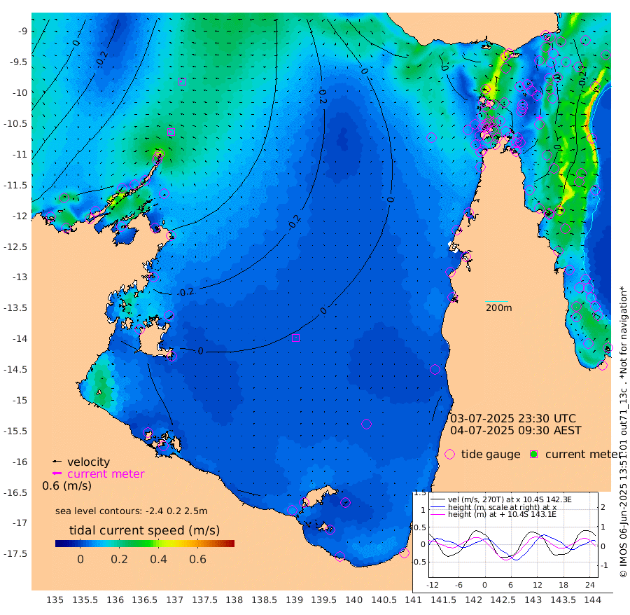 17cm/s -79T +3cm/s rms + 7cm/s -42T. ARA-GOC87 57m 3cm/s -28T +3cm/s rms + 2cm/s -2T. ARA-GOC87 60m 16cm/s -87T +2cm/s rms + 3cm/s 61T. ARA-GOC87 47m -6cm Daru -8cm Bobo Island -25cm Meer Island Barge -21cm Bramble Cay -12cm Unnamed Cay -7cm Pearce Cay -12cm Stephens Island -10cm Merrie England Shoals -1cm Mutacomal Reef -18cm Darnley Island Barge -24cm East Cay -11cm Yorke Island Barge -6cm Rennel Island -6cm Aureed Island 2cm Dungeness Reef -3cm Zagai Island 10cm Yam Island -14cm Dauan Island -18cm Saibai Island -1cm Phipi Reef -2cm Warrior Reef - West -6cm Mabuiag Island Barge 5cm Half Way Island -3cm Coconut Island 7cm Dugong Islet 8cm Poll Island 12cm Kirkcaldie Reef 6cm Suarji Island 0cm Sue Islet 1cm Hawkesbury Island 6cm Alert Patches 11cm Twin Island -15cm Badu Island 13cm St Pauls (Moa Island) 5cm Kubin (Moa Island) 8cm Ince Point 8cm Thursday Island 7cm Nardana Patches -2cm Turtle Head 1cm Round Island -9cm Goods Island -7cm Booby Island -5cm White Rocks Area -4cm Carpentaria 11cm Papou Point -24cm Bampfield Head -1cm Crab Island 3cm Red Wallis Island 10cm Packe Island 8cm Harrington Reef 8cm Herald Camp 10cm Sharp Point 6cm Red Island Point 9cm Possession Island 7cm Alpha Rock 7cm Frederick Point -7cm Wyborn Reef Light -4cm Tetley Island -21cm Triangle Reef -1cm Turtle Head Island -20cm Maclennan Cay -32cm Raine Island -14cm Mcsweeny Reef -19cm Collette Reef -27cm Shadwell Reef -18cm Hannibal Island -20cm Round Point 7cm Vrilya Point -16cm Cape Grenville -21cm Hicks Island -30cm Sir Charles Hardy Island -4cm Harvey Island -27cm Kay Reef -30cm Rocky Island -35cm Chapman Island -33cm Ham Reef -32cm Jubilee Reef -20cm Night Island -31cm Unnamed Reef No. 3 -30cm Morris Island -34cm 1st 3 Mile Opening -29cm Creech Reef -32cm Fife Island -36cm Eden Reef -28cm Stanley Island -26cm Normanby River -60cm Yabooma Island -82cm Hutchison River -64cm Elcho Island -51cm North West Crocodile Island -64cm Cape Wessel -67cm Stevens Island -87cm Guluwuru Island -60cm Hopeful Bay -62cm Auster Point -49cm Two Island Bay -78cm Cadell Strait -151cm Mallison Island -73cm Melville Bay (Gove Harbour) -79cm Truant Island -55cm Cape Arnhem -38cm Cape Grey -15cm Hawk Island 8cm Milner Bay (Groote Eylandt) 16cm Cape Beatrice 46cm West Island 51cm Centre Island 39cm Mornington Island 34cm West Wellesley Islands 29cm Bountiful Island 38cm Albert River Mouth 40cm Sweers Island 51cm Karumba 36cm Nassau River Offshore 19cm Christmas Creek -1cm Archer River -8cm Boyd Point -9cm Weipa (Humbug Point) 6cm Pennefather River 6cm Cullen Point