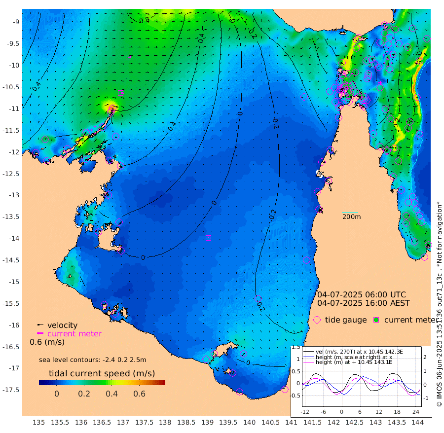 26cm/s 98T +3cm/s rms + 7cm/s -42T. ARA-GOC87 57m 5cm/s 5T +3cm/s rms + 2cm/s -2T. ARA-GOC87 60m 27cm/s 88T +2cm/s rms + 3cm/s 61T. ARA-GOC87 47m -40cm Daru -33cm Bobo Island -4cm Meer Island Barge -12cm Bramble Cay -32cm Unnamed Cay -30cm Pearce Cay -28cm Stephens Island -27cm Merrie England Shoals -46cm Mutacomal Reef -19cm Darnley Island Barge -8cm East Cay -31cm Yorke Island Barge -42cm Rennel Island -38cm Aureed Island -54cm Dungeness Reef -55cm Zagai Island -74cm Yam Island -57cm Dauan Island -49cm Saibai Island -56cm Phipi Reef -61cm Warrior Reef - West -57cm Mabuiag Island Barge -47cm Half Way Island -46cm Coconut Island -59cm Dugong Islet -63cm Poll Island -67cm Kirkcaldie Reef -78cm Suarji Island -54cm Sue Islet -67cm Hawkesbury Island -69cm Alert Patches -73cm Twin Island -53cm Badu Island -77cm St Pauls (Moa Island) -74cm Kubin (Moa Island) -72cm Ince Point -73cm Thursday Island -73cm Nardana Patches -69cm Turtle Head -68cm Round Island -64cm Goods Island -64cm Booby Island -71cm White Rocks Area -57cm Carpentaria -69cm Papou Point -65cm Bampfield Head -48cm Crab Island -70cm Red Wallis Island -77cm Packe Island -60cm Harrington Reef -87cm Herald Camp -24cm Sharp Point -59cm Red Island Point -67cm Possession Island -65cm Alpha Rock -63cm Frederick Point -42cm Wyborn Reef Light -47cm Tetley Island -11cm Triangle Reef -42cm Turtle Head Island -17cm Maclennan Cay 5cm Raine Island -26cm Mcsweeny Reef -18cm Collette Reef -3cm Shadwell Reef -18cm Hannibal Island -11cm Round Point -40cm Vrilya Point -16cm Cape Grenville -13cm Hicks Island -19cm Sir Charles Hardy Island -6cm Harvey Island -4cm Kay Reef 0cm Rocky Island 7cm Chapman Island 4cm Ham Reef 2cm Jubilee Reef -4cm Night Island 3cm Unnamed Reef No. 3 0cm Morris Island -1cm 1st 3 Mile Opening -2cm Creech Reef 7cm Fife Island 6cm Eden Reef -1cm Stanley Island -3cm Normanby River 65cm Yabooma Island 85cm Hutchison River 76cm Elcho Island 66cm North West Crocodile Island 63cm Cape Wessel 85cm Stevens Island 78cm Guluwuru Island 79cm Hopeful Bay 69cm Auster Point 63cm Two Island Bay 100cm Cadell Strait 171cm Mallison Island 73cm Melville Bay (Gove Harbour) 76cm Truant Island 54cm Cape Arnhem 40cm Cape Grey 31cm Hawk Island 14cm Milner Bay (Groote Eylandt) 4cm Cape Beatrice -22cm West Island -23cm Centre Island -13cm Mornington Island -19cm West Wellesley Islands -15cm Bountiful Island 1cm Albert River Mouth 27cm Sweers Island -2cm Karumba -25cm Nassau River Offshore -32cm Christmas Creek -19cm Archer River -29cm Boyd Point -31cm Weipa (Humbug Point) -15cm Pennefather River -47cm Cullen Point