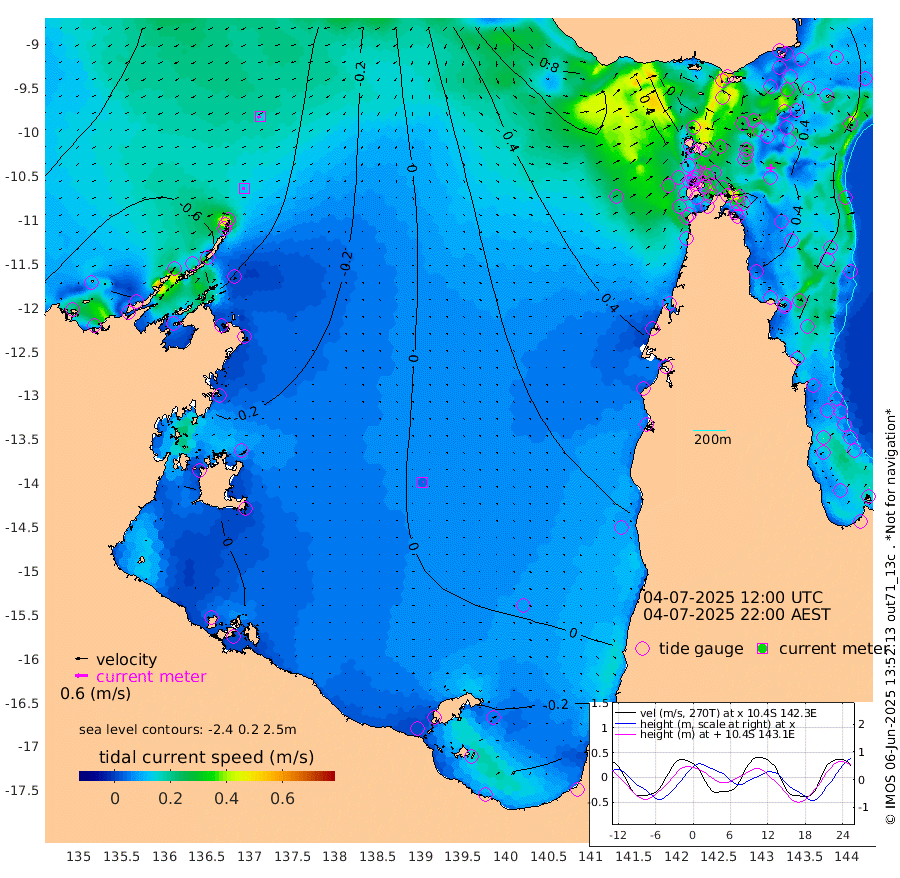 13cm/s -101T +3cm/s rms + 7cm/s -42T. ARA-GOC87 57m 5cm/s 104T +3cm/s rms + 2cm/s -2T. ARA-GOC87 60m 15cm/s -118T +2cm/s rms + 3cm/s 61T. ARA-GOC87 47m 49cm Daru 51cm Bobo Island 26cm Meer Island Barge 30cm Bramble Cay 47cm Unnamed Cay 54cm Pearce Cay 47cm Stephens Island 43cm Merrie England Shoals 51cm Mutacomal Reef 41cm Darnley Island Barge 28cm East Cay 49cm Yorke Island Barge 56cm Rennel Island 57cm Aureed Island 64cm Dungeness Reef 57cm Zagai Island 61cm Yam Island 38cm Dauan Island 36cm Saibai Island 45cm Phipi Reef 51cm Warrior Reef - West 56cm Mabuiag Island Barge 58cm Half Way Island 64cm Coconut Island 67cm Dugong Islet 67cm Poll Island 70cm Kirkcaldie Reef 89cm Suarji Island 62cm Sue Islet 70cm Hawkesbury Island 84cm Alert Patches 81cm Twin Island 67cm Badu Island 79cm St Pauls (Moa Island) 70cm Kubin (Moa Island) 77cm Ince Point 79cm Thursday Island 78cm Nardana Patches 77cm Turtle Head 69cm Round Island 79cm Goods Island 84cm Booby Island 89cm White Rocks Area 90cm Carpentaria 73cm Papou Point 96cm Bampfield Head 63cm Crab Island 79cm Red Wallis Island 70cm Packe Island 77cm Harrington Reef 71cm Herald Camp 19cm Sharp Point 68cm Red Island Point 79cm Possession Island 65cm Alpha Rock 74cm Frederick Point 54cm Wyborn Reef Light 56cm Tetley Island 28cm Triangle Reef 69cm Turtle Head Island 35cm Maclennan Cay 18cm Raine Island 46cm Mcsweeny Reef 38cm Collette Reef 23cm Shadwell Reef 40cm Hannibal Island 31cm Round Point 61cm Vrilya Point 34cm Cape Grenville 31cm Hicks Island 33cm Sir Charles Hardy Island 11cm Harvey Island 26cm Kay Reef 21cm Rocky Island 17cm Chapman Island 18cm Ham Reef 21cm Jubilee Reef 20cm Night Island 20cm Unnamed Reef No. 3 23cm Morris Island 29cm 1st 3 Mile Opening 26cm Creech Reef 12cm Fife Island 21cm Eden Reef 23cm Stanley Island 24cm Normanby River -74cm Yabooma Island -77cm Hutchison River -74cm Elcho Island -74cm North West Crocodile Island -51cm Cape Wessel -84cm Stevens Island -53cm Guluwuru Island -80cm Hopeful Bay -55cm Auster Point -66cm Two Island Bay -96cm Cadell Strait -164cm Mallison Island -54cm Melville Bay (Gove Harbour) -53cm Truant Island -36cm Cape Arnhem -20cm Cape Grey -26cm Hawk Island -16cm Milner Bay (Groote Eylandt) -12cm Cape Beatrice 5cm West Island 9cm Centre Island -23cm Mornington Island -14cm West Wellesley Islands -31cm Bountiful Island -61cm Albert River Mouth -69cm Sweers Island -61cm Karumba -19cm Nassau River Offshore 1cm Christmas Creek 19cm Archer River 36cm Boyd Point 32cm Weipa (Humbug Point) 35cm Pennefather River 49cm Cullen Point