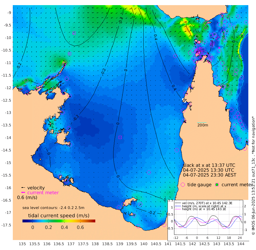 15cm/s -105T +3cm/s rms + 7cm/s -42T. ARA-GOC87 57m 3cm/s 158T +3cm/s rms + 2cm/s -2T. ARA-GOC87 60m 16cm/s -118T +2cm/s rms + 3cm/s 61T. ARA-GOC87 47m 31cm Daru 24cm Bobo Island 4cm Meer Island Barge 4cm Bramble Cay 22cm Unnamed Cay 26cm Pearce Cay 18cm Stephens Island 13cm Merrie England Shoals 29cm Mutacomal Reef 13cm Darnley Island Barge 2cm East Cay 25cm Yorke Island Barge 34cm Rennel Island 31cm Aureed Island 52cm Dungeness Reef 59cm Zagai Island 67cm Yam Island 80cm Dauan Island 67cm Saibai Island 76cm Phipi Reef 61cm Warrior Reef - West 84cm Mabuiag Island Barge 34cm Half Way Island 43cm Coconut Island 47cm Dugong Islet 60cm Poll Island 60cm Kirkcaldie Reef 91cm Suarji Island 55cm Sue Islet 107cm Hawkesbury Island 87cm Alert Patches 81cm Twin Island 106cm Badu Island 89cm St Pauls (Moa Island) 99cm Kubin (Moa Island) 91cm Ince Point 97cm Thursday Island 96cm Nardana Patches 103cm Turtle Head 99cm Round Island 111cm Goods Island 116cm Booby Island 119cm White Rocks Area 95cm Carpentaria 78cm Papou Point 124cm Bampfield Head 88cm Crab Island 107cm Red Wallis Island 96cm Packe Island 50cm Harrington Reef 109cm Herald Camp 21cm Sharp Point 85cm Red Island Point 87cm Possession Island 63cm Alpha Rock 63cm Frederick Point 34cm Wyborn Reef Light 39cm Tetley Island 10cm Triangle Reef 46cm Turtle Head Island 14cm Maclennan Cay 2cm Raine Island 21cm Mcsweeny Reef 13cm Collette Reef 4cm Shadwell Reef 10cm Hannibal Island 3cm Round Point 76cm Vrilya Point 6cm Cape Grenville 8cm Hicks Island 13cm Sir Charles Hardy Island 3cm Harvey Island -2cm Kay Reef 1cm Rocky Island -3cm Chapman Island -2cm Ham Reef 1cm Jubilee Reef 0cm Night Island -3cm Unnamed Reef No. 3 1cm Morris Island 13cm 1st 3 Mile Opening 4cm Creech Reef -10cm Fife Island -5cm Eden Reef -1cm Stanley Island -4cm Normanby River -21cm Yabooma Island -27cm Hutchison River -31cm Elcho Island -29cm North West Crocodile Island -37cm Cape Wessel -48cm Stevens Island -45cm Guluwuru Island -49cm Hopeful Bay -31cm Auster Point -40cm Two Island Bay -58cm Cadell Strait -180cm Mallison Island -42cm Melville Bay (Gove Harbour) -41cm Truant Island -31cm Cape Arnhem -18cm Cape Grey -27cm Hawk Island -19cm Milner Bay (Groote Eylandt) -16cm Cape Beatrice -7cm West Island -6cm Centre Island -24cm Mornington Island -13cm West Wellesley Islands -16cm Bountiful Island -38cm Albert River Mouth -56cm Sweers Island -41cm Karumba -11cm Nassau River Offshore 11cm Christmas Creek 29cm Archer River 47cm Boyd Point 52cm Weipa (Humbug Point) 41cm Pennefather River 68cm Cullen Point