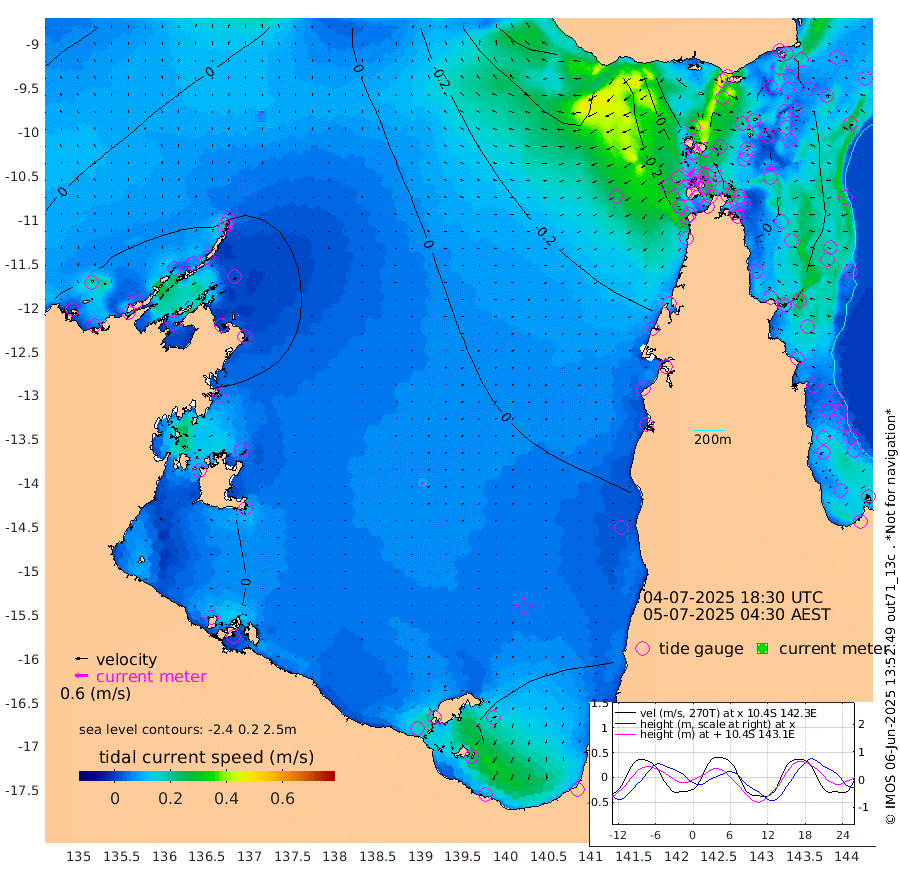 6cm/s -21T +3cm/s rms + 7cm/s -42T. ARA-GOC87 57m 10cm/s -158T +3cm/s rms + 2cm/s -2T. ARA-GOC87 60m 7cm/s -26T +2cm/s rms + 3cm/s 61T. ARA-GOC87 47m 7cm Daru 1cm Bobo Island 15cm Meer Island Barge 16cm Bramble Cay 9cm Unnamed Cay -6cm Pearce Cay 6cm Stephens Island 8cm Merrie England Shoals 6cm Mutacomal Reef 9cm Darnley Island Barge 18cm East Cay 4cm Yorke Island Barge 2cm Rennel Island -4cm Aureed Island -7cm Dungeness Reef 1cm Zagai Island 4cm Yam Island 20cm Dauan Island 23cm Saibai Island 6cm Phipi Reef 11cm Warrior Reef - West -5cm Mabuiag Island Barge -6cm Half Way Island -8cm Coconut Island -7cm Dugong Islet -11cm Poll Island -9cm Kirkcaldie Reef -20cm Suarji Island -5cm Sue Islet -20cm Hawkesbury Island -25cm Alert Patches -21cm Twin Island -16cm Badu Island -21cm St Pauls (Moa Island) -15cm Kubin (Moa Island) -21cm Ince Point -25cm Thursday Island -22cm Nardana Patches -19cm Turtle Head -16cm Round Island -21cm Goods Island -31cm Booby Island -31cm White Rocks Area -38cm Carpentaria -19cm Papou Point -26cm Bampfield Head -26cm Crab Island -26cm Red Wallis Island -15cm Packe Island -16cm Harrington Reef -6cm Herald Camp -5cm Sharp Point -21cm Red Island Point -28cm Possession Island -8cm Alpha Rock -16cm Frederick Point 1cm Wyborn Reef Light -1cm Tetley Island 12cm Triangle Reef -21cm Turtle Head Island 13cm Maclennan Cay 19cm Raine Island 5cm Mcsweeny Reef 10cm Collette Reef 17cm Shadwell Reef 10cm Hannibal Island 13cm Round Point -38cm Vrilya Point 13cm Cape Grenville 16cm Hicks Island 30cm Sir Charles Hardy Island 4cm Harvey Island 20cm Kay Reef 21cm Rocky Island 23cm Chapman Island 23cm Ham Reef 21cm Jubilee Reef 14cm Night Island 21cm Unnamed Reef No. 3 20cm Morris Island 15cm 1st 3 Mile Opening 17cm Creech Reef 24cm Fife Island 23cm Eden Reef 20cm Stanley Island 20cm Normanby River 33cm Yabooma Island 37cm Hutchison River 29cm Elcho Island 28cm North West Crocodile Island 31cm Cape Wessel 35cm Stevens Island 48cm Guluwuru Island 34cm Hopeful Bay 21cm Auster Point 26cm Two Island Bay 43cm Cadell Strait 149cm Mallison Island 39cm Melville Bay (Gove Harbour) 38cm Truant Island 27cm Cape Arnhem 13cm Cape Grey 8cm Hawk Island -5cm Milner Bay (Groote Eylandt) -3cm Cape Beatrice -18cm West Island -25cm Centre Island 16cm Mornington Island 15cm West Wellesley Islands 35cm Bountiful Island 38cm Albert River Mouth 17cm Sweers Island 32cm Karumba 26cm Nassau River Offshore 28cm Christmas Creek 6cm Archer River 1cm Boyd Point 7cm Weipa (Humbug Point) -29cm Pennefather River -16cm Cullen Point