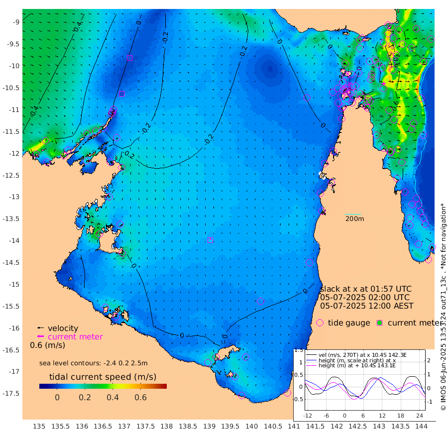 2cm/s -174T +3cm/s rms + 7cm/s -42T. ARA-GOC87 57m 13cm/s -9T +3cm/s rms + 2cm/s -2T. ARA-GOC87 60m 3cm/s 124T +2cm/s rms + 3cm/s 61T. ARA-GOC87 47m -55cm Daru -60cm Bobo Island -64cm Meer Island Barge -70cm Bramble Cay -66cm Unnamed Cay -56cm Pearce Cay -65cm Stephens Island -68cm Merrie England Shoals -58cm Mutacomal Reef -67cm Darnley Island Barge -72cm East Cay -60cm Yorke Island Barge -57cm Rennel Island -56cm Aureed Island -41cm Dungeness Reef -30cm Zagai Island -26cm Yam Island -9cm Dauan Island -23cm Saibai Island -10cm Phipi Reef -31cm Warrior Reef - West -5cm Mabuiag Island Barge -48cm Half Way Island -50cm Coconut Island -46cm Dugong Islet -30cm Poll Island -35cm Kirkcaldie Reef -23cm Suarji Island -37cm Sue Islet 2cm Hawkesbury Island -19cm Alert Patches -19cm Twin Island -3cm Badu Island -9cm St Pauls (Moa Island) 0cm Kubin (Moa Island) -9cm Ince Point -4cm Thursday Island -5cm Nardana Patches -8cm Turtle Head -3cm Round Island -6cm Goods Island 0cm Booby Island -1cm White Rocks Area -11cm Carpentaria -13cm Papou Point -20cm Bampfield Head 5cm Crab Island 1cm Red Wallis Island -3cm Packe Island -48cm Harrington Reef -4cm Herald Camp 1cm Sharp Point -8cm Red Island Point -9cm Possession Island -26cm Alpha Rock -33cm Frederick Point -54cm Wyborn Reef Light -48cm Tetley Island -56cm Triangle Reef -43cm Turtle Head Island -62cm Maclennan Cay -63cm Raine Island -62cm Mcsweeny Reef -66cm Collette Reef -64cm Shadwell Reef -72cm Hannibal Island -70cm Round Point 10cm Vrilya Point -69cm Cape Grenville -67cm Hicks Island -82cm Sir Charles Hardy Island -20cm Harvey Island -77cm Kay Reef -69cm Rocky Island -71cm Chapman Island -70cm Ham Reef -68cm Jubilee Reef -57cm Night Island -71cm Unnamed Reef No. 3 -71cm Morris Island -64cm 1st 3 Mile Opening -68cm Creech Reef -68cm Fife Island -79cm Eden Reef -71cm Stanley Island -74cm Normanby River 30cm Yabooma Island 15cm Hutchison River 23cm Elcho Island 31cm North West Crocodile Island -12cm Cape Wessel 15cm Stevens Island -44cm Guluwuru Island 11cm Hopeful Bay 5cm Auster Point 15cm Two Island Bay 8cm Cadell Strait -136cm Mallison Island -26cm Melville Bay (Gove Harbour) -28cm Truant Island -23cm Cape Arnhem -13cm Cape Grey 1cm Hawk Island 20cm Milner Bay (Groote Eylandt) 18cm Cape Beatrice 31cm West Island 33cm Centre Island 12cm Mornington Island 10cm West Wellesley Islands 8cm Bountiful Island 36cm Albert River Mouth 50cm Sweers Island 39cm Karumba 2cm Nassau River Offshore -17cm Christmas Creek -19cm Archer River -20cm Boyd Point -20cm Weipa (Humbug Point) 6cm Pennefather River 1cm Cullen Point