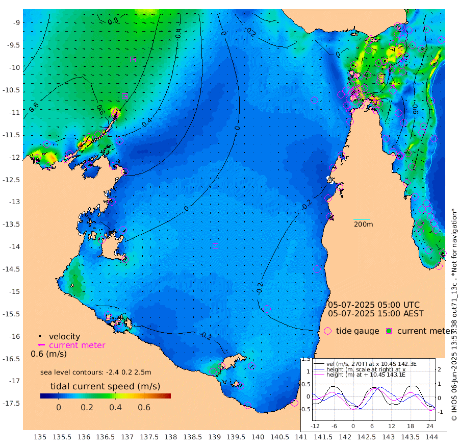 23cm/s 109T +3cm/s rms + 7cm/s -42T. ARA-GOC87 57m 9cm/s -4T +3cm/s rms + 2cm/s -2T. ARA-GOC87 60m 23cm/s 98T +2cm/s rms + 3cm/s 61T. ARA-GOC87 47m -75cm Daru -76cm Bobo Island -41cm Meer Island Barge -56cm Bramble Cay -72cm Unnamed Cay -72cm Pearce Cay -69cm Stephens Island -71cm Merrie England Shoals -83cm Mutacomal Reef -62cm Darnley Island Barge -51cm East Cay -69cm Yorke Island Barge -77cm Rennel Island -78cm Aureed Island -77cm Dungeness Reef -69cm Zagai Island -79cm Yam Island -41cm Dauan Island -46cm Saibai Island -46cm Phipi Reef -72cm Warrior Reef - West -38cm Mabuiag Island Barge -77cm Half Way Island -79cm Coconut Island -86cm Dugong Islet -78cm Poll Island -82cm Kirkcaldie Reef -84cm Suarji Island -72cm Sue Islet -22cm Hawkesbury Island -68cm Alert Patches -75cm Twin Island -18cm Badu Island -70cm St Pauls (Moa Island) -38cm Kubin (Moa Island) -58cm Ince Point -51cm Thursday Island -53cm Nardana Patches -42cm Turtle Head -30cm Round Island -26cm Goods Island -17cm Booby Island -29cm White Rocks Area -28cm Carpentaria -64cm Papou Point -23cm Bampfield Head -7cm Crab Island -28cm Red Wallis Island -43cm Packe Island -92cm Harrington Reef -37cm Herald Camp -22cm Sharp Point -40cm Red Island Point -51cm Possession Island -72cm Alpha Rock -79cm Frederick Point -75cm Wyborn Reef Light -75cm Tetley Island -44cm Triangle Reef -67cm Turtle Head Island -51cm Maclennan Cay -28cm Raine Island -66cm Mcsweeny Reef -60cm Collette Reef -39cm Shadwell Reef -64cm Hannibal Island -56cm Round Point -2cm Vrilya Point -58cm Cape Grenville -51cm Hicks Island -61cm Sir Charles Hardy Island -18cm Harvey Island -50cm Kay Reef -38cm Rocky Island -35cm Chapman Island -34cm Ham Reef -35cm Jubilee Reef -36cm Night Island -38cm Unnamed Reef No. 3 -39cm Morris Island -32cm 1st 3 Mile Opening -39cm Creech Reef -34cm Fife Island -39cm Eden Reef -40cm Stanley Island -47cm Normanby River 101cm Yabooma Island 110cm Hutchison River 102cm Elcho Island 96cm North West Crocodile Island 57cm Cape Wessel 99cm Stevens Island 51cm Guluwuru Island 91cm Hopeful Bay 77cm Auster Point 79cm Two Island Bay 108cm Cadell Strait 69cm Mallison Island 56cm Melville Bay (Gove Harbour) 58cm Truant Island 37cm Cape Arnhem 26cm Cape Grey 21cm Hawk Island 11cm Milner Bay (Groote Eylandt) -1cm Cape Beatrice -24cm West Island -24cm Centre Island -27cm Mornington Island -34cm West Wellesley Islands -28cm Bountiful Island -3cm Albert River Mouth 20cm Sweers Island -4cm Karumba -34cm Nassau River Offshore -39cm Christmas Creek -17cm Archer River -19cm Boyd Point -17cm Weipa (Humbug Point) 6cm Pennefather River -14cm Cullen Point