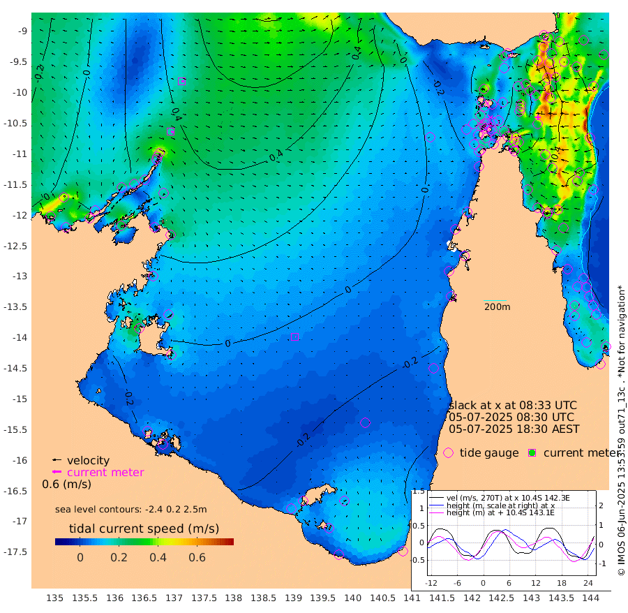 19cm/s 103T +3cm/s rms + 7cm/s -42T. ARA-GOC87 57m 6cm/s 112T +3cm/s rms + 2cm/s -2T. ARA-GOC87 60m 17cm/s 97T +2cm/s rms + 3cm/s 61T. ARA-GOC87 47m 22cm Daru 36cm Bobo Island 50cm Meer Island Barge 53cm Bramble Cay 40cm Unnamed Cay 38cm Pearce Cay 43cm Stephens Island 49cm Merrie England Shoals 27cm Mutacomal Reef 48cm Darnley Island Barge 54cm East Cay 35cm Yorke Island Barge 28cm Rennel Island 31cm Aureed Island 6cm Dungeness Reef -16cm Zagai Island -30cm Yam Island -61cm Dauan Island -42cm Saibai Island -49cm Phipi Reef -28cm Warrior Reef - West -42cm Mabuiag Island Barge 23cm Half Way Island 22cm Coconut Island 12cm Dugong Islet -8cm Poll Island -5cm Kirkcaldie Reef -26cm Suarji Island -2cm Sue Islet -37cm Hawkesbury Island -18cm Alert Patches -21cm Twin Island -36cm Badu Island -35cm St Pauls (Moa Island) -42cm Kubin (Moa Island) -32cm Ince Point -35cm Thursday Island -35cm Nardana Patches -35cm Turtle Head -33cm Round Island -32cm Goods Island -29cm Booby Island -33cm White Rocks Area -4cm Carpentaria -26cm Papou Point -12cm Bampfield Head -24cm Crab Island -34cm Red Wallis Island -38cm Packe Island 20cm Harrington Reef -47cm Herald Camp -14cm Sharp Point -25cm Red Island Point -21cm Possession Island -13cm Alpha Rock -2cm Frederick Point 27cm Wyborn Reef Light 19cm Tetley Island 40cm Triangle Reef 30cm Turtle Head Island 41cm Maclennan Cay 49cm Raine Island 40cm Mcsweeny Reef 47cm Collette Reef 49cm Shadwell Reef 54cm Hannibal Island 56cm Round Point -13cm Vrilya Point 52cm Cape Grenville 47cm Hicks Island 47cm Sir Charles Hardy Island 14cm Harvey Island 62cm Kay Reef 52cm Rocky Island 57cm Chapman Island 54cm Ham Reef 52cm Jubilee Reef 45cm Night Island 56cm Unnamed Reef No. 3 56cm Morris Island 48cm 1st 3 Mile Opening 52cm Creech Reef 54cm Fife Island 67cm Eden Reef 57cm Stanley Island 60cm Normanby River -7cm Yabooma Island 15cm Hutchison River 10cm Elcho Island -3cm North West Crocodile Island 34cm Cape Wessel 22cm Stevens Island 56cm Guluwuru Island 25cm Hopeful Bay 27cm Auster Point 17cm Two Island Bay 28cm Cadell Strait 154cm Mallison Island 43cm Melville Bay (Gove Harbour) 48cm Truant Island 35cm Cape Arnhem 21cm Cape Grey 12cm Hawk Island -10cm Milner Bay (Groote Eylandt) -16cm Cape Beatrice -35cm West Island -31cm Centre Island -38cm Mornington Island -43cm West Wellesley Islands -57cm Bountiful Island -74cm Albert River Mouth -57cm Sweers Island -72cm Karumba -41cm Nassau River Offshore -28cm Christmas Creek -5cm Archer River -6cm Boyd Point -14cm Weipa (Humbug Point) 3cm Pennefather River -20cm Cullen Point