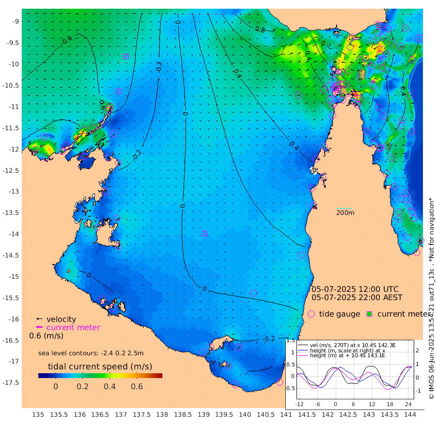 10cm/s -107T +3cm/s rms + 7cm/s -42T. ARA-GOC87 57m 9cm/s 143T +3cm/s rms + 2cm/s -2T. ARA-GOC87 60m 13cm/s -116T +2cm/s rms + 3cm/s 61T. ARA-GOC87 47m 73cm Daru 78cm Bobo Island 44cm Meer Island Barge 53cm Bramble Cay 70cm Unnamed Cay 81cm Pearce Cay 70cm Stephens Island 67cm Merrie England Shoals 76cm Mutacomal Reef 64cm Darnley Island Barge 49cm East Cay 72cm Yorke Island Barge 79cm Rennel Island 83cm Aureed Island 84cm Dungeness Reef 73cm Zagai Island 74cm Yam Island 47cm Dauan Island 49cm Saibai Island 58cm Phipi Reef 70cm Warrior Reef - West 62cm Mabuiag Island Barge 78cm Half Way Island 88cm Coconut Island 87cm Dugong Islet 85cm Poll Island 86cm Kirkcaldie Reef 104cm Suarji Island 80cm Sue Islet 71cm Hawkesbury Island 98cm Alert Patches 95cm Twin Island 67cm Badu Island 91cm St Pauls (Moa Island) 71cm Kubin (Moa Island) 85cm Ince Point 84cm Thursday Island 84cm Nardana Patches 80cm Turtle Head 69cm Round Island 76cm Goods Island 77cm Booby Island 83cm White Rocks Area 83cm Carpentaria 83cm Papou Point 92cm Bampfield Head 56cm Crab Island 75cm Red Wallis Island 73cm Packe Island 100cm Harrington Reef 69cm Herald Camp 22cm Sharp Point 74cm Red Island Point 87cm Possession Island 80cm Alpha Rock 93cm Frederick Point 79cm Wyborn Reef Light 80cm Tetley Island 47cm Triangle Reef 91cm Turtle Head Island 52cm Maclennan Cay 33cm Raine Island 69cm Mcsweeny Reef 62cm Collette Reef 41cm Shadwell Reef 65cm Hannibal Island 56cm Round Point 55cm Vrilya Point 55cm Cape Grenville 50cm Hicks Island 53cm Sir Charles Hardy Island 17cm Harvey Island 47cm Kay Reef 39cm Rocky Island 37cm Chapman Island 35cm Ham Reef 37cm Jubilee Reef 36cm Night Island 39cm Unnamed Reef No. 3 40cm Morris Island 41cm 1st 3 Mile Opening 42cm Creech Reef 32cm Fife Island 40cm Eden Reef 40cm Stanley Island 43cm Normanby River -90cm Yabooma Island -90cm Hutchison River -89cm Elcho Island -89cm North West Crocodile Island -49cm Cape Wessel -90cm Stevens Island -46cm Guluwuru Island -84cm Hopeful Bay -58cm Auster Point -71cm Two Island Bay -96cm Cadell Strait -115cm Mallison Island -48cm Melville Bay (Gove Harbour) -46cm Truant Island -30cm Cape Arnhem -20cm Cape Grey -24cm Hawk Island -24cm Milner Bay (Groote Eylandt) -20cm Cape Beatrice -7cm West Island -2cm Centre Island -24cm Mornington Island -17cm West Wellesley Islands -36cm Bountiful Island -77cm Albert River Mouth -81cm Sweers Island -71cm Karumba -15cm Nassau River Offshore 8cm Christmas Creek 26cm Archer River 39cm Boyd Point 34cm Weipa (Humbug Point) 35cm Pennefather River 46cm Cullen Point
