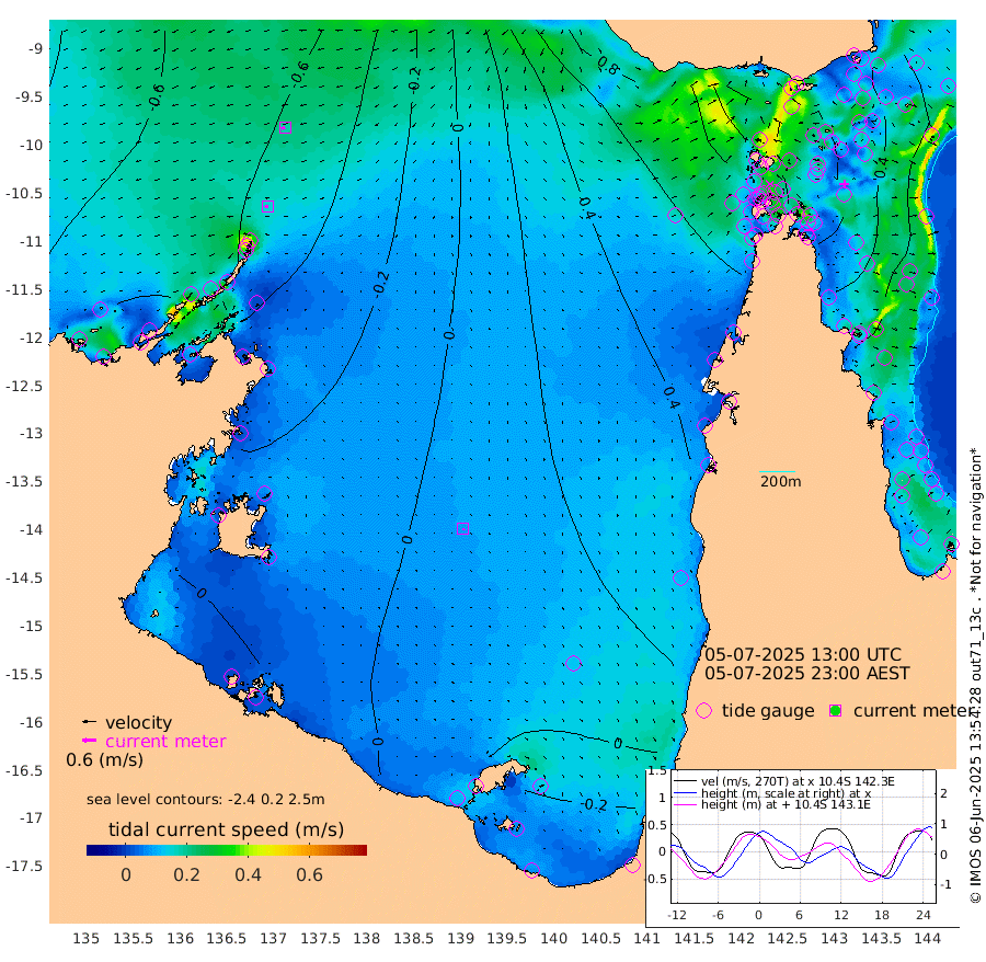 15cm/s -102T +3cm/s rms + 7cm/s -42T. ARA-GOC87 57m 9cm/s 155T +3cm/s rms + 2cm/s -2T. ARA-GOC87 60m 18cm/s -111T +2cm/s rms + 3cm/s 61T. ARA-GOC87 47m 60cm Daru 59cm Bobo Island 24cm Meer Island Barge 30cm Bramble Cay 50cm Unnamed Cay 62cm Pearce Cay 49cm Stephens Island 42cm Merrie England Shoals 59cm Mutacomal Reef 43cm Darnley Island Barge 27cm East Cay 55cm Yorke Island Barge 64cm Rennel Island 66cm Aureed Island 79cm Dungeness Reef 79cm Zagai Island 84cm Yam Island 80cm Dauan Island 73cm Saibai Island 84cm Phipi Reef 81cm Warrior Reef - West 85cm Mabuiag Island Barge 63cm Half Way Island 76cm Coconut Island 77cm Dugong Islet 85cm Poll Island 85cm Kirkcaldie Reef 114cm Suarji Island 79cm Sue Islet 98cm Hawkesbury Island 107cm Alert Patches 102cm Twin Island 96cm Badu Island 105cm St Pauls (Moa Island) 96cm Kubin (Moa Island) 101cm Ince Point 103cm Thursday Island 103cm Nardana Patches 103cm Turtle Head 93cm Round Island 102cm Goods Island 104cm Booby Island 108cm White Rocks Area 94cm Carpentaria 93cm Papou Point 114cm Bampfield Head 78cm Crab Island 99cm Red Wallis Island 95cm Packe Island 86cm Harrington Reef 99cm Herald Camp 26cm Sharp Point 91cm Red Island Point 100cm Possession Island 82cm Alpha Rock 91cm Frederick Point 64cm Wyborn Reef Light 68cm Tetley Island 32cm Triangle Reef 77cm Turtle Head Island 35cm Maclennan Cay 16cm Raine Island 50cm Mcsweeny Reef 41cm Collette Reef 23cm Shadwell Reef 40cm Hannibal Island 31cm Round Point 71cm Vrilya Point 32cm Cape Grenville 31cm Hicks Island 35cm Sir Charles Hardy Island 11cm Harvey Island 21cm Kay Reef 19cm Rocky Island 17cm Chapman Island 16cm Ham Reef 19cm Jubilee Reef 18cm Night Island 18cm Unnamed Reef No. 3 20cm Morris Island 26cm 1st 3 Mile Opening 23cm Creech Reef 12cm Fife Island 15cm Eden Reef 18cm Stanley Island 19cm Normanby River -76cm Yabooma Island -82cm Hutchison River -82cm Elcho Island -79cm North West Crocodile Island -57cm Cape Wessel -90cm Stevens Island -59cm Guluwuru Island -85cm Hopeful Bay -60cm Auster Point -72cm Two Island Bay -95cm Cadell Strait -169cm Mallison Island -57cm Melville Bay (Gove Harbour) -56cm Truant Island -38cm Cape Arnhem -24cm Cape Grey -29cm Hawk Island -25cm Milner Bay (Groote Eylandt) -19cm Cape Beatrice -5cm West Island -1cm Centre Island -19cm Mornington Island -9cm West Wellesley Islands -21cm Bountiful Island -59cm Albert River Mouth -69cm Sweers Island -53cm Karumba -6cm Nassau River Offshore 18cm Christmas Creek 33cm Archer River 49cm Boyd Point 49cm Weipa (Humbug Point) 42cm Pennefather River 63cm Cullen Point