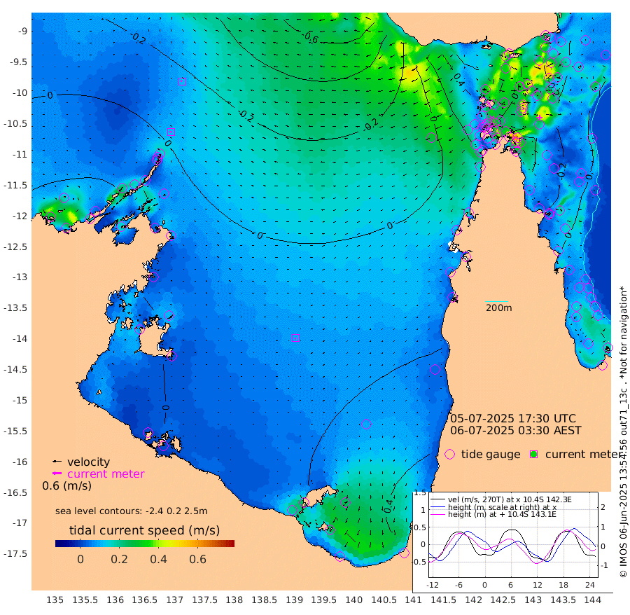 11cm/s -75T +3cm/s rms + 7cm/s -42T. ARA-GOC87 57m 10cm/s -145T +3cm/s rms + 2cm/s -2T. ARA-GOC87 60m 11cm/s -78T +2cm/s rms + 3cm/s 61T. ARA-GOC87 47m -12cm Daru -25cm Bobo Island -7cm Meer Island Barge -15cm Bramble Cay -17cm Unnamed Cay -30cm Pearce Cay -20cm Stephens Island -25cm Merrie England Shoals -20cm Mutacomal Reef -17cm Darnley Island Barge -9cm East Cay -17cm Yorke Island Barge -18cm Rennel Island -25cm Aureed Island -12cm Dungeness Reef 5cm Zagai Island 11cm Yam Island 56cm Dauan Island 47cm Saibai Island 42cm Phipi Reef 19cm Warrior Reef - West 29cm Mabuiag Island Barge -24cm Half Way Island -23cm Coconut Island -19cm Dugong Islet -12cm Poll Island -8cm Kirkcaldie Reef -3cm Suarji Island -5cm Sue Islet 31cm Hawkesbury Island -5cm Alert Patches -8cm Twin Island 38cm Badu Island 1cm St Pauls (Moa Island) 25cm Kubin (Moa Island) 7cm Ince Point 10cm Thursday Island 11cm Nardana Patches 24cm Turtle Head 26cm Round Island 31cm Goods Island 28cm Booby Island 23cm White Rocks Area 0cm Carpentaria 0cm Papou Point 26cm Bampfield Head 23cm Crab Island 22cm Red Wallis Island 20cm Packe Island -32cm Harrington Reef 42cm Herald Camp 0cm Sharp Point 17cm Red Island Point -1cm Possession Island -8cm Alpha Rock -16cm Frederick Point -23cm Wyborn Reef Light -21cm Tetley Island -8cm Triangle Reef -32cm Turtle Head Island -6cm Maclennan Cay 2cm Raine Island -19cm Mcsweeny Reef -16cm Collette Reef -4cm Shadwell Reef -21cm Hannibal Island -20cm Round Point 7cm Vrilya Point -16cm Cape Grenville -7cm Hicks Island 4cm Sir Charles Hardy Island -4cm Harvey Island -11cm Kay Reef -1cm Rocky Island -2cm Chapman Island 1cm Ham Reef 0cm Jubilee Reef -7cm Night Island -4cm Unnamed Reef No. 3 -4cm Morris Island 3cm 1st 3 Mile Opening -3cm Creech Reef -4cm Fife Island -6cm Eden Reef -5cm Stanley Island -10cm Normanby River 36cm Yabooma Island 35cm Hutchison River 26cm Elcho Island 28cm North West Crocodile Island 2cm Cape Wessel 15cm Stevens Island 15cm Guluwuru Island 15cm Hopeful Bay 6cm Auster Point 8cm Two Island Bay 24cm Cadell Strait 17cm Mallison Island 12cm Melville Bay (Gove Harbour) 9cm Truant Island 6cm Cape Arnhem 7cm Cape Grey -3cm Hawk Island -7cm Milner Bay (Groote Eylandt) -2cm Cape Beatrice -11cm West Island -19cm Centre Island 20cm Mornington Island 23cm West Wellesley Islands 54cm Bountiful Island 56cm Albert River Mouth 32cm Sweers Island 51cm Karumba 35cm Nassau River Offshore 39cm Christmas Creek 26cm Archer River 25cm Boyd Point 37cm Weipa (Humbug Point) -1cm Pennefather River 19cm Cullen Point