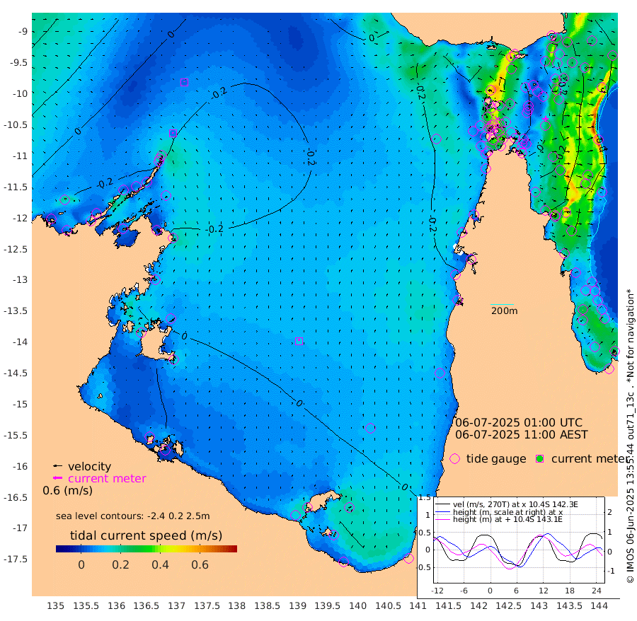 6cm/s -35T +3cm/s rms + 7cm/s -42T. ARA-GOC87 57m 14cm/s -2T +3cm/s rms + 2cm/s -2T. ARA-GOC87 60m 4cm/s -13T +2cm/s rms + 3cm/s 61T. ARA-GOC87 47m -25cm Daru -23cm Bobo Island -47cm Meer Island Barge -43cm Bramble Cay -35cm Unnamed Cay -23cm Pearce Cay -34cm Stephens Island -34cm Merrie England Shoals -21cm Mutacomal Reef -40cm Darnley Island Barge -50cm East Cay -30cm Yorke Island Barge -26cm Rennel Island -20cm Aureed Island -16cm Dungeness Reef -10cm Zagai Island -6cm Yam Island -23cm Dauan Island -27cm Saibai Island -23cm Phipi Reef -14cm Warrior Reef - West -19cm Mabuiag Island Barge -16cm Half Way Island -18cm Coconut Island -13cm Dugong Islet -4cm Poll Island -12cm Kirkcaldie Reef -4cm Suarji Island -15cm Sue Islet -44cm Hawkesbury Island -13cm Alert Patches -4cm Twin Island -46cm Badu Island 0cm St Pauls (Moa Island) -26cm Kubin (Moa Island) -11cm Ince Point -15cm Thursday Island -14cm Nardana Patches -32cm Turtle Head -37cm Round Island -46cm Goods Island -48cm Booby Island -39cm White Rocks Area -36cm Carpentaria -5cm Papou Point -67cm Bampfield Head -39cm Crab Island -34cm Red Wallis Island -25cm Packe Island -10cm Harrington Reef -45cm Herald Camp 6cm Sharp Point -29cm Red Island Point -17cm Possession Island -4cm Alpha Rock -9cm Frederick Point -21cm Wyborn Reef Light -17cm Tetley Island -38cm Triangle Reef -21cm Turtle Head Island -43cm Maclennan Cay -54cm Raine Island -32cm Mcsweeny Reef -40cm Collette Reef -50cm Shadwell Reef -41cm Hannibal Island -43cm Round Point -30cm Vrilya Point -43cm Cape Grenville -47cm Hicks Island -58cm Sir Charles Hardy Island -13cm Harvey Island -54cm Kay Reef -55cm Rocky Island -57cm Chapman Island -57cm Ham Reef -55cm Jubilee Reef -41cm Night Island -54cm Unnamed Reef No. 3 -55cm Morris Island -58cm 1st 3 Mile Opening -54cm Creech Reef -49cm Fife Island -63cm Eden Reef -56cm Stanley Island -52cm Normanby River -20cm Yabooma Island -37cm Hutchison River -22cm Elcho Island -13cm North West Crocodile Island -19cm Cape Wessel -18cm Stevens Island -49cm Guluwuru Island -22cm Hopeful Bay -20cm Auster Point -11cm Two Island Bay -31cm Cadell Strait -102cm Mallison Island -36cm Melville Bay (Gove Harbour) -38cm Truant Island -25cm Cape Arnhem -16cm Cape Grey 2cm Hawk Island 30cm Milner Bay (Groote Eylandt) 30cm Cape Beatrice 56cm West Island 58cm Centre Island 31cm Mornington Island 32cm West Wellesley Islands 19cm Bountiful Island 45cm Albert River Mouth 54cm Sweers Island 42cm Karumba 11cm Nassau River Offshore -17cm Christmas Creek -38cm Archer River -40cm Boyd Point -47cm Weipa (Humbug Point) -26cm Pennefather River -31cm Cullen Point