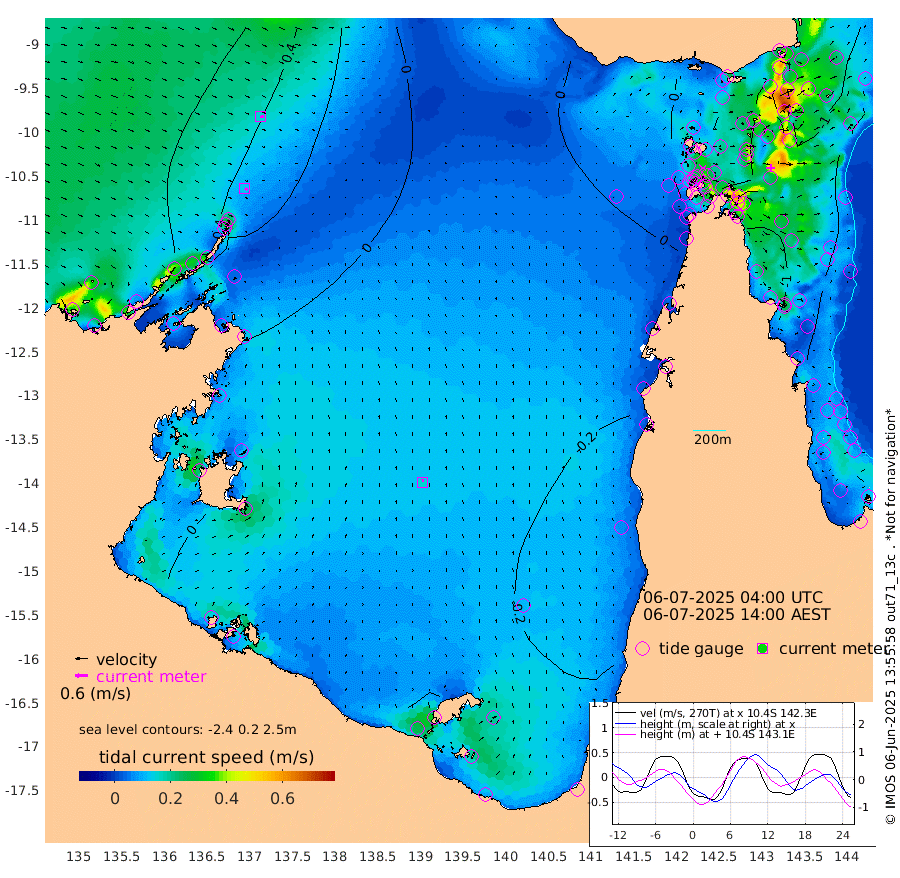 13cm/s 114T +3cm/s rms + 7cm/s -42T. ARA-GOC87 57m 15cm/s 1T +3cm/s rms + 2cm/s -2T. ARA-GOC87 60m 15cm/s 105T +2cm/s rms + 3cm/s 61T. ARA-GOC87 47m -90cm Daru -94cm Bobo Island -71cm Meer Island Barge -89cm Bramble Cay -97cm Unnamed Cay -91cm Pearce Cay -92cm Stephens Island -100cm Merrie England Shoals -100cm Mutacomal Reef -88cm Darnley Island Barge -84cm East Cay -88cm Yorke Island Barge -92cm Rennel Island -91cm Aureed Island -81cm Dungeness Reef -64cm Zagai Island -67cm Yam Island -30cm Dauan Island -43cm Saibai Island -43cm Phipi Reef -68cm Warrior Reef - West -26cm Mabuiag Island Barge -86cm Half Way Island -88cm Coconut Island -88cm Dugong Islet -72cm Poll Island -79cm Kirkcaldie Reef -68cm Suarji Island -72cm Sue Islet -11cm Hawkesbury Island -57cm Alert Patches -61cm Twin Island -12cm Badu Island -49cm St Pauls (Moa Island) -19cm Kubin (Moa Island) -41cm Ince Point -32cm Thursday Island -34cm Nardana Patches -28cm Turtle Head -17cm Round Island -14cm Goods Island -1cm Booby Island -11cm White Rocks Area -7cm Carpentaria -48cm Papou Point -14cm Bampfield Head 5cm Crab Island -8cm Red Wallis Island -25cm Packe Island -94cm Harrington Reef -18cm Herald Camp -14cm Sharp Point -32cm Red Island Point -38cm Possession Island -64cm Alpha Rock -74cm Frederick Point -90cm Wyborn Reef Light -86cm Tetley Island -68cm Triangle Reef -77cm Turtle Head Island -74cm Maclennan Cay -61cm Raine Island -89cm Mcsweeny Reef -88cm Collette Reef -71cm Shadwell Reef -97cm Hannibal Island -90cm Round Point 12cm Vrilya Point -88cm Cape Grenville -80cm Hicks Island -93cm Sir Charles Hardy Island -25cm Harvey Island -88cm Kay Reef -73cm Rocky Island -73cm Chapman Island -70cm Ham Reef -69cm Jubilee Reef -62cm Night Island -73cm Unnamed Reef No. 3 -74cm Morris Island -62cm 1st 3 Mile Opening -70cm Creech Reef -68cm Fife Island -81cm Eden Reef -76cm Stanley Island -83cm Normanby River 76cm Yabooma Island 69cm Hutchison River 71cm Elcho Island 71cm North West Crocodile Island 29cm Cape Wessel 63cm Stevens Island 4cm Guluwuru Island 54cm Hopeful Bay 49cm Auster Point 58cm Two Island Bay 63cm Cadell Strait -55cm Mallison Island 17cm Melville Bay (Gove Harbour) 19cm Truant Island 9cm Cape Arnhem 6cm Cape Grey 8cm Hawk Island 17cm Milner Bay (Groote Eylandt) 7cm Cape Beatrice 3cm West Island 2cm Centre Island -24cm Mornington Island -27cm West Wellesley Islands -32cm Bountiful Island -2cm Albert River Mouth 18cm Sweers Island -4cm Karumba -35cm Nassau River Offshore -45cm Christmas Creek -28cm Archer River -23cm Boyd Point -22cm Weipa (Humbug Point) 6cm Pennefather River -1cm Cullen Point
