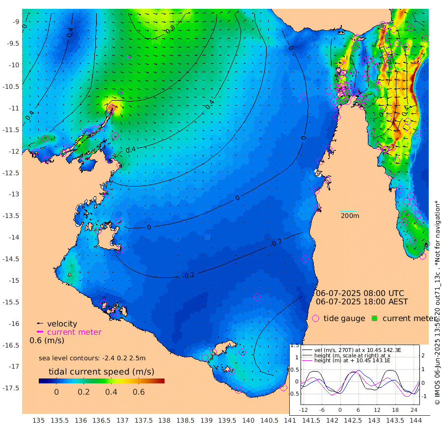25cm/s 109T +3cm/s rms + 7cm/s -42T. ARA-GOC87 57m 5cm/s 105T +3cm/s rms + 2cm/s -2T. ARA-GOC87 60m 23cm/s 103T +2cm/s rms + 3cm/s 61T. ARA-GOC87 47m -4cm Daru 5cm Bobo Island 38cm Meer Island Barge 36cm Bramble Cay 18cm Unnamed Cay 9cm Pearce Cay 20cm Stephens Island 27cm Merrie England Shoals 0cm Mutacomal Reef 26cm Darnley Island Barge 38cm East Cay 10cm Yorke Island Barge 2cm Rennel Island -2cm Aureed Island -21cm Dungeness Reef -41cm Zagai Island -53cm Yam Island -68cm Dauan Island -55cm Saibai Island -60cm Phipi Reef -53cm Warrior Reef - West -48cm Mabuiag Island Barge -2cm Half Way Island -9cm Coconut Island -16cm Dugong Islet -35cm Poll Island -31cm Kirkcaldie Reef -57cm Suarji Island -27cm Sue Islet -18cm Hawkesbury Island -39cm Alert Patches -44cm Twin Island -23cm Badu Island -56cm St Pauls (Moa Island) -34cm Kubin (Moa Island) -44cm Ince Point -42cm Thursday Island -43cm Nardana Patches -33cm Turtle Head -19cm Round Island -17cm Goods Island -10cm Booby Island -20cm White Rocks Area 3cm Carpentaria -44cm Papou Point 9cm Bampfield Head -5cm Crab Island -20cm Red Wallis Island -30cm Packe Island -15cm Harrington Reef -26cm Herald Camp -23cm Sharp Point -28cm Red Island Point -29cm Possession Island -34cm Alpha Rock -29cm Frederick Point 2cm Wyborn Reef Light -6cm Tetley Island 26cm Triangle Reef 8cm Turtle Head Island 26cm Maclennan Cay 43cm Raine Island 17cm Mcsweeny Reef 26cm Collette Reef 38cm Shadwell Reef 33cm Hannibal Island 39cm Round Point 4cm Vrilya Point 35cm Cape Grenville 33cm Hicks Island 31cm Sir Charles Hardy Island 9cm Harvey Island 48cm Kay Reef 42cm Rocky Island 46cm Chapman Island 45cm Ham Reef 43cm Jubilee Reef 35cm Night Island 45cm Unnamed Reef No. 3 46cm Morris Island 42cm 1st 3 Mile Opening 42cm Creech Reef 42cm Fife Island 57cm Eden Reef 48cm Stanley Island 47cm Normanby River 55cm Yabooma Island 78cm Hutchison River 67cm Elcho Island 53cm North West Crocodile Island 61cm Cape Wessel 74cm Stevens Island 78cm Guluwuru Island 72cm Hopeful Bay 65cm Auster Point 60cm Two Island Bay 80cm Cadell Strait 173cm Mallison Island 66cm Melville Bay (Gove Harbour) 72cm Truant Island 46cm Cape Arnhem 25cm Cape Grey 14cm Hawk Island -15cm Milner Bay (Groote Eylandt) -25cm Cape Beatrice -58cm West Island -55cm Centre Island -60cm Mornington Island -68cm West Wellesley Islands -79cm Bountiful Island -87cm Albert River Mouth -70cm Sweers Island -84cm Karumba -57cm Nassau River Offshore -39cm Christmas Creek -4cm Archer River -2cm Boyd Point -6cm Weipa (Humbug Point) 13cm Pennefather River -6cm Cullen Point