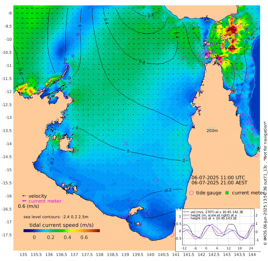 7cm/s 141T +3cm/s rms + 7cm/s -42T. ARA-GOC87 57m 14cm/s 149T +3cm/s rms + 2cm/s -2T. ARA-GOC87 60m 5cm/s 177T +2cm/s rms + 3cm/s 61T. ARA-GOC87 47m 91cm Daru 101cm Bobo Island 73cm Meer Island Barge 90cm Bramble Cay 99cm Unnamed Cay 104cm Pearce Cay 97cm Stephens Island 104cm Merrie England Shoals 101cm Mutacomal Reef 92cm Darnley Island Barge 83cm East Cay 93cm Yorke Island Barge 97cm Rennel Island 100cm Aureed Island 87cm Dungeness Reef 63cm Zagai Island 59cm Yam Island 16cm Dauan Island 27cm Saibai Island 32cm Phipi Reef 57cm Warrior Reef - West 34cm Mabuiag Island Barge 93cm Half Way Island 100cm Coconut Island 94cm Dugong Islet 80cm Poll Island 82cm Kirkcaldie Reef 79cm Suarji Island 78cm Sue Islet 47cm Hawkesbury Island 80cm Alert Patches 78cm Twin Island 40cm Badu Island 65cm St Pauls (Moa Island) 43cm Kubin (Moa Island) 60cm Ince Point 56cm Thursday Island 56cm Nardana Patches 52cm Turtle Head 48cm Round Island 47cm Goods Island 45cm Booby Island 49cm White Rocks Area 57cm Carpentaria 62cm Papou Point 70cm Bampfield Head 31cm Crab Island 45cm Red Wallis Island 49cm Packe Island 108cm Harrington Reef 40cm Herald Camp 13cm Sharp Point 51cm Red Island Point 68cm Possession Island 74cm Alpha Rock 90cm Frederick Point 102cm Wyborn Reef Light 98cm Tetley Island 73cm Triangle Reef 106cm Turtle Head Island 74cm Maclennan Cay 61cm Raine Island 95cm Mcsweeny Reef 93cm Collette Reef 73cm Shadwell Reef 101cm Hannibal Island 96cm Round Point 33cm Vrilya Point 90cm Cape Grenville 80cm Hicks Island 83cm Sir Charles Hardy Island 26cm Harvey Island 87cm Kay Reef 71cm Rocky Island 73cm Chapman Island 68cm Ham Reef 68cm Jubilee Reef 64cm Night Island 72cm Unnamed Reef No. 3 74cm Morris Island 65cm 1st 3 Mile Opening 71cm Creech Reef 67cm Fife Island 81cm Eden Reef 75cm Stanley Island 81cm Normanby River -64cm Yabooma Island -52cm Hutchison River -56cm Elcho Island -63cm North West Crocodile Island -11cm Cape Wessel -44cm Stevens Island 4cm Guluwuru Island -38cm Hopeful Bay -22cm Auster Point -37cm Two Island Bay -47cm Cadell Strait 39cm Mallison Island -6cm Melville Bay (Gove Harbour) -1cm Truant Island 0cm Cape Arnhem -7cm Cape Grey -10cm Hawk Island -32cm Milner Bay (Groote Eylandt) -31cm Cape Beatrice -38cm West Island -31cm Centre Island -43cm Mornington Island -42cm West Wellesley Islands -66cm Bountiful Island -110cm Albert River Mouth -106cm Sweers Island -100cm Karumba -31cm Nassau River Offshore -2cm Christmas Creek 22cm Archer River 30cm Boyd Point 22cm Weipa (Humbug Point) 28cm Pennefather River 27cm Cullen Point