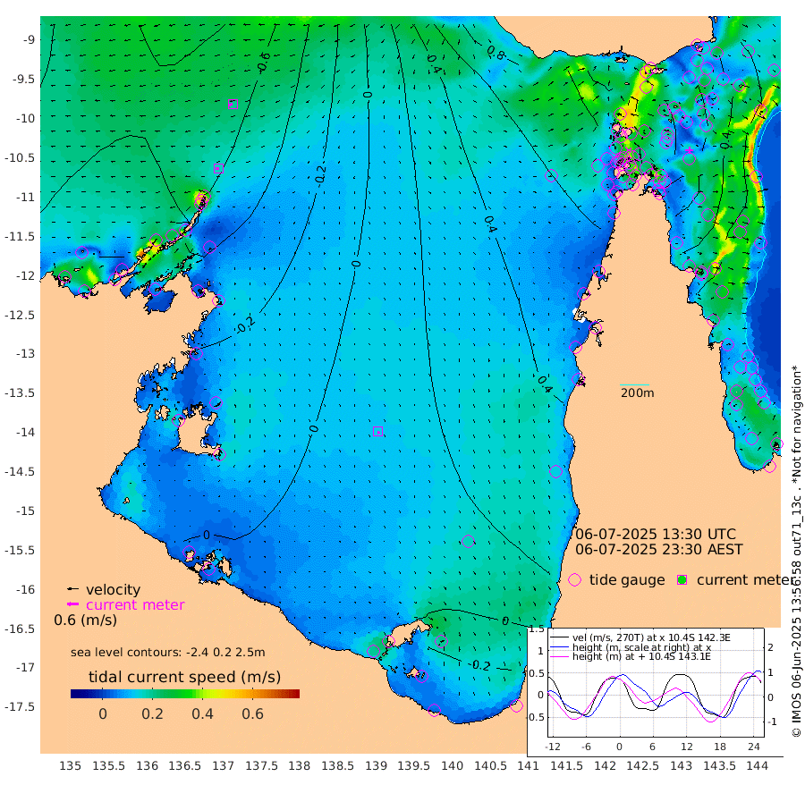 17cm/s -99T +3cm/s rms + 7cm/s -42T. ARA-GOC87 57m 14cm/s 165T +3cm/s rms + 2cm/s -2T. ARA-GOC87 60m 20cm/s -105T +2cm/s rms + 3cm/s 61T. ARA-GOC87 47m 72cm Daru 70cm Bobo Island 27cm Meer Island Barge 34cm Bramble Cay 56cm Unnamed Cay 71cm Pearce Cay 55cm Stephens Island 47cm Merrie England Shoals 69cm Mutacomal Reef 49cm Darnley Island Barge 31cm East Cay 64cm Yorke Island Barge 73cm Rennel Island 77cm Aureed Island 90cm Dungeness Reef 96cm Zagai Island 99cm Yam Island 104cm Dauan Island 96cm Saibai Island 107cm Phipi Reef 102cm Warrior Reef - West 102cm Mabuiag Island Barge 70cm Half Way Island 88cm Coconut Island 85cm Dugong Islet 98cm Poll Island 96cm Kirkcaldie Reef 130cm Suarji Island 93cm Sue Islet 110cm Hawkesbury Island 121cm Alert Patches 117cm Twin Island 108cm Badu Island 121cm St Pauls (Moa Island) 107cm Kubin (Moa Island) 115cm Ince Point 115cm Thursday Island 115cm Nardana Patches 115cm Turtle Head 104cm Round Island 109cm Goods Island 108cm Booby Island 112cm White Rocks Area 94cm Carpentaria 105cm Papou Point 120cm Bampfield Head 82cm Crab Island 105cm Red Wallis Island 106cm Packe Island 96cm Harrington Reef 111cm Herald Camp 32cm Sharp Point 102cm Red Island Point 112cm Possession Island 95cm Alpha Rock 105cm Frederick Point 75cm Wyborn Reef Light 80cm Tetley Island 38cm Triangle Reef 84cm Turtle Head Island 38cm Maclennan Cay 18cm Raine Island 58cm Mcsweeny Reef 48cm Collette Reef 27cm Shadwell Reef 46cm Hannibal Island 37cm Round Point 72cm Vrilya Point 35cm Cape Grenville 34cm Hicks Island 40cm Sir Charles Hardy Island 12cm Harvey Island 24cm Kay Reef 22cm Rocky Island 21cm Chapman Island 20cm Ham Reef 20cm Jubilee Reef 21cm Night Island 21cm Unnamed Reef No. 3 21cm Morris Island 26cm 1st 3 Mile Opening 25cm Creech Reef 18cm Fife Island 15cm Eden Reef 19cm Stanley Island 19cm Normanby River -92cm Yabooma Island -100cm Hutchison River -100cm Elcho Island -96cm North West Crocodile Island -63cm Cape Wessel -103cm Stevens Island -63cm Guluwuru Island -95cm Hopeful Bay -69cm Auster Point -82cm Two Island Bay -104cm Cadell Strait -150cm Mallison Island -60cm Melville Bay (Gove Harbour) -59cm Truant Island -39cm Cape Arnhem -28cm Cape Grey -30cm Hawk Island -32cm Milner Bay (Groote Eylandt) -25cm Cape Beatrice -12cm West Island -9cm Centre Island -16cm Mornington Island -7cm West Wellesley Islands -18cm Bountiful Island -64cm Albert River Mouth -72cm Sweers Island -52cm Karumba 4cm Nassau River Offshore 30cm Christmas Creek 42cm Archer River 57cm Boyd Point 57cm Weipa (Humbug Point) 45cm Pennefather River 69cm Cullen Point