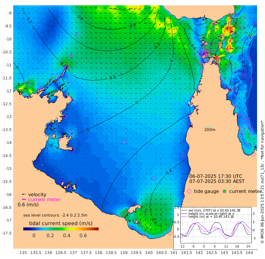 19cm/s -81T +3cm/s rms + 7cm/s -42T. ARA-GOC87 57m 11cm/s -143T +3cm/s rms + 2cm/s -2T. ARA-GOC87 60m 18cm/s -86T +2cm/s rms + 3cm/s 61T. ARA-GOC87 47m -21cm Daru -35cm Bobo Island -15cm Meer Island Barge -29cm Bramble Cay -30cm Unnamed Cay -37cm Pearce Cay -30cm Stephens Island -40cm Merrie England Shoals -35cm Mutacomal Reef -26cm Darnley Island Barge -18cm East Cay -25cm Yorke Island Barge -26cm Rennel Island -32cm Aureed Island -14cm Dungeness Reef 4cm Zagai Island 12cm Yam Island 63cm Dauan Island 51cm Saibai Island 53cm Phipi Reef 19cm Warrior Reef - West 37cm Mabuiag Island Barge -31cm Half Way Island -29cm Coconut Island -24cm Dugong Islet -14cm Poll Island -8cm Kirkcaldie Reef 3cm Suarji Island -7cm Sue Islet 45cm Hawkesbury Island 1cm Alert Patches -4cm Twin Island 51cm Badu Island 7cm St Pauls (Moa Island) 35cm Kubin (Moa Island) 15cm Ince Point 20cm Thursday Island 20cm Nardana Patches 36cm Turtle Head 36cm Round Island 45cm Goods Island 45cm Booby Island 37cm White Rocks Area 14cm Carpentaria 5cm Papou Point 39cm Bampfield Head 39cm Crab Island 36cm Red Wallis Island 29cm Packe Island -37cm Harrington Reef 58cm Herald Camp 2cm Sharp Point 31cm Red Island Point 10cm Possession Island -12cm Alpha Rock -17cm Frederick Point -36cm Wyborn Reef Light -33cm Tetley Island -17cm Triangle Reef -38cm Turtle Head Island -12cm Maclennan Cay -4cm Raine Island -29cm Mcsweeny Reef -27cm Collette Reef -13cm Shadwell Reef -34cm Hannibal Island -34cm Round Point 24cm Vrilya Point -28cm Cape Grenville -16cm Hicks Island -6cm Sir Charles Hardy Island -6cm Harvey Island -24cm Kay Reef -9cm Rocky Island -12cm Chapman Island -8cm Ham Reef -8cm Jubilee Reef -14cm Night Island -13cm Unnamed Reef No. 3 -13cm Morris Island -2cm 1st 3 Mile Opening -10cm Creech Reef -14cm Fife Island -16cm Eden Reef -14cm Stanley Island -21cm Normanby River 6cm Yabooma Island -1cm Hutchison River -5cm Elcho Island 0cm North West Crocodile Island -30cm Cape Wessel -24cm Stevens Island -20cm Guluwuru Island -19cm Hopeful Bay -24cm Auster Point -21cm Two Island Bay -12cm Cadell Strait -68cm Mallison Island -18cm Melville Bay (Gove Harbour) -24cm Truant Island -15cm Cape Arnhem -3cm Cape Grey -11cm Hawk Island -8cm Milner Bay (Groote Eylandt) 0cm Cape Beatrice 3cm West Island -4cm Centre Island 35cm Mornington Island 37cm West Wellesley Islands 72cm Bountiful Island 70cm Albert River Mouth 49cm Sweers Island 71cm Karumba 49cm Nassau River Offshore 53cm Christmas Creek 38cm Archer River 36cm Boyd Point 50cm Weipa (Humbug Point) 12cm Pennefather River 32cm Cullen Point