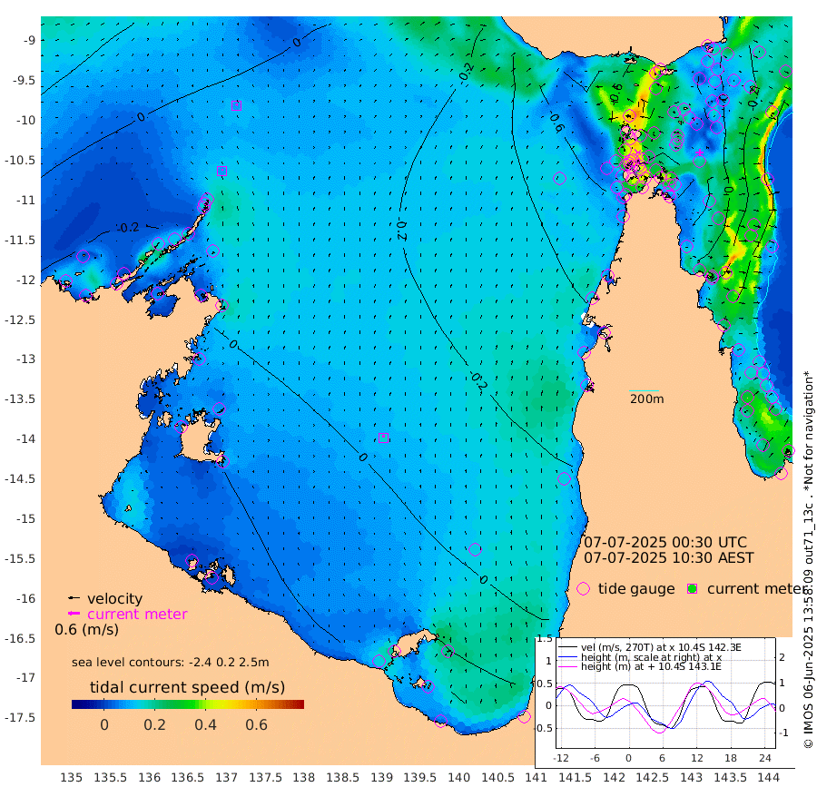 9cm/s 2T +3cm/s rms + 7cm/s -42T. ARA-GOC87 57m 15cm/s -3T +3cm/s rms + 2cm/s -2T. ARA-GOC87 60m 9cm/s 19T +2cm/s rms + 3cm/s 61T. ARA-GOC87 47m -2cm Daru 3cm Bobo Island -31cm Meer Island Barge -18cm Bramble Cay -9cm Unnamed Cay -1cm Pearce Cay -11cm Stephens Island -5cm Merrie England Shoals 7cm Mutacomal Reef -18cm Darnley Island Barge -29cm East Cay -9cm Yorke Island Barge -5cm Rennel Island 3cm Aureed Island -4cm Dungeness Reef -1cm Zagai Island 0cm Yam Island -34cm Dauan Island -28cm Saibai Island -33cm Phipi Reef -5cm Warrior Reef - West -32cm Mabuiag Island Barge 2cm Half Way Island 2cm Coconut Island 3cm Dugong Islet 6cm Poll Island -2cm Kirkcaldie Reef -1cm Suarji Island -4cm Sue Islet -87cm Hawkesbury Island -18cm Alert Patches -5cm Twin Island -79cm Badu Island -6cm St Pauls (Moa Island) -57cm Kubin (Moa Island) -25cm Ince Point -35cm Thursday Island -33cm Nardana Patches -59cm Turtle Head -73cm Round Island -85cm Goods Island -96cm Booby Island -79cm White Rocks Area -73cm Carpentaria -9cm Papou Point -116cm Bampfield Head -81cm Crab Island -75cm Red Wallis Island -57cm Packe Island 10cm Harrington Reef -93cm Herald Camp 7cm Sharp Point -51cm Red Island Point -36cm Possession Island 4cm Alpha Rock 0cm Frederick Point 3cm Wyborn Reef Light 5cm Tetley Island -23cm Triangle Reef -10cm Turtle Head Island -29cm Maclennan Cay -42cm Raine Island -10cm Mcsweeny Reef -16cm Collette Reef -32cm Shadwell Reef -14cm Hannibal Island -18cm Round Point -72cm Vrilya Point -20cm Cape Grenville -29cm Hicks Island -36cm Sir Charles Hardy Island -7cm Harvey Island -30cm Kay Reef -38cm Rocky Island -38cm Chapman Island -40cm Ham Reef -39cm Jubilee Reef -28cm Night Island -36cm Unnamed Reef No. 3 -38cm Morris Island -48cm 1st 3 Mile Opening -39cm Creech Reef -31cm Fife Island -43cm Eden Reef -38cm Stanley Island -31cm Normanby River -27cm Yabooma Island -37cm Hutchison River -23cm Elcho Island -16cm North West Crocodile Island -4cm Cape Wessel -10cm Stevens Island -24cm Guluwuru Island -15cm Hopeful Bay -16cm Auster Point -11cm Two Island Bay -23cm Cadell Strait -17cm Mallison Island -18cm Melville Bay (Gove Harbour) -20cm Truant Island -11cm Cape Arnhem -3cm Cape Grey 14cm Hawk Island 41cm Milner Bay (Groote Eylandt) 42cm Cape Beatrice 66cm West Island 66cm Centre Island 48cm Mornington Island 51cm West Wellesley Islands 40cm Bountiful Island 70cm Albert River Mouth 76cm Sweers Island 59cm Karumba 21cm Nassau River Offshore -17cm Christmas Creek -50cm Archer River -60cm Boyd Point -69cm Weipa (Humbug Point) -54cm Pennefather River -67cm Cullen Point